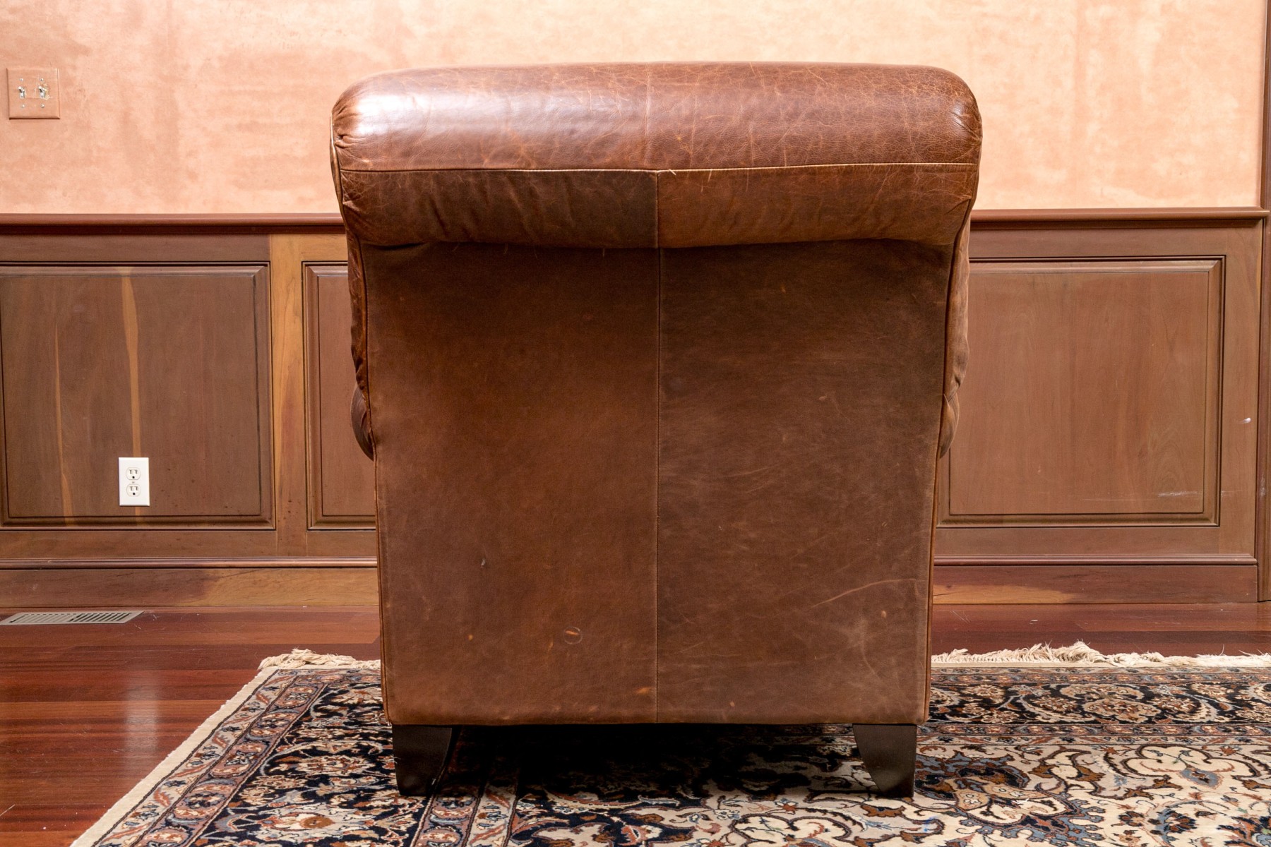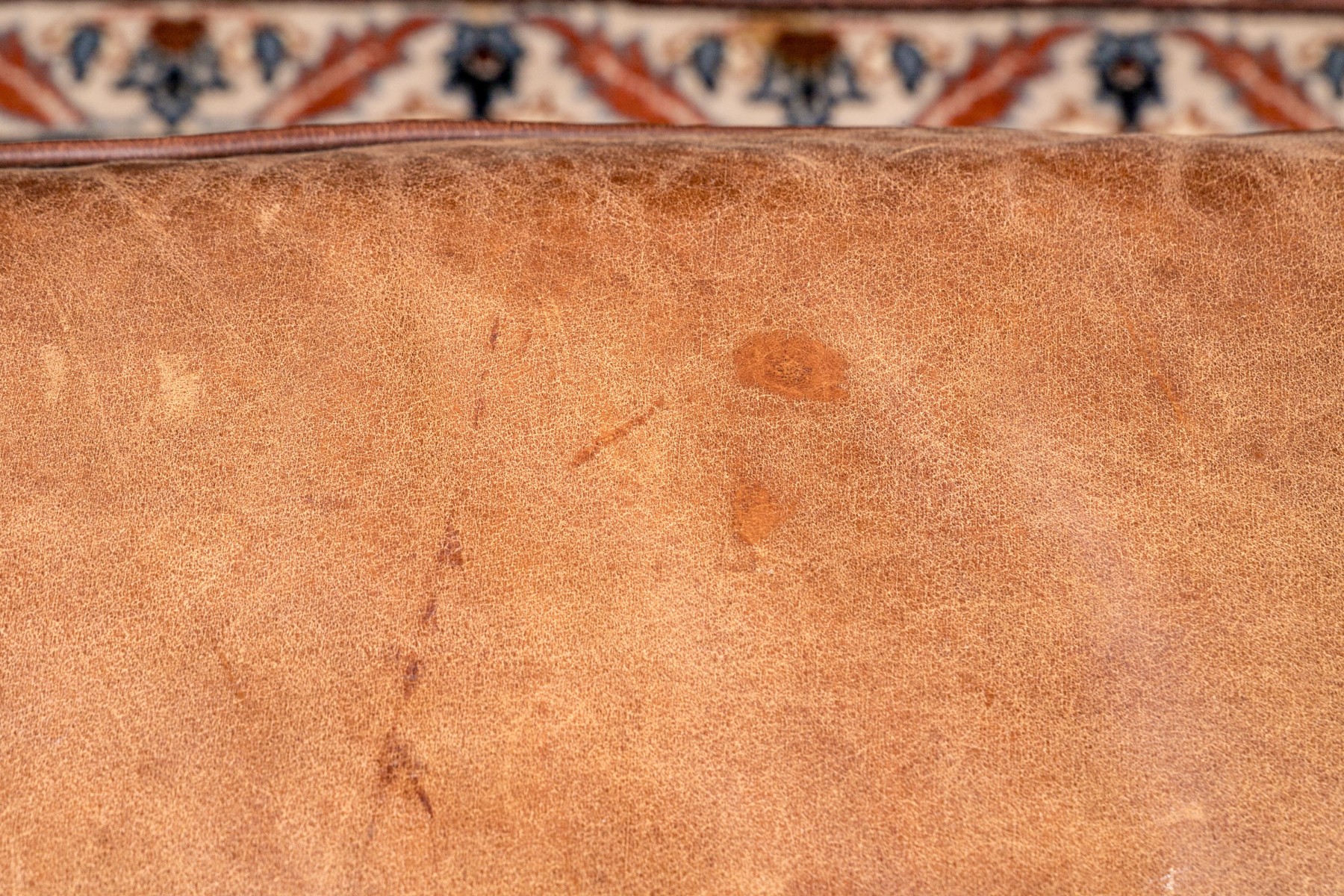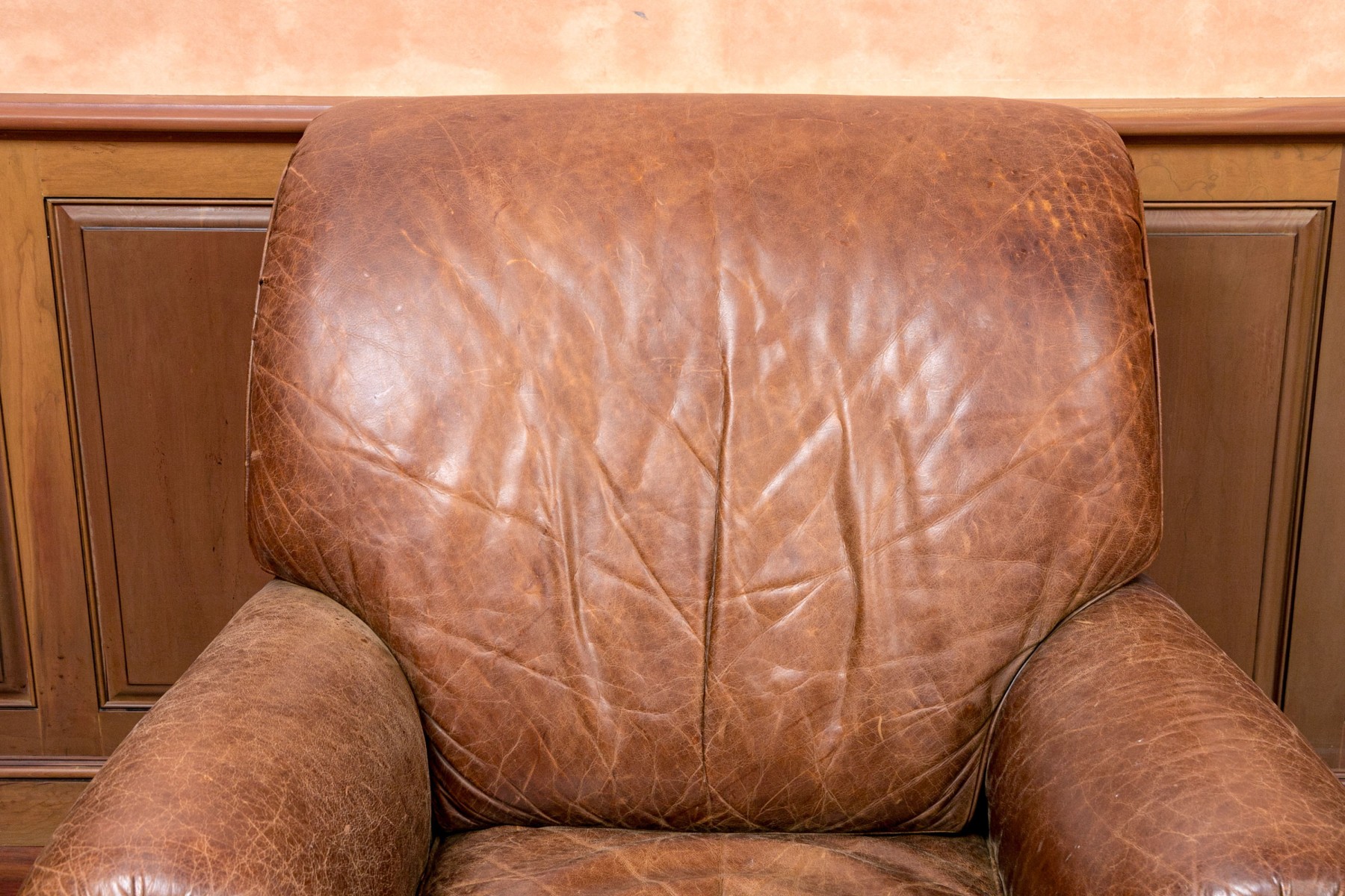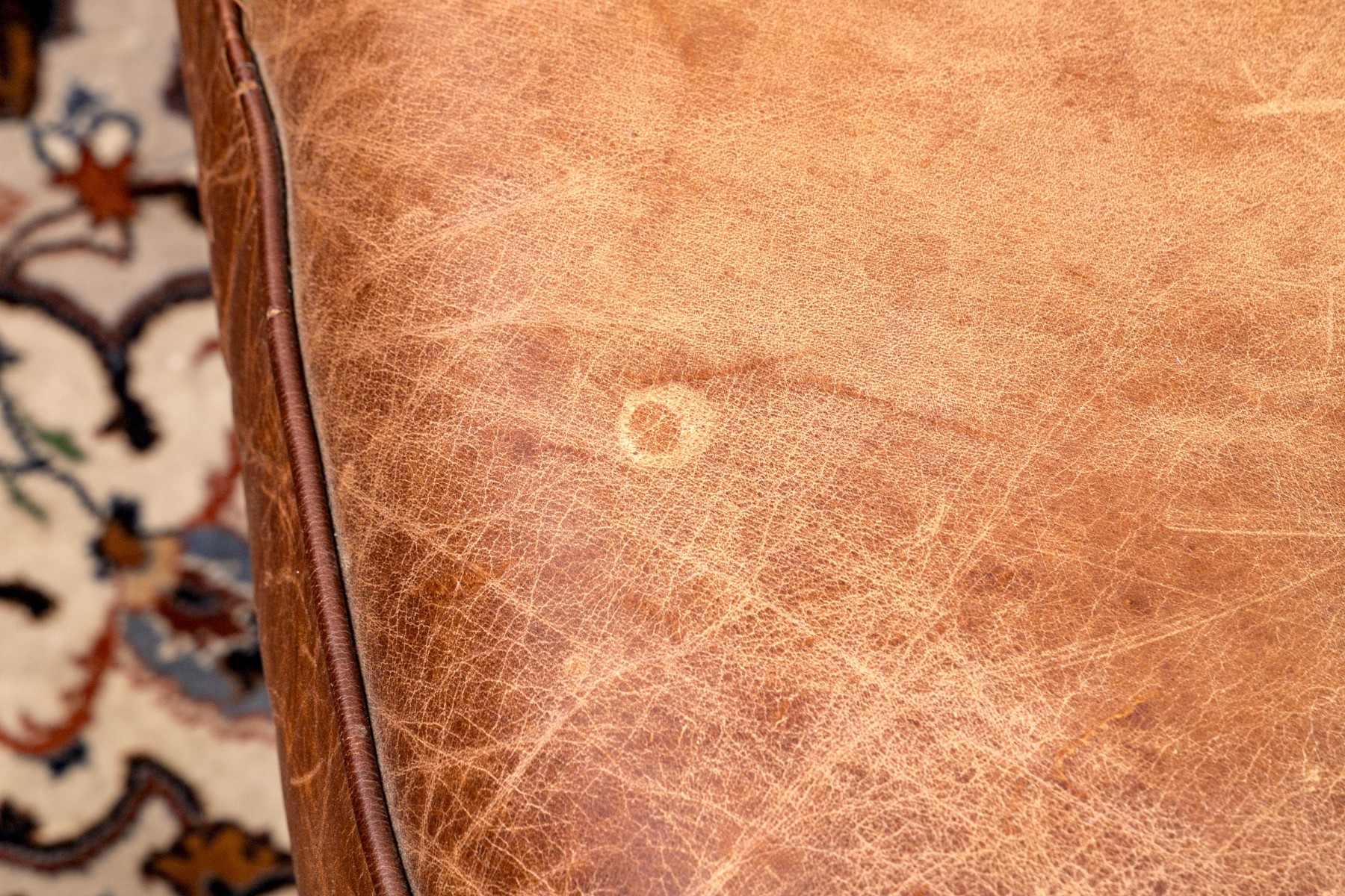 Dimensions: Some surface stains and scratches to the leather commensurate with some age and sitting use. Despite the seat is comfortable and presents handsomely overall.