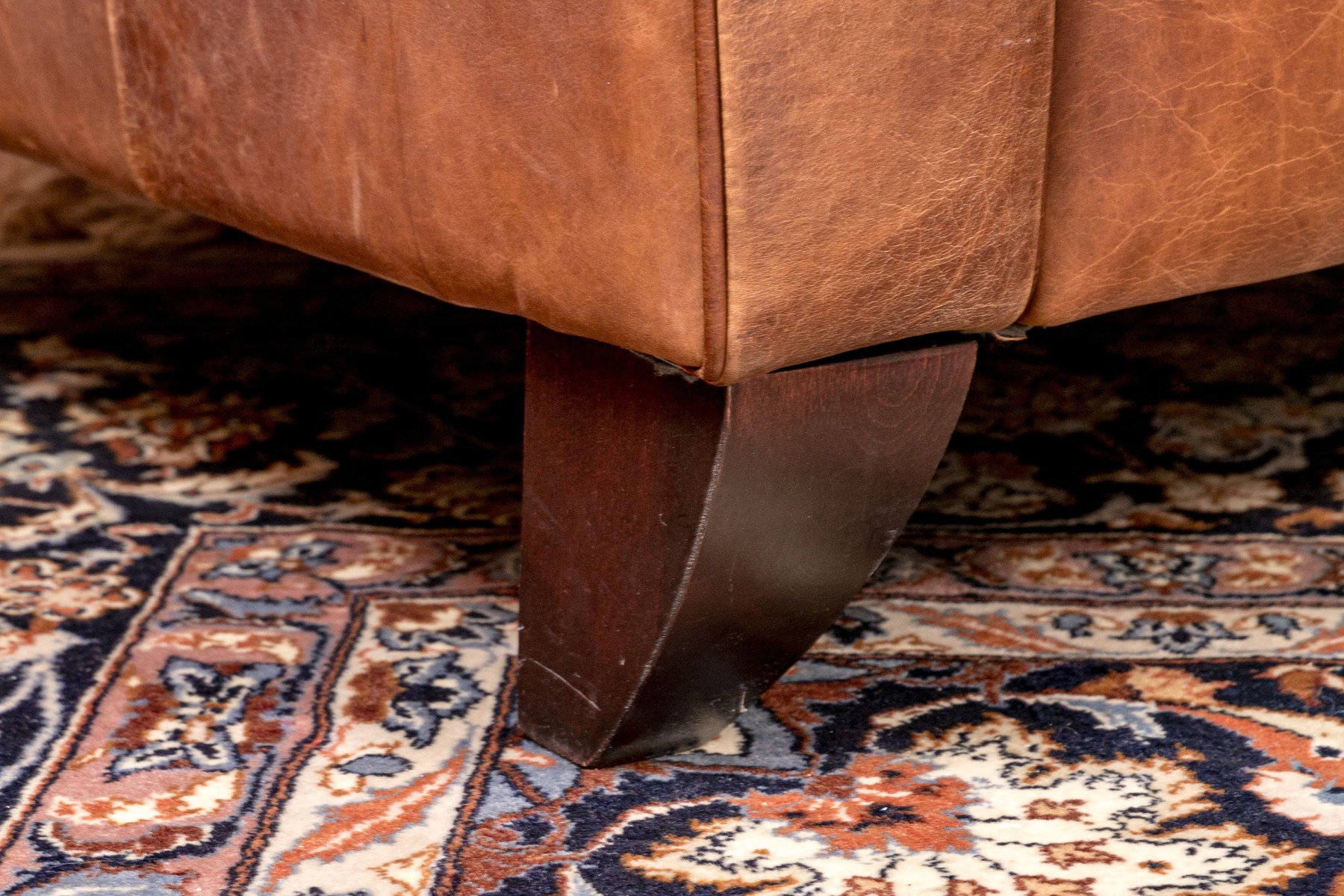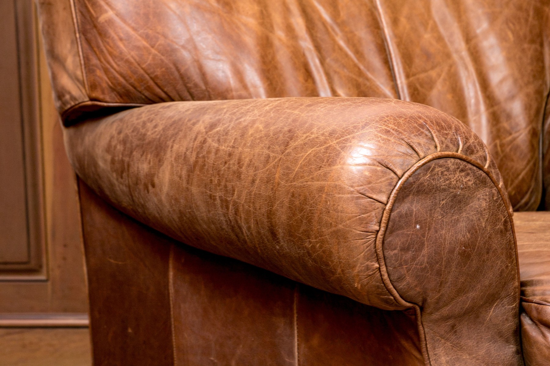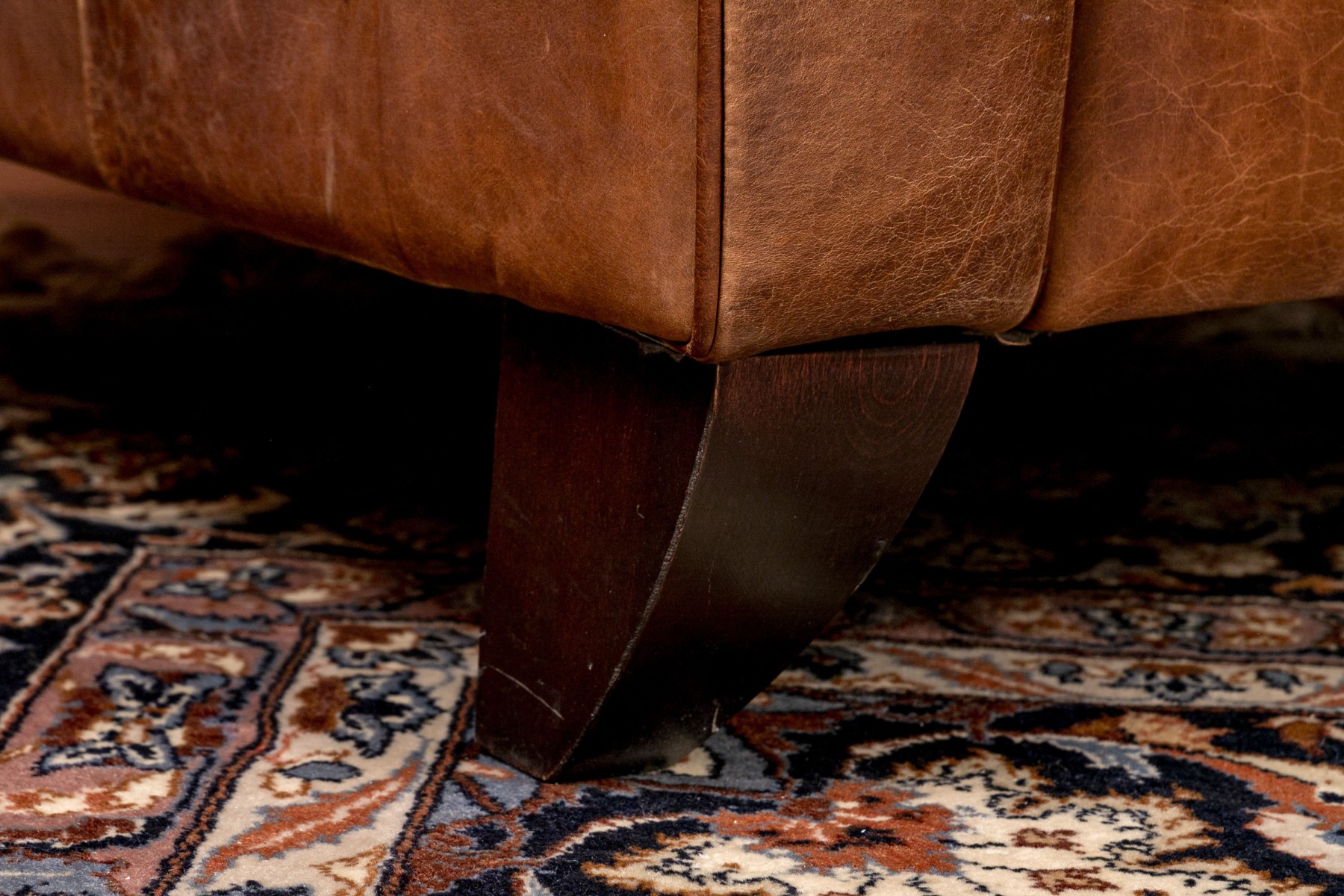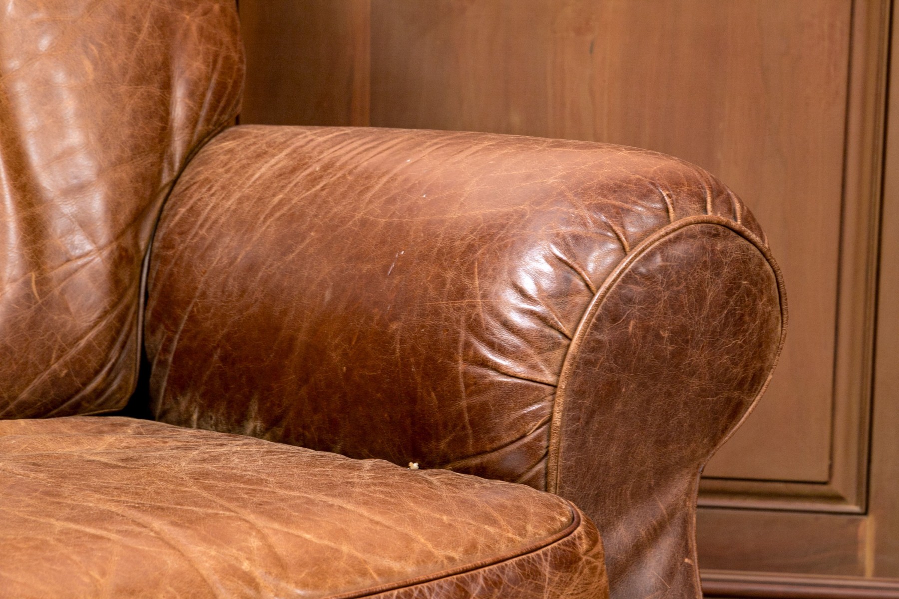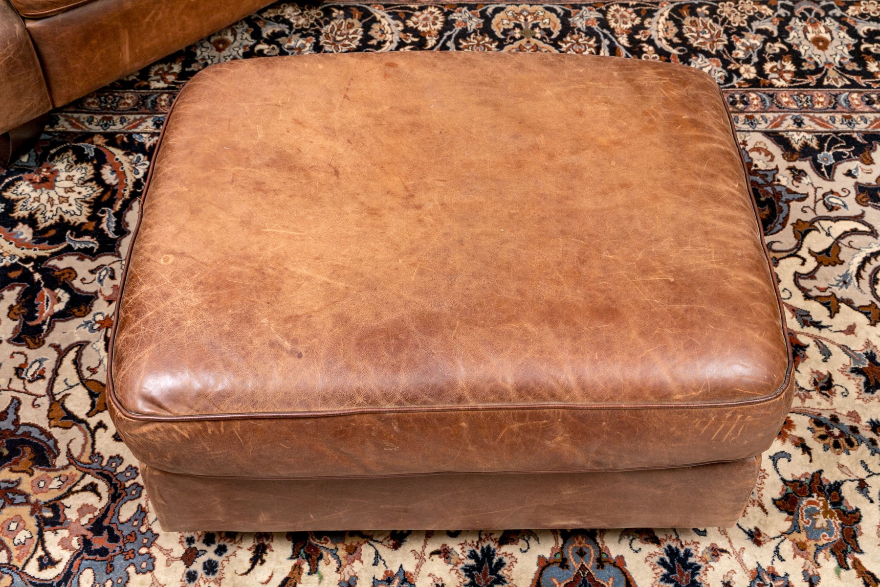 Dimensions: Some surface stains and scratches to the leather commensurate with some age and sitting use. Despite the seat is comfortable and presents handsomely overall.