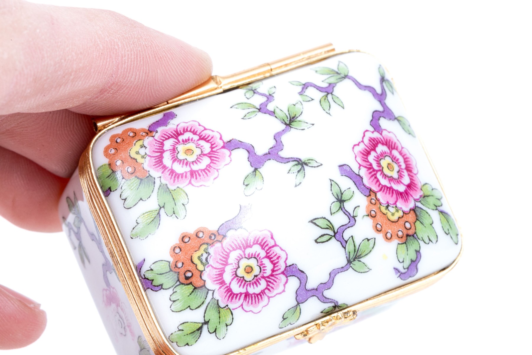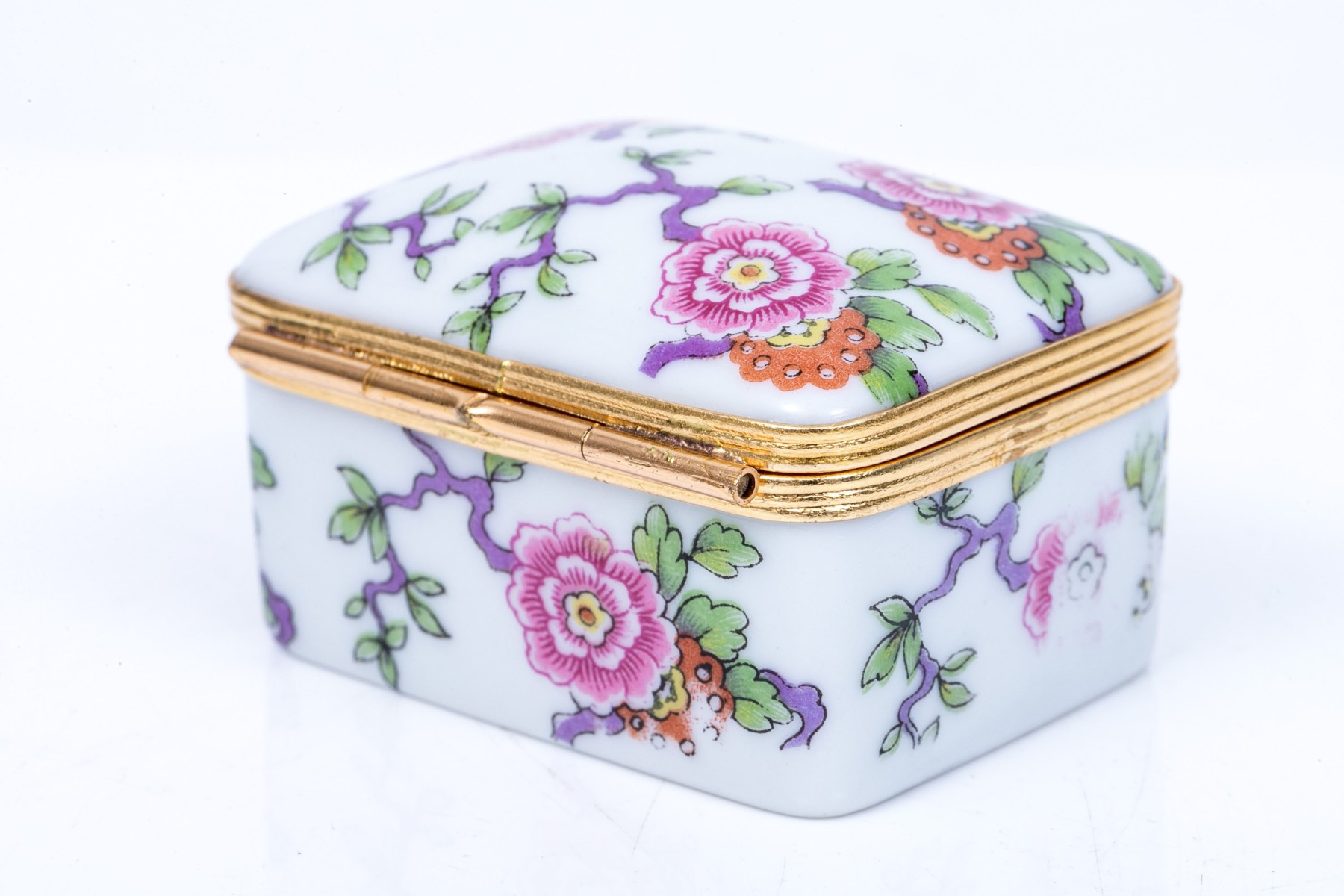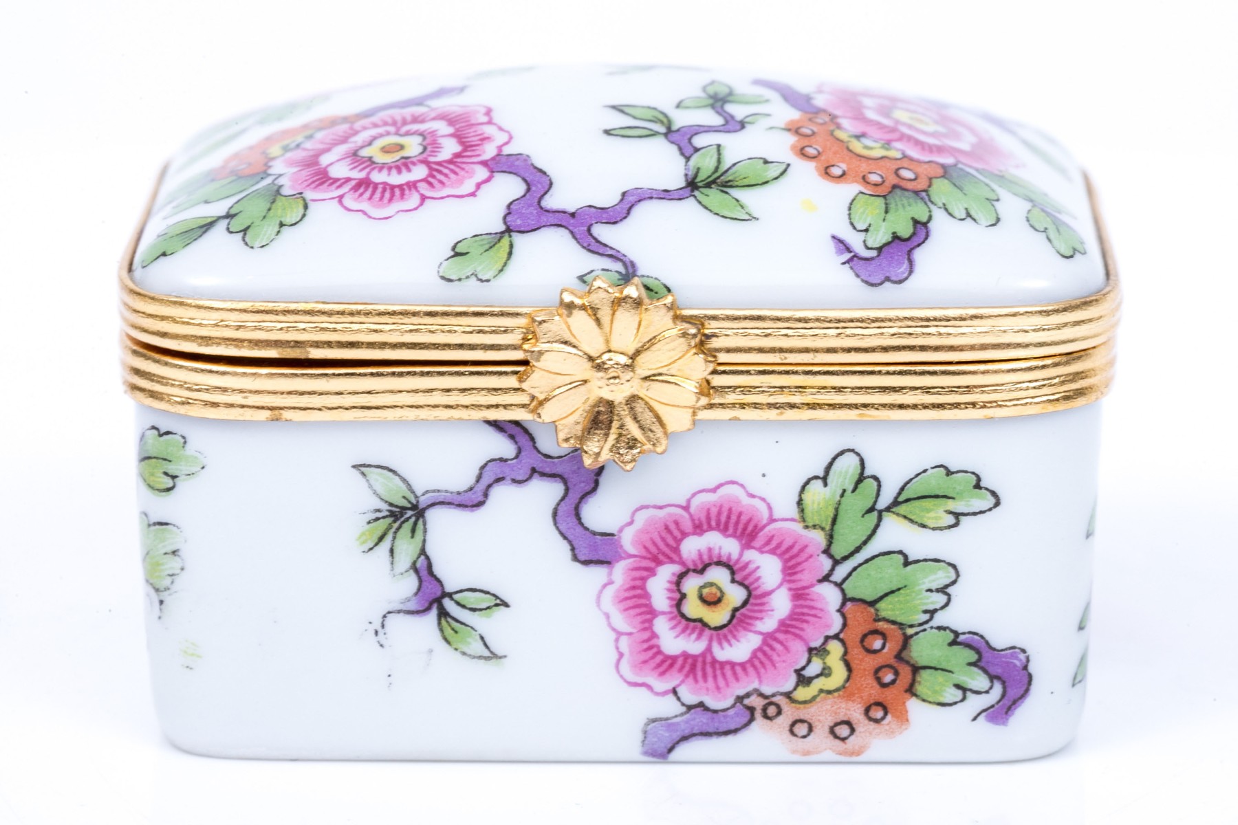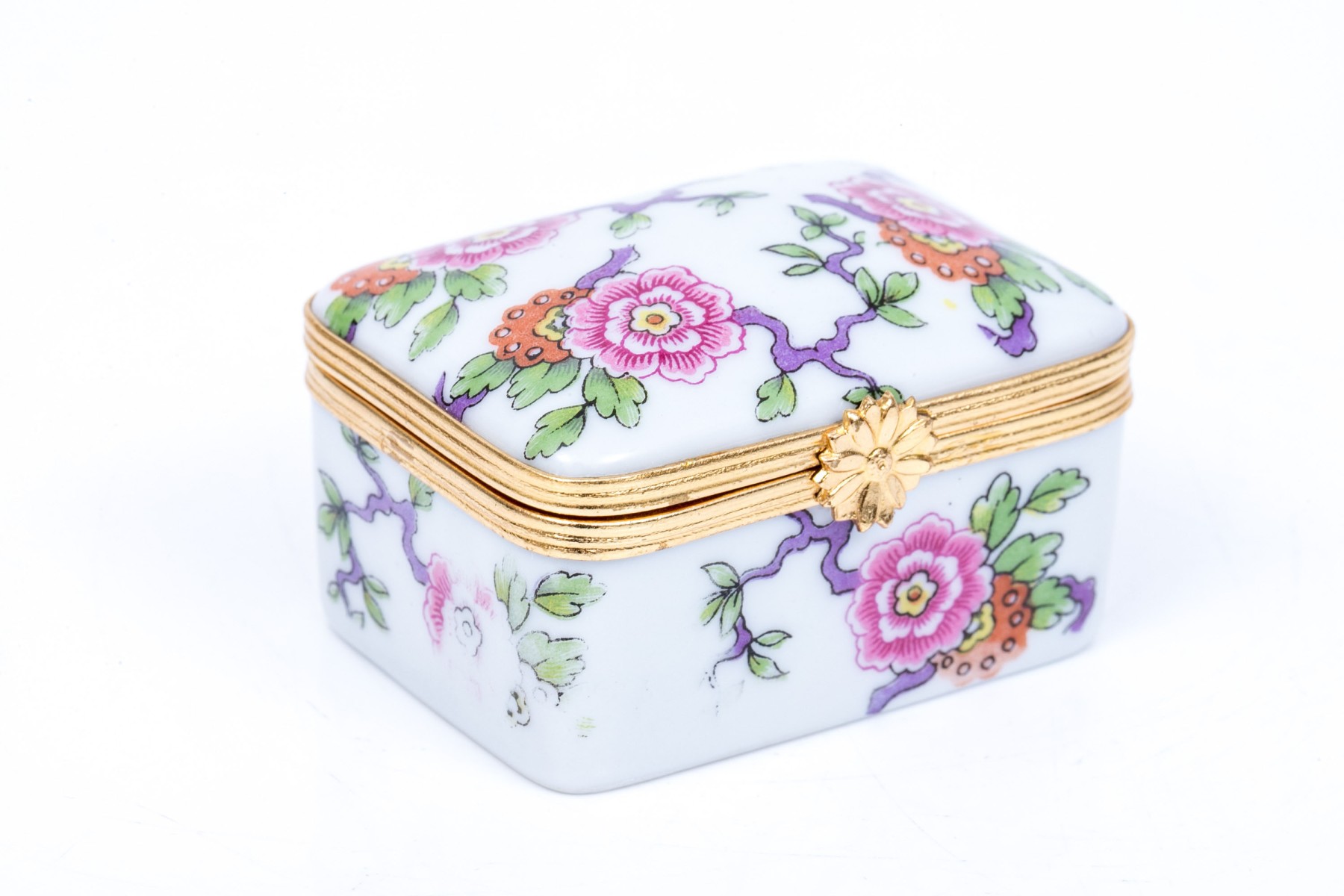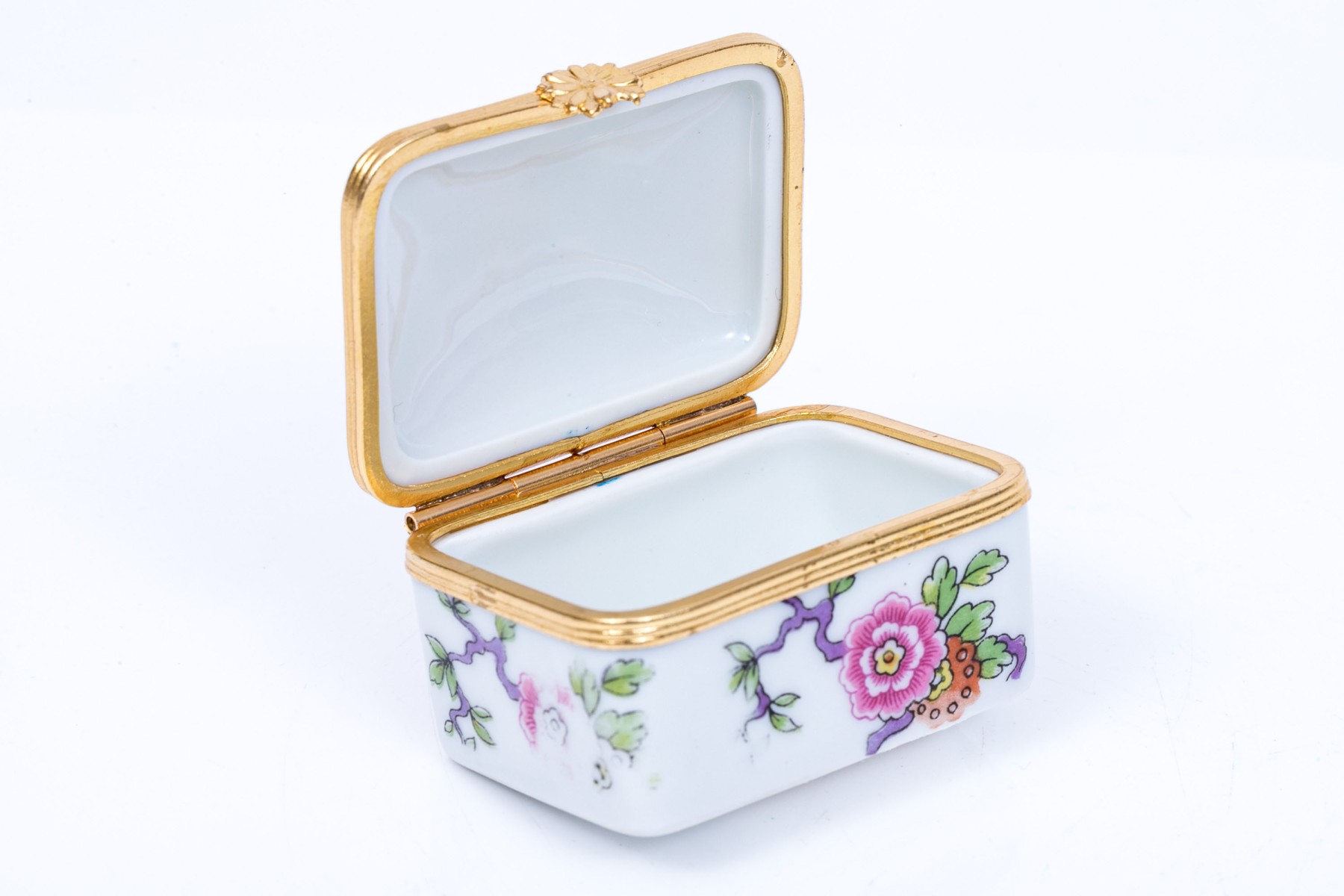 Limoges floral designed box. The box has a hinged lid with snap closure.