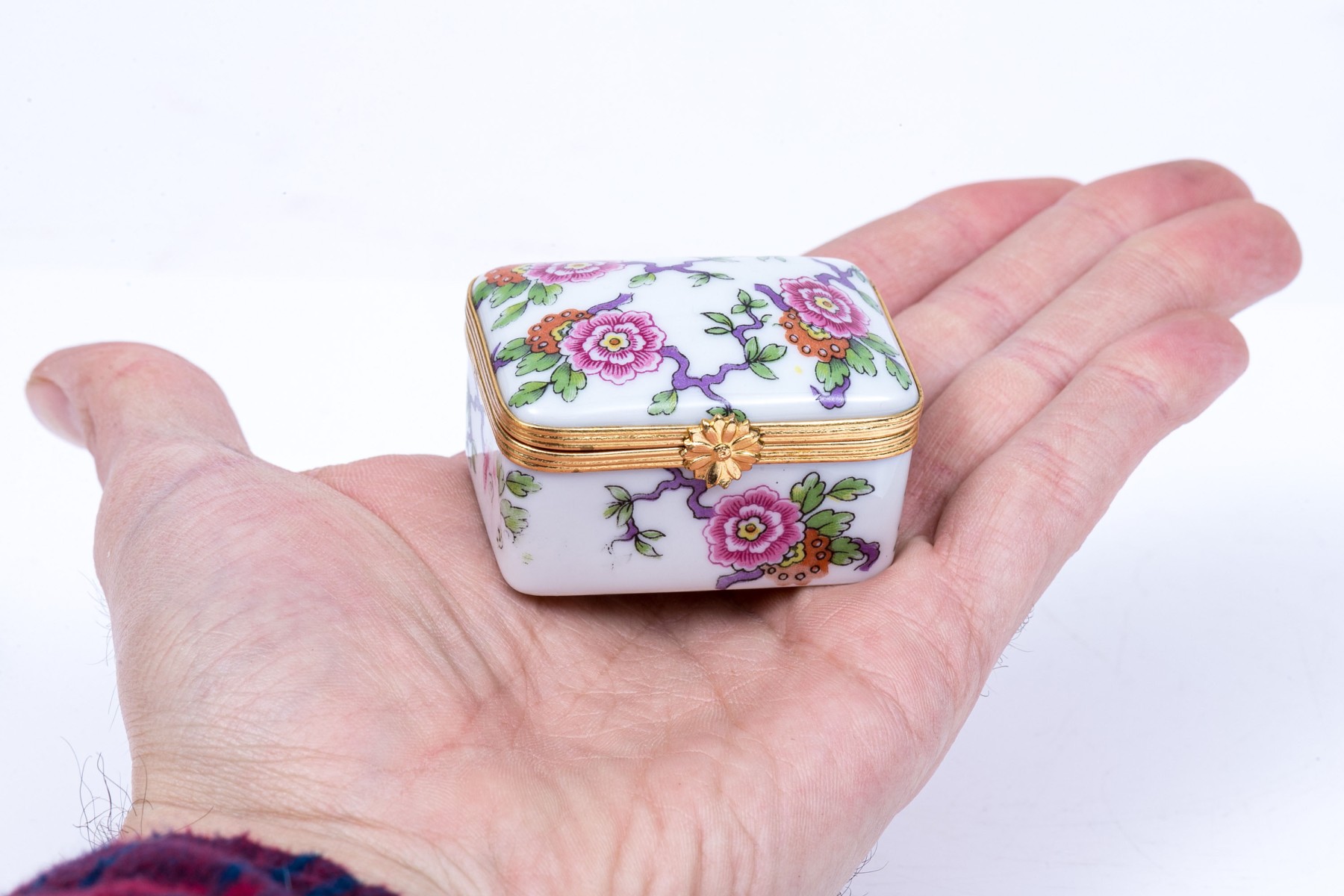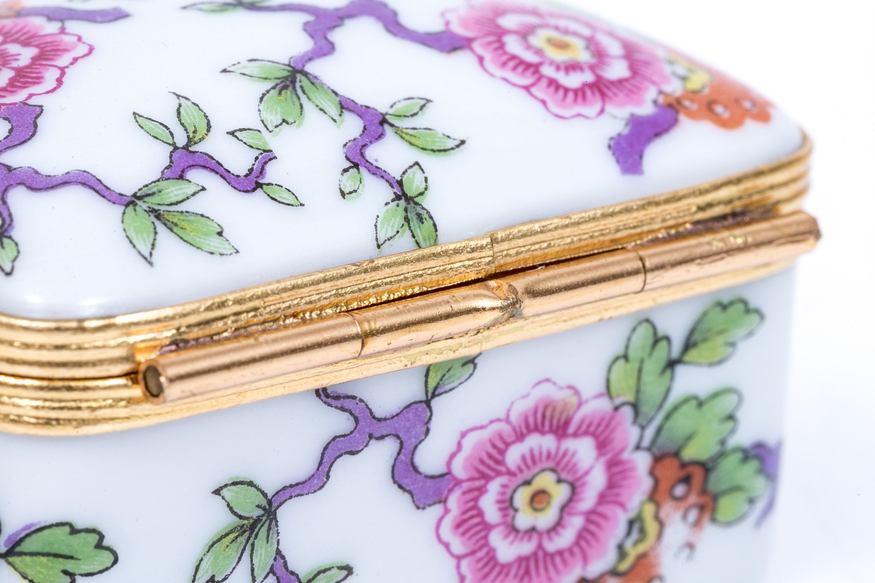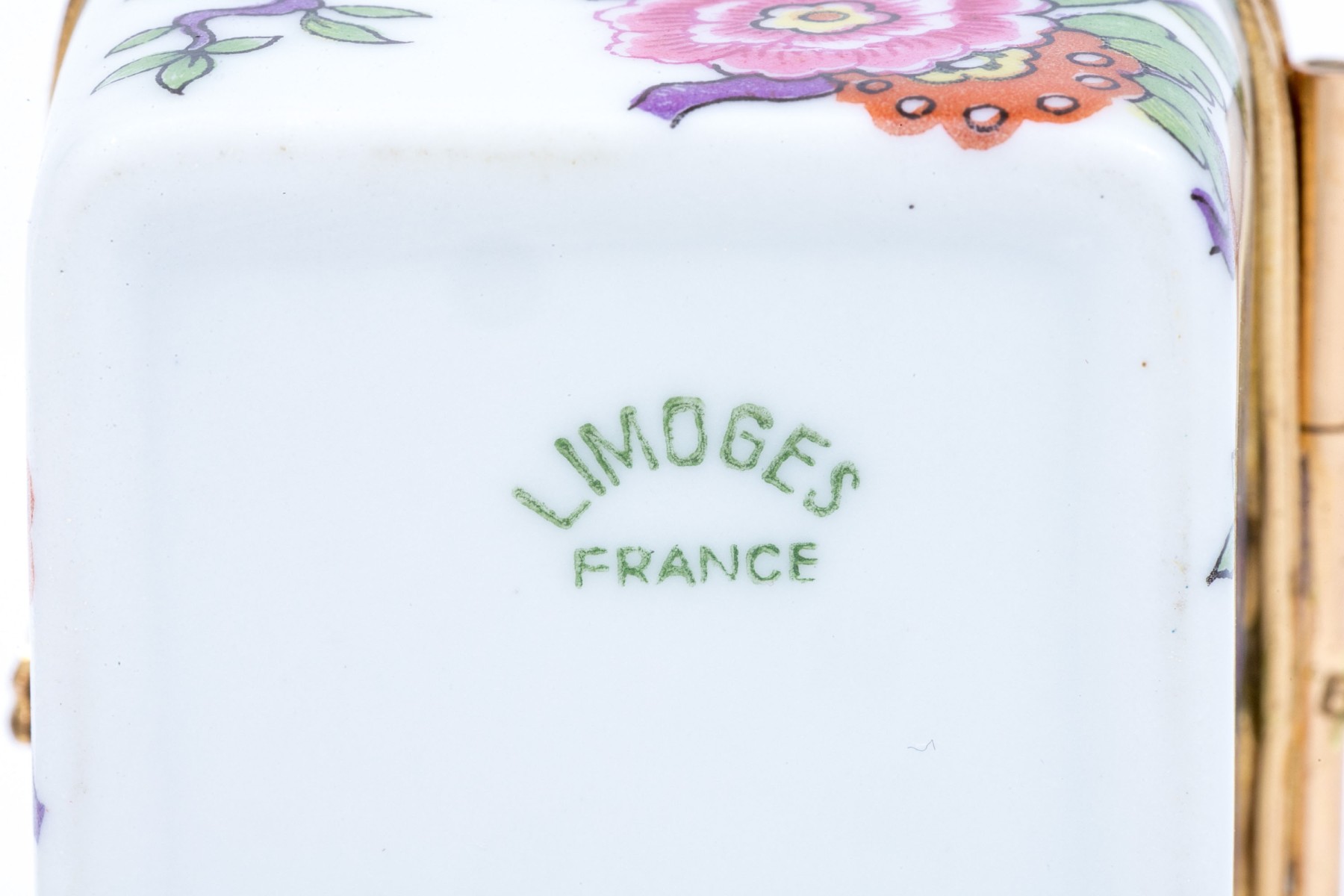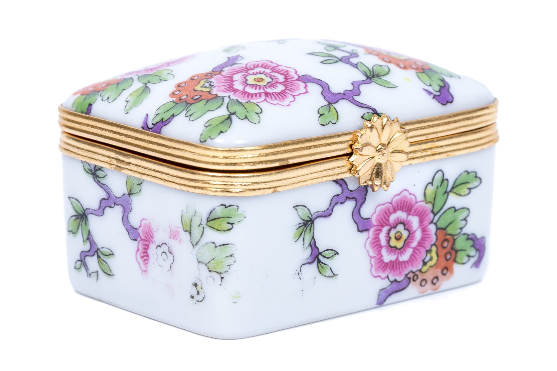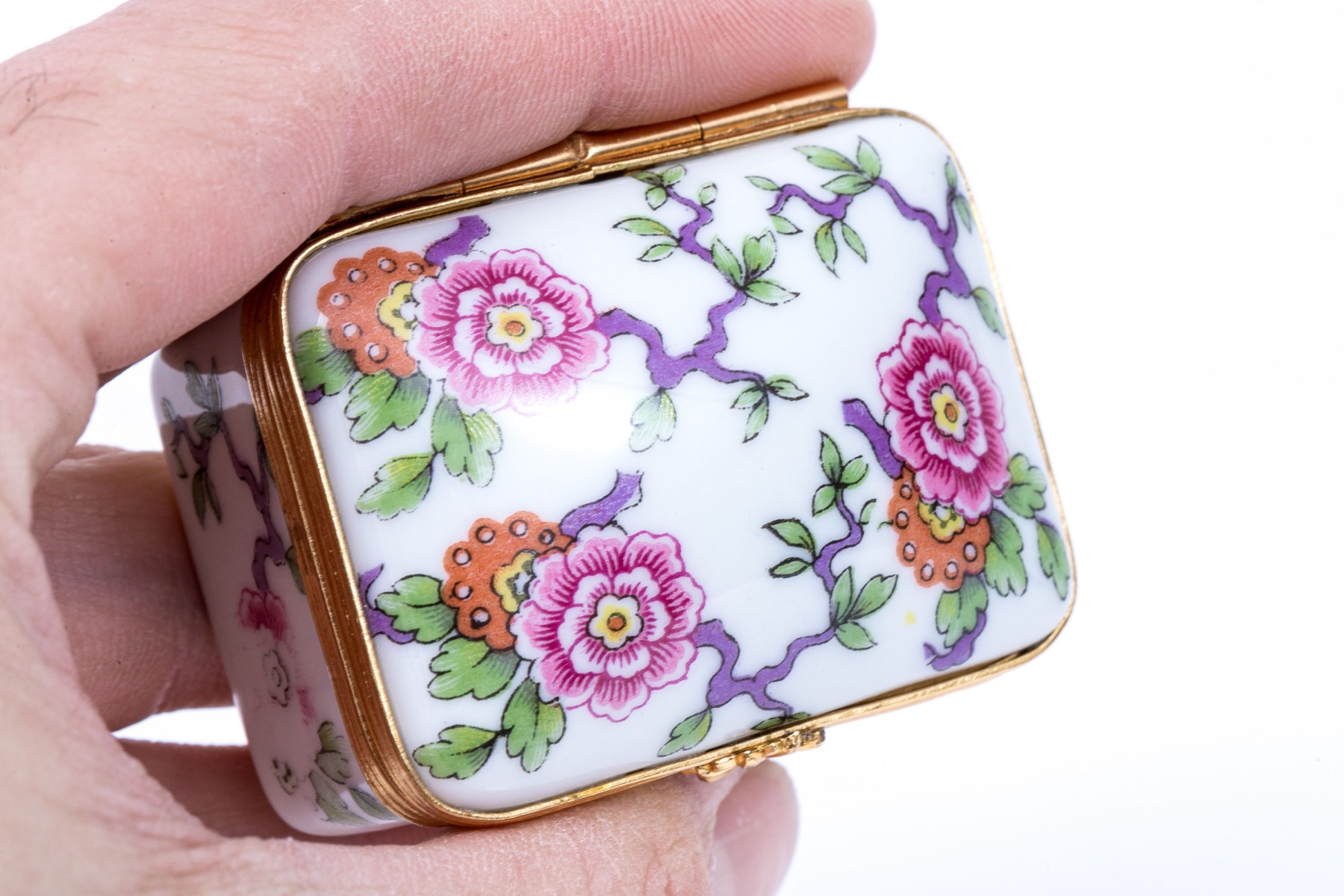 Limoges floral designed box. The box has a hinged lid with snap closure.