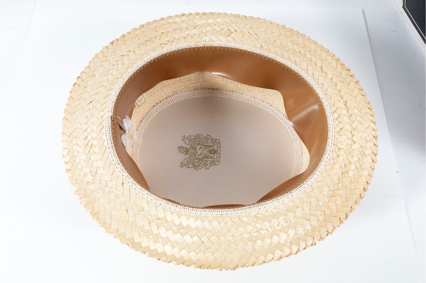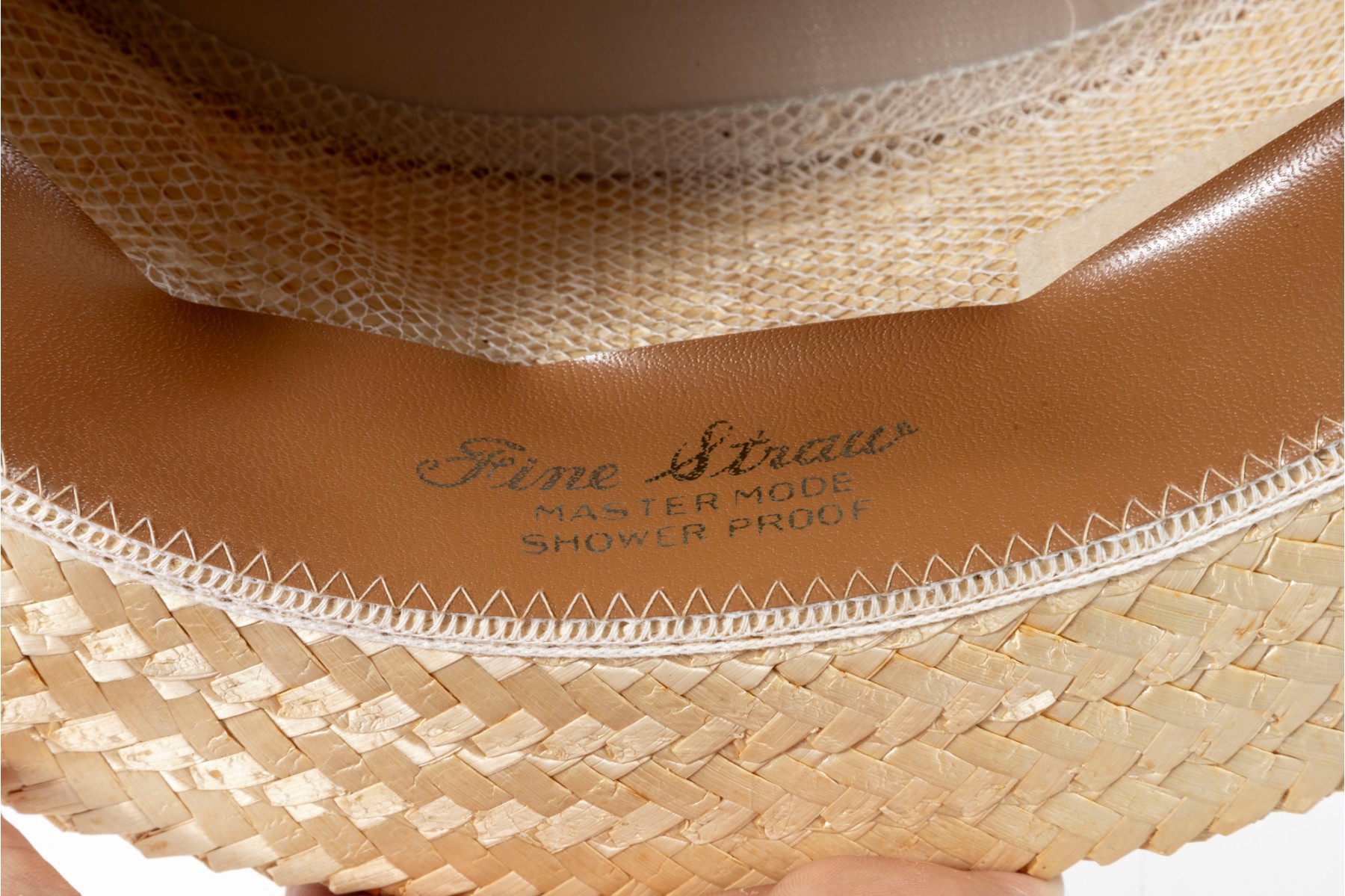 Vintage fine straw woven master mode & shower proof hat W/ ribbon adornment.