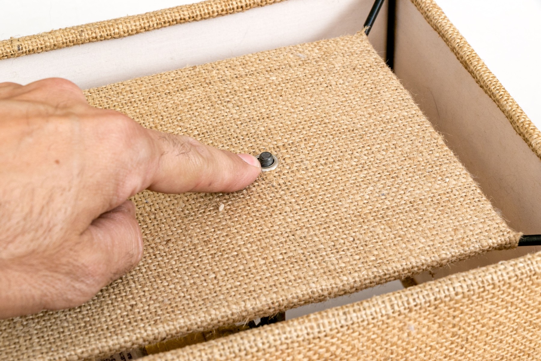 One of two finials is missing, the second is in place. There is some slight wear to the burlap consistent with age and handling. See lot images as they are included in the condition report. The lamp was untested, unknown working condition but presents very well.