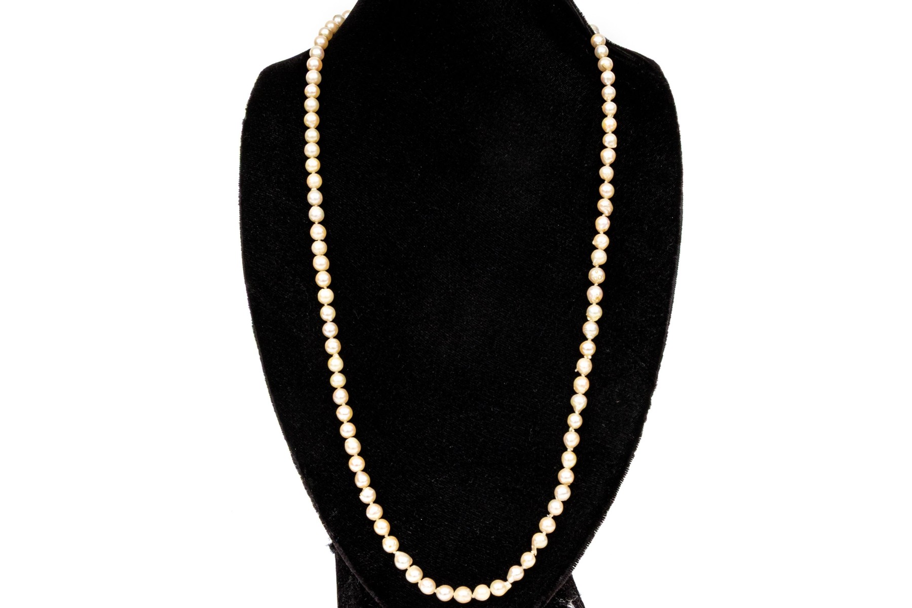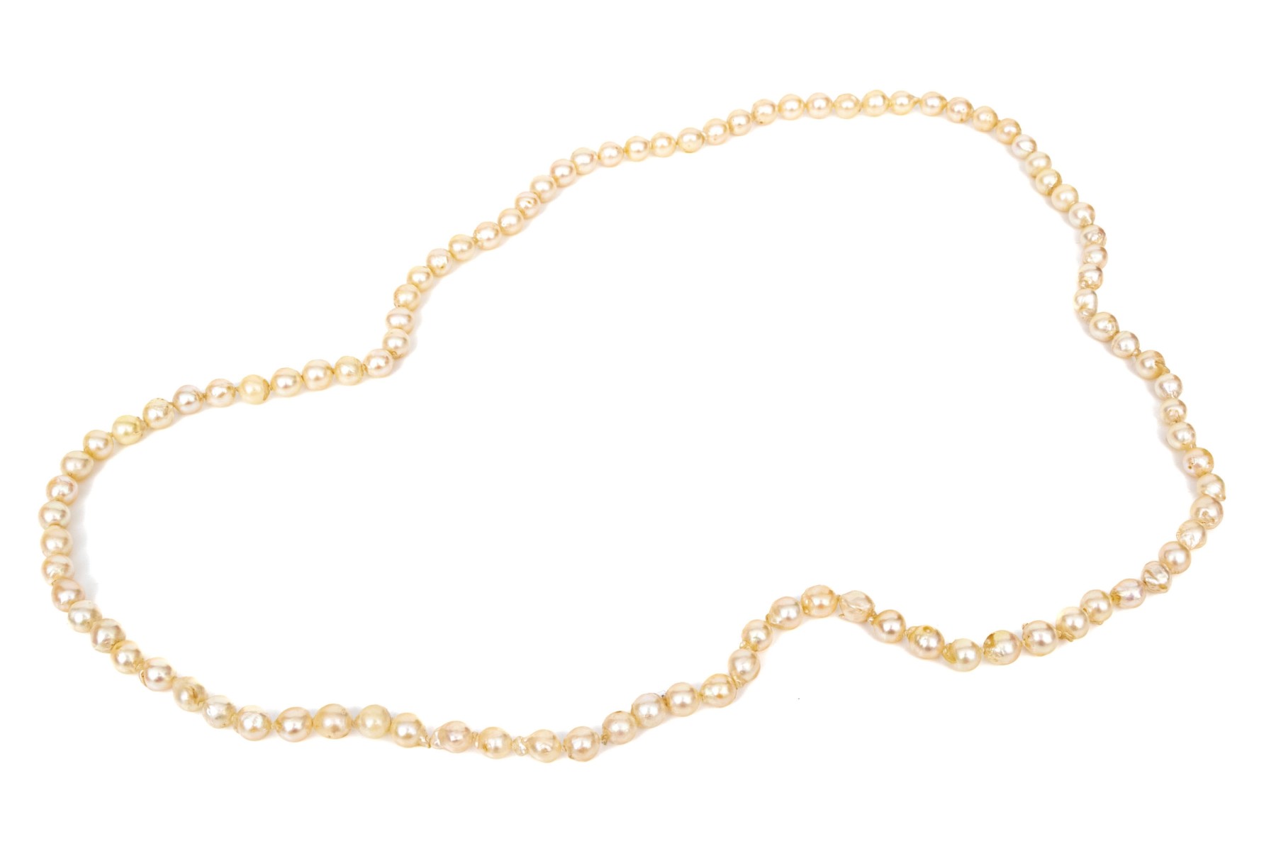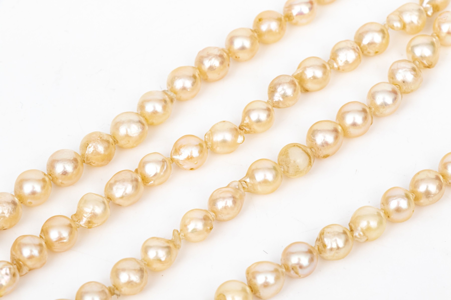 Vintage opera length endless strand of baroque cultured pearls, 7.25mm to 7.0mm