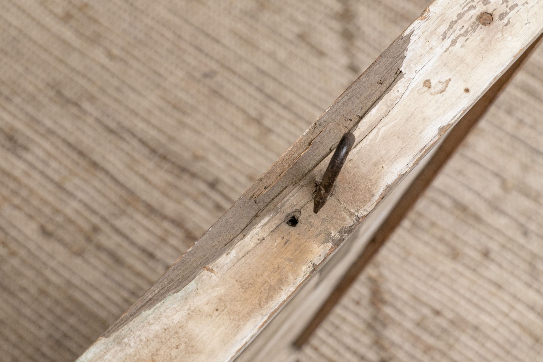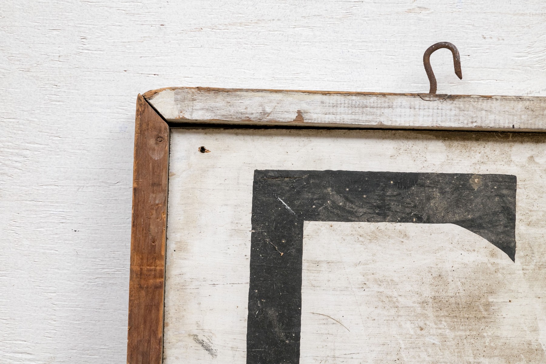 Condition: expected wear, one side very soiled, chipped top frame edge, unpainted frame sides.