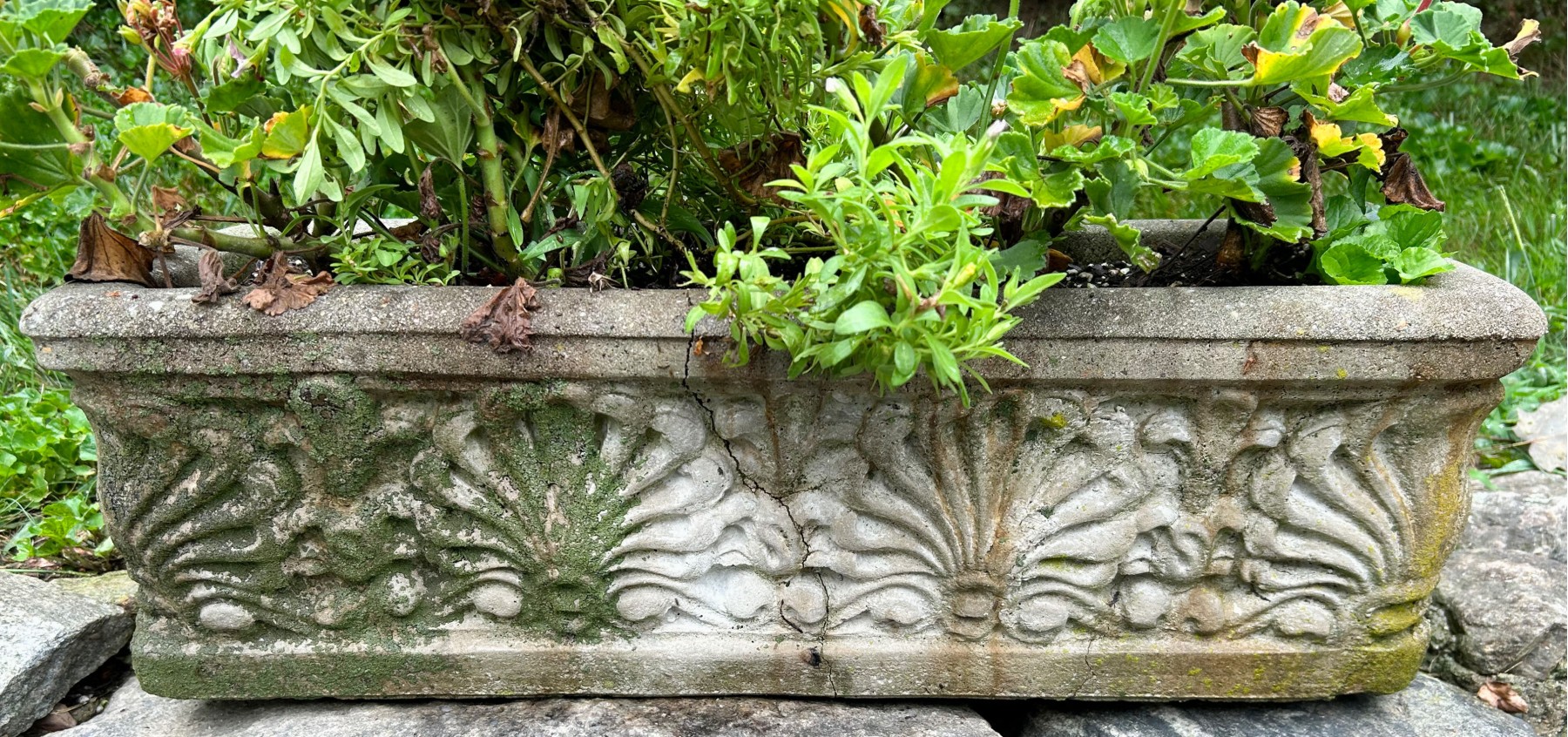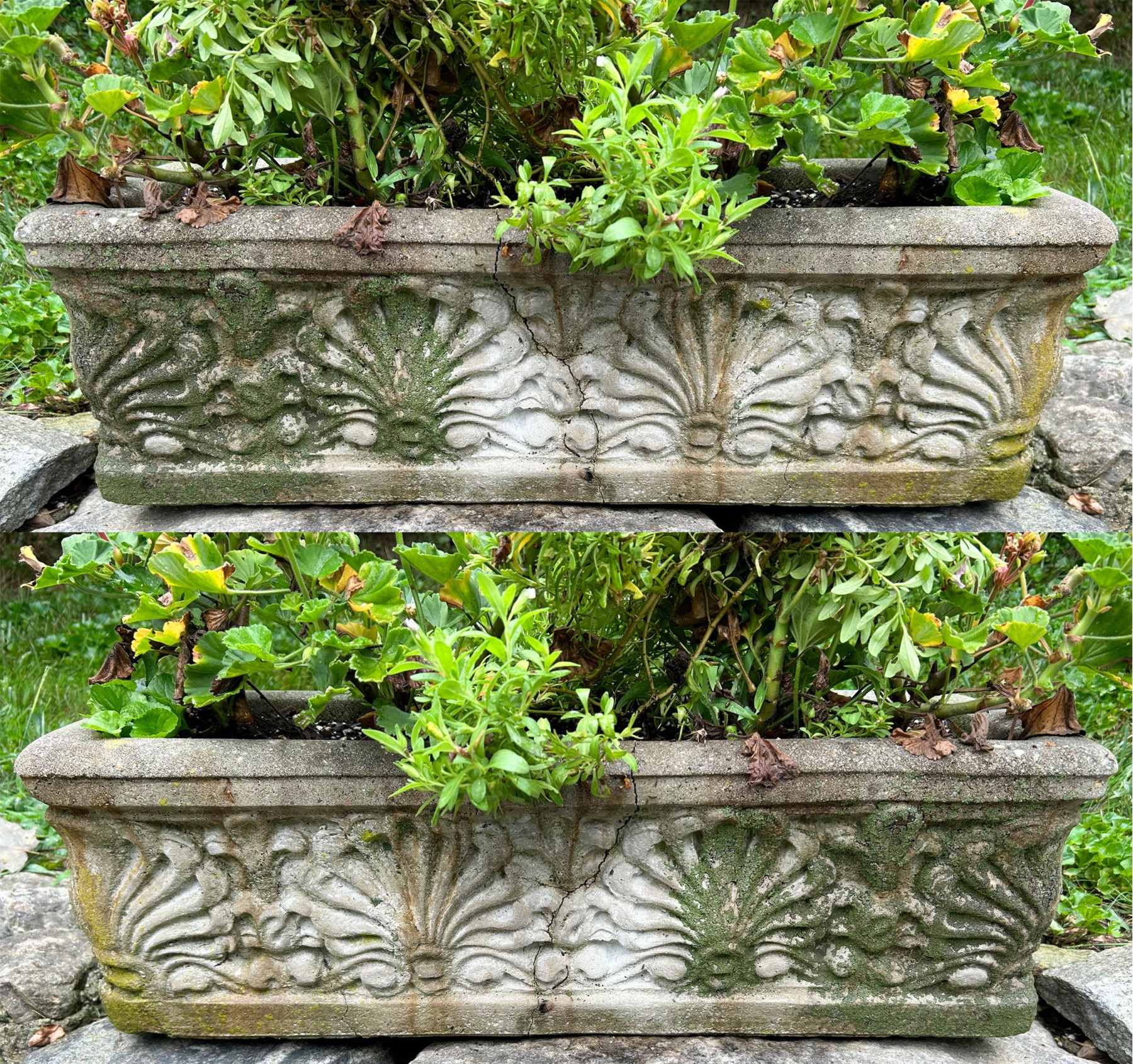 Vintage Pair Of Rectangular Cast Concrete Garden Planter Boxes
