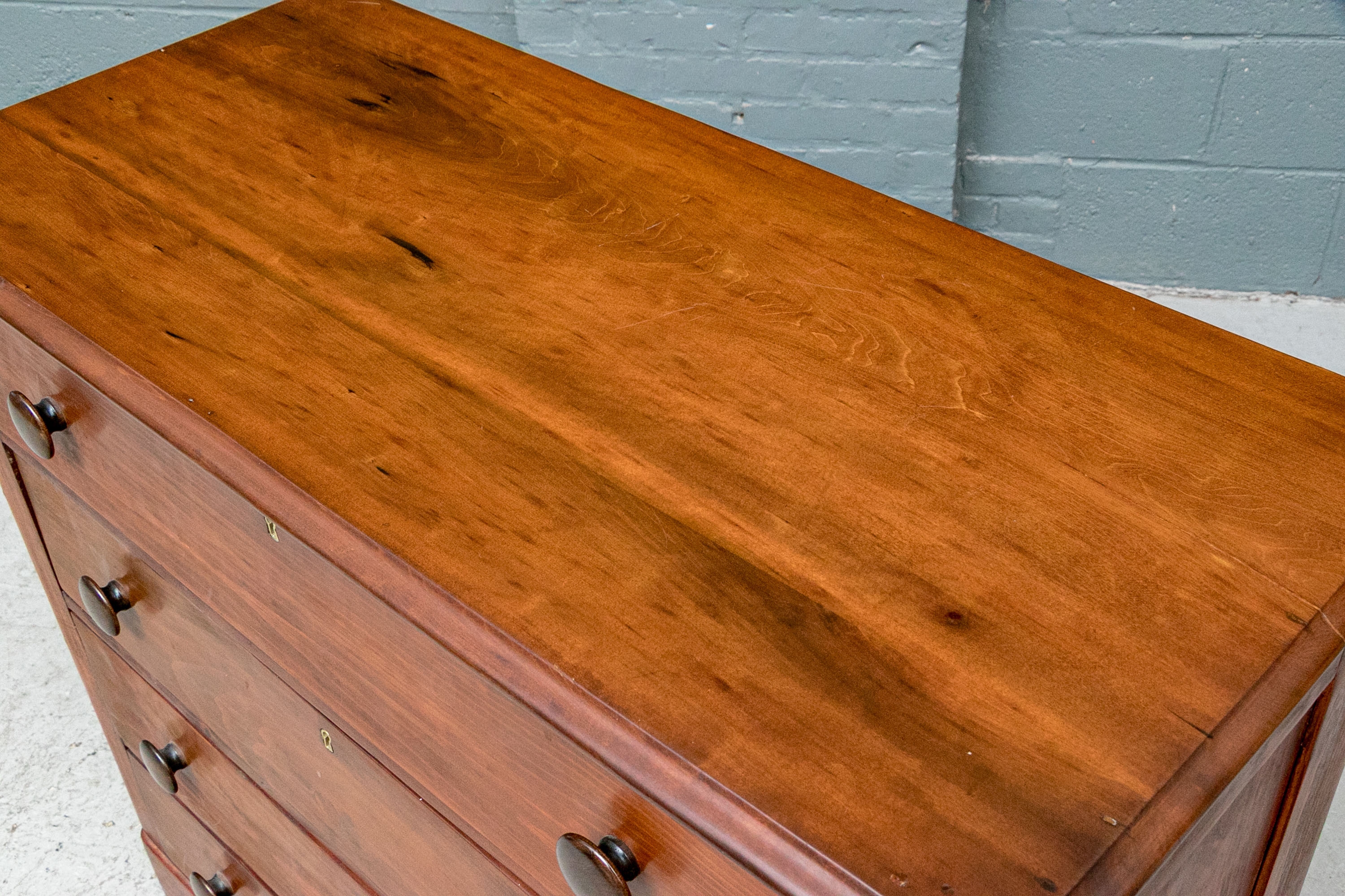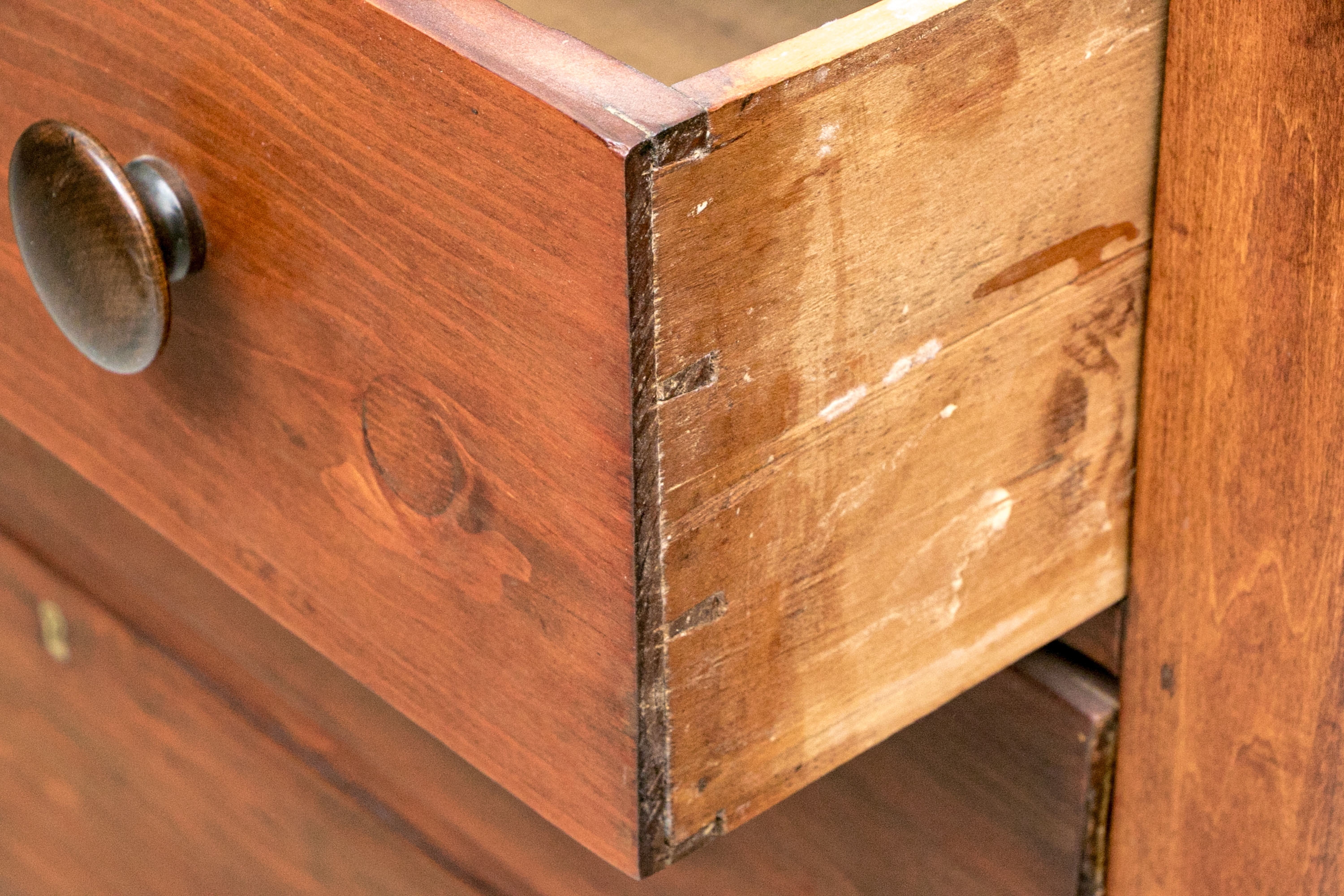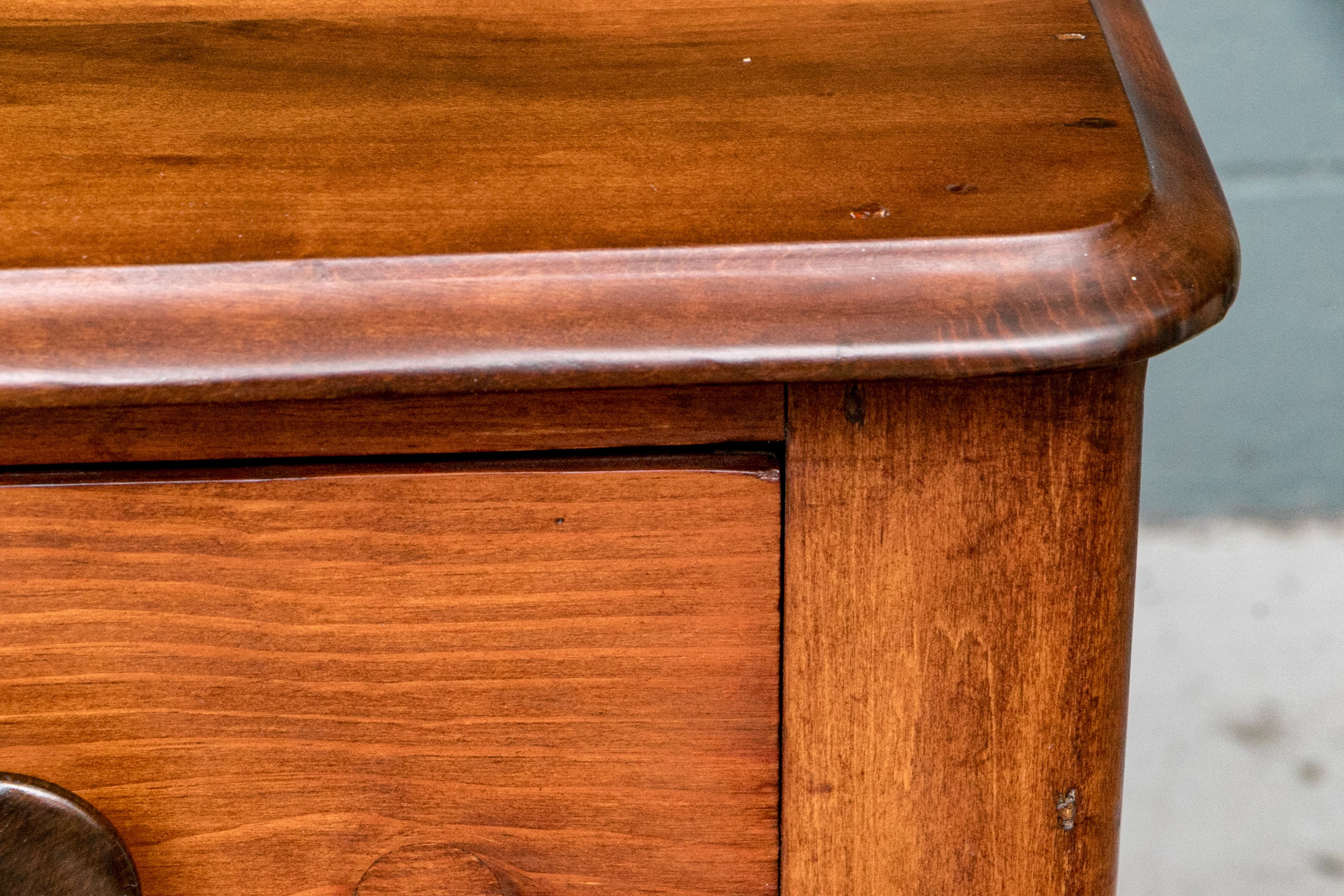 Condition: Please review the detail photos. There are gouges, a crack and stains on the top. A few old gouges on the left side. The chest has been professionally restored at an earlier time.