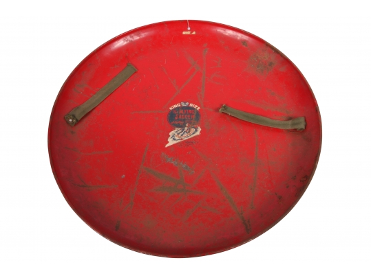 Vintage Red Paint Decorated Metal Flying Saucer Sled