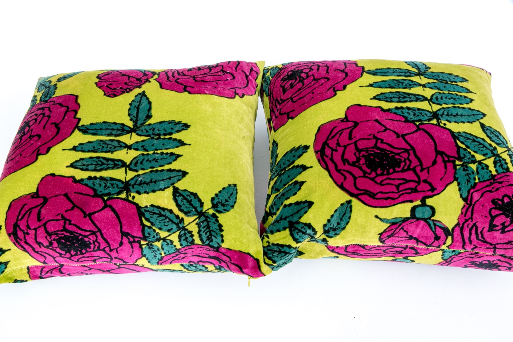 A wonderful vintage, retro pair of accent pillows. The cotton covers have a zip to open and launder. Down or feather filled pillows inside.
