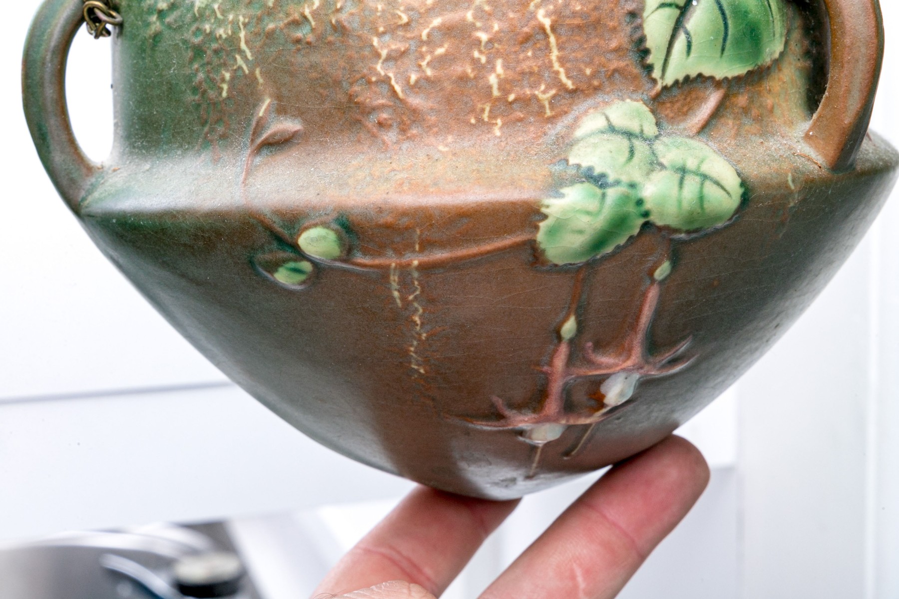Vintage Roseville "Freesia" Glazed Ceramic Hanging Vase #323783. Black Rock Galleries provides high end estate liquidation services through online estate auctions and a 50,000 sq ft designer showroom. estate liquidator, estate sale, online auction, antiques, fine art, liquidation, clean outs, auction, consignment, interior design, fine jewelry, collectibles, appraisals, estate appraisals, estate services, decor, furniture, furniture consignment, antique center, consignment shop. We offer appraisal services and specialize in fine art, jewelry, antiques and decorative arts. Sell with us. Black Rock Galleries is the tri-state's largest estate liquidator serving New England and the greater New York City area. We are the trusted source for expert appraisals, auction services, estate sales, and consignments. Black Rock Galleries is the east coast's largest and most trusted estate liquidator, with locations in Connecticut, greater Boston, MA and Raleigh, NC, Fairfield, Southport, Apex, TX. We are the best source for expert appraisals, auction services, estate sales and consignments. We have served thousands of families and estates with compassion, professionalism and expertise. BRG works with attorneys, executors, realtors and families to bring the greatest return on personal and estate property in the current market. Our unique combination of services make us the easy choice to get the job done in a timely and stress-free manner. We are with you from the initial consultation to the final clean out. Our house-built online auction software platform offers clients a dynamic approach to liquidating their personal property. This venue is most successful in bringing the best return with the least amount of disruption for our clients. See our services page for a complete description of this offering. Vintage Roseville "Freesia" Glazed Ceramic Hanging Vase #323783