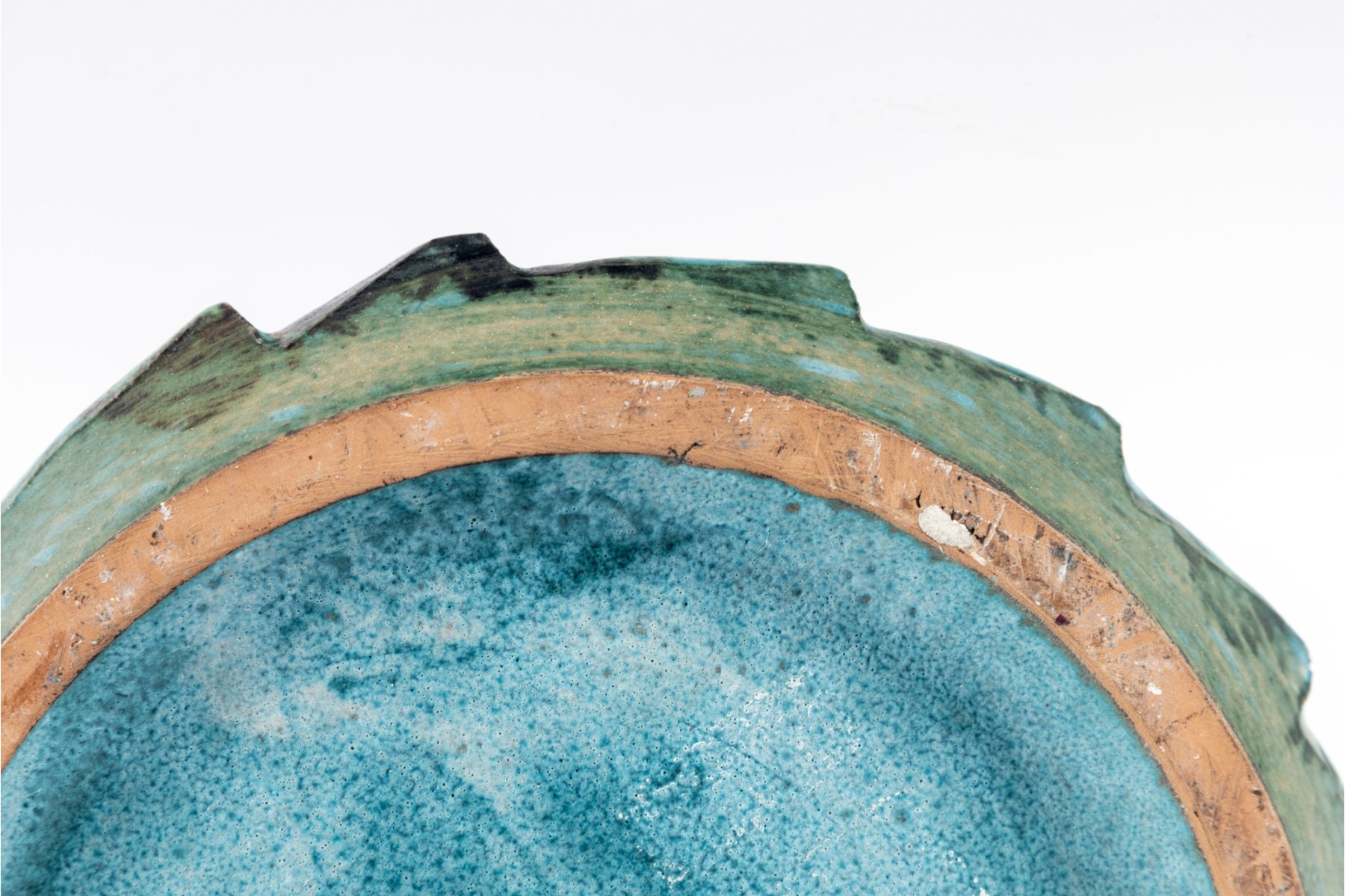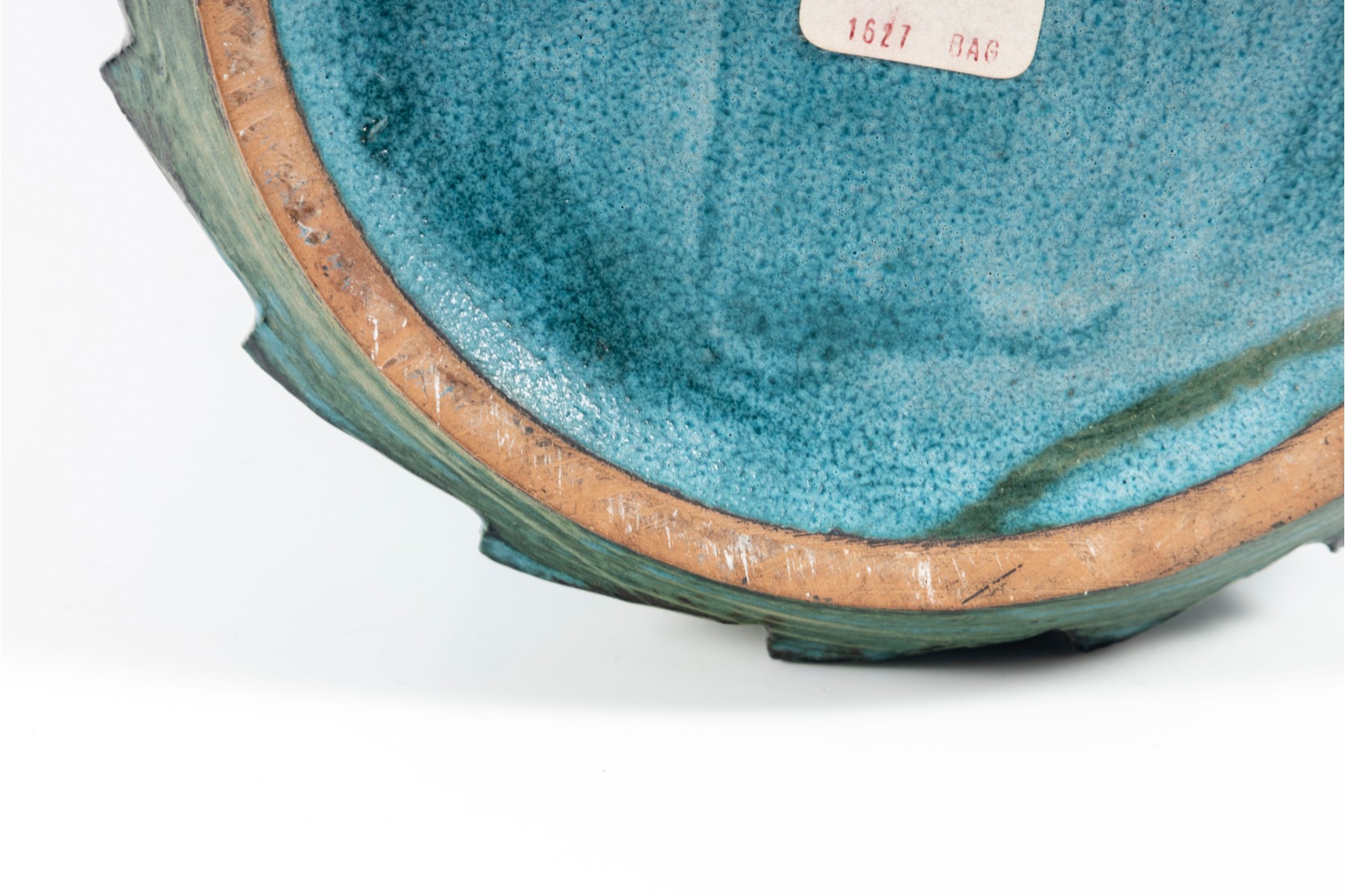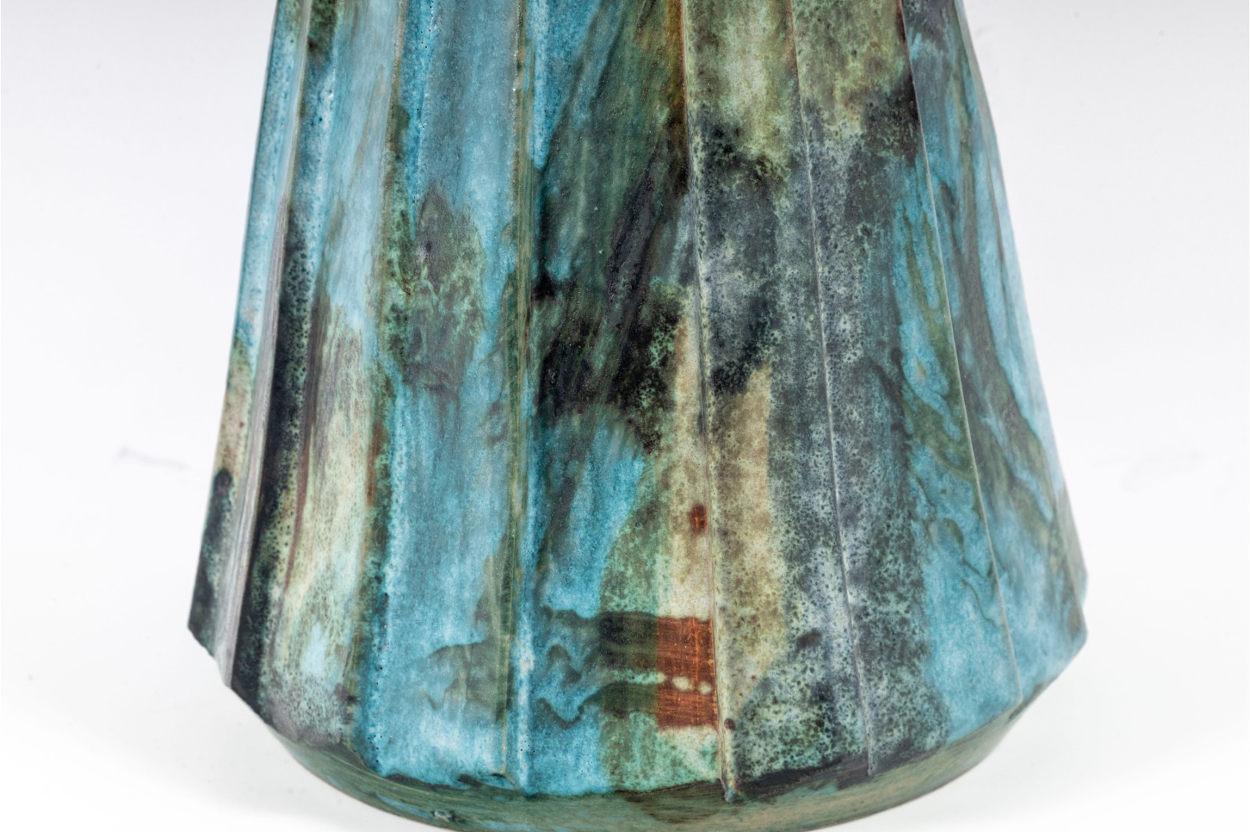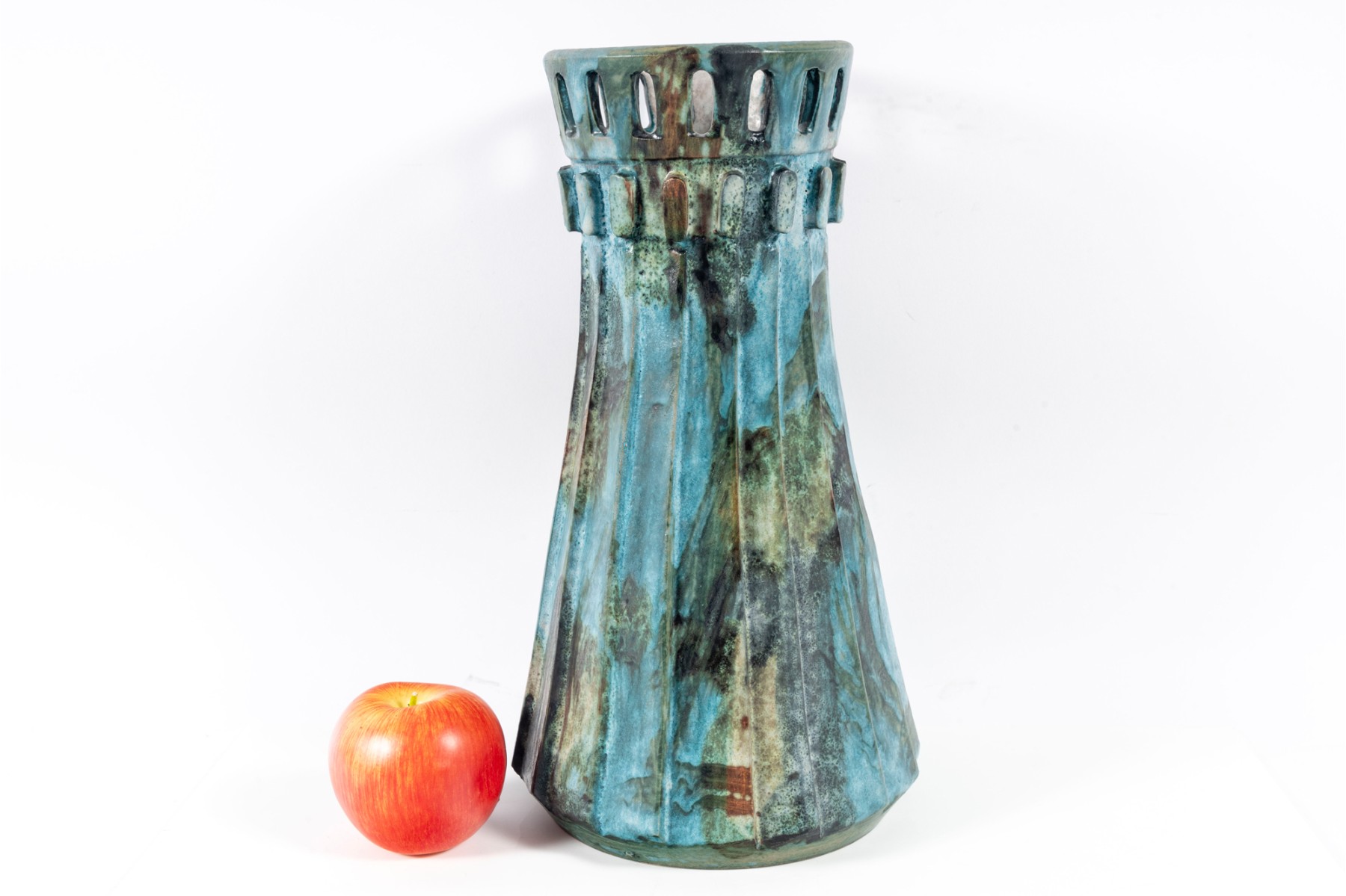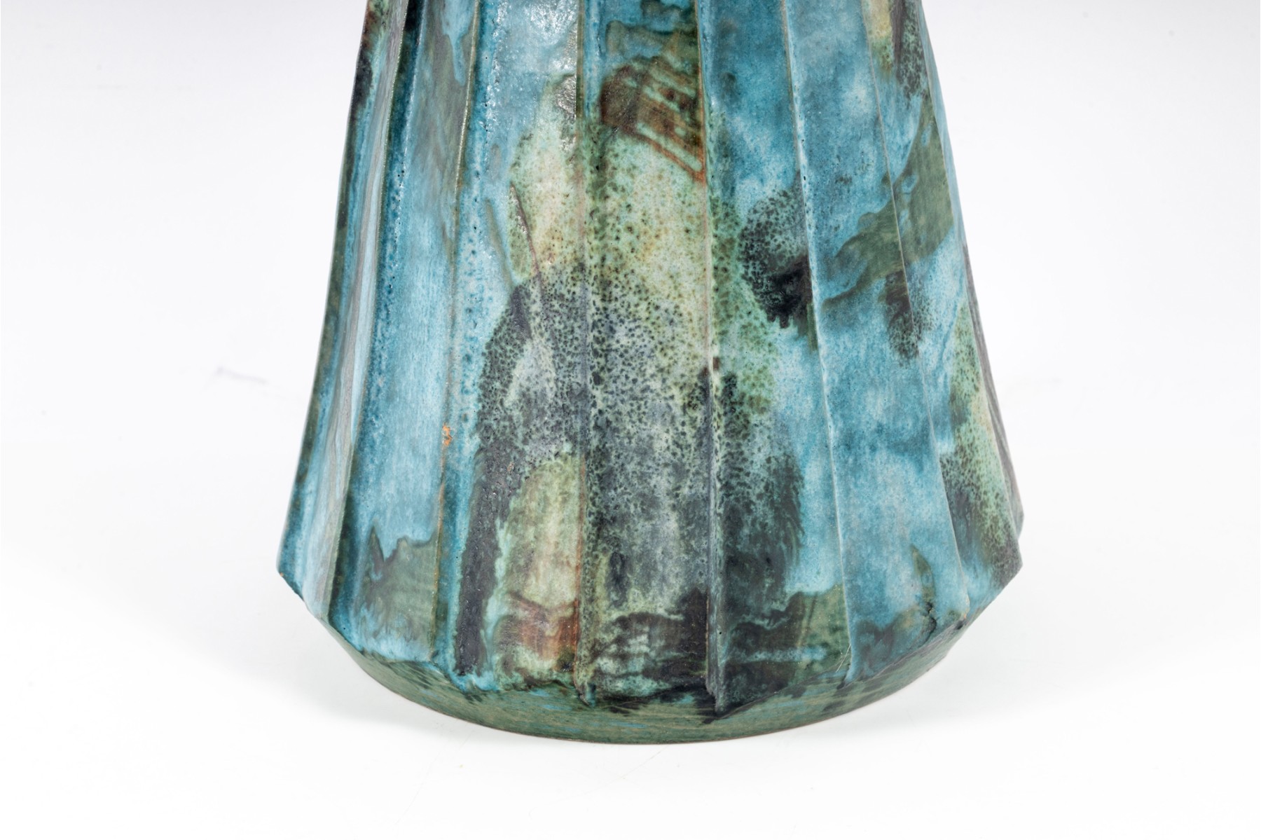A vintage ceramic “Sea Garden” Vase by Italian potter Alvino Bagni, denoted by an earthy exterior glaze and pierced trim details.