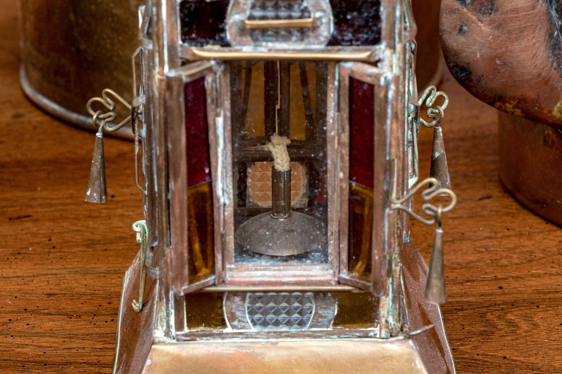 - a glass mosaic inlaid lantern - 6 3/4 x 4 1/4 x 3 1/2” D