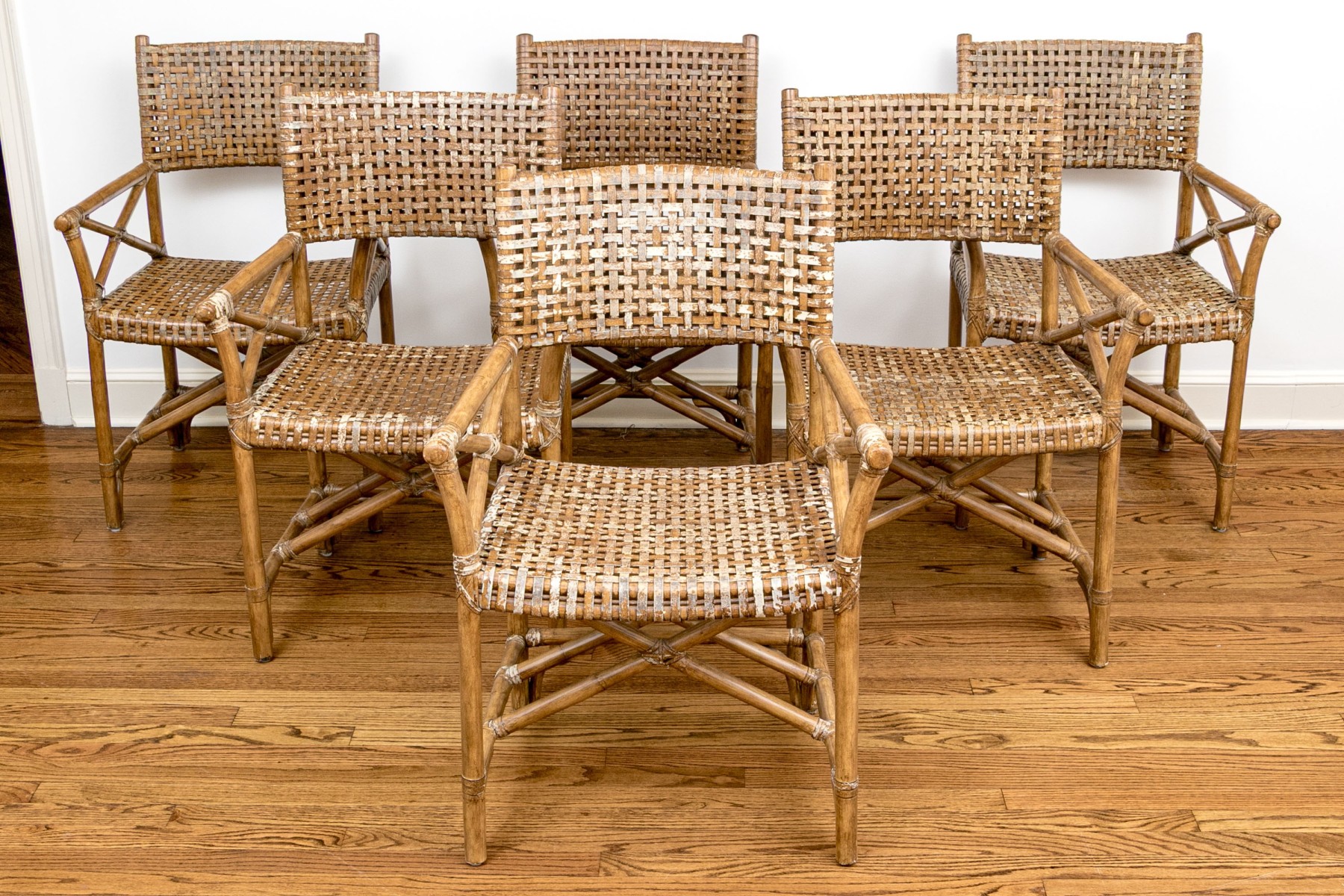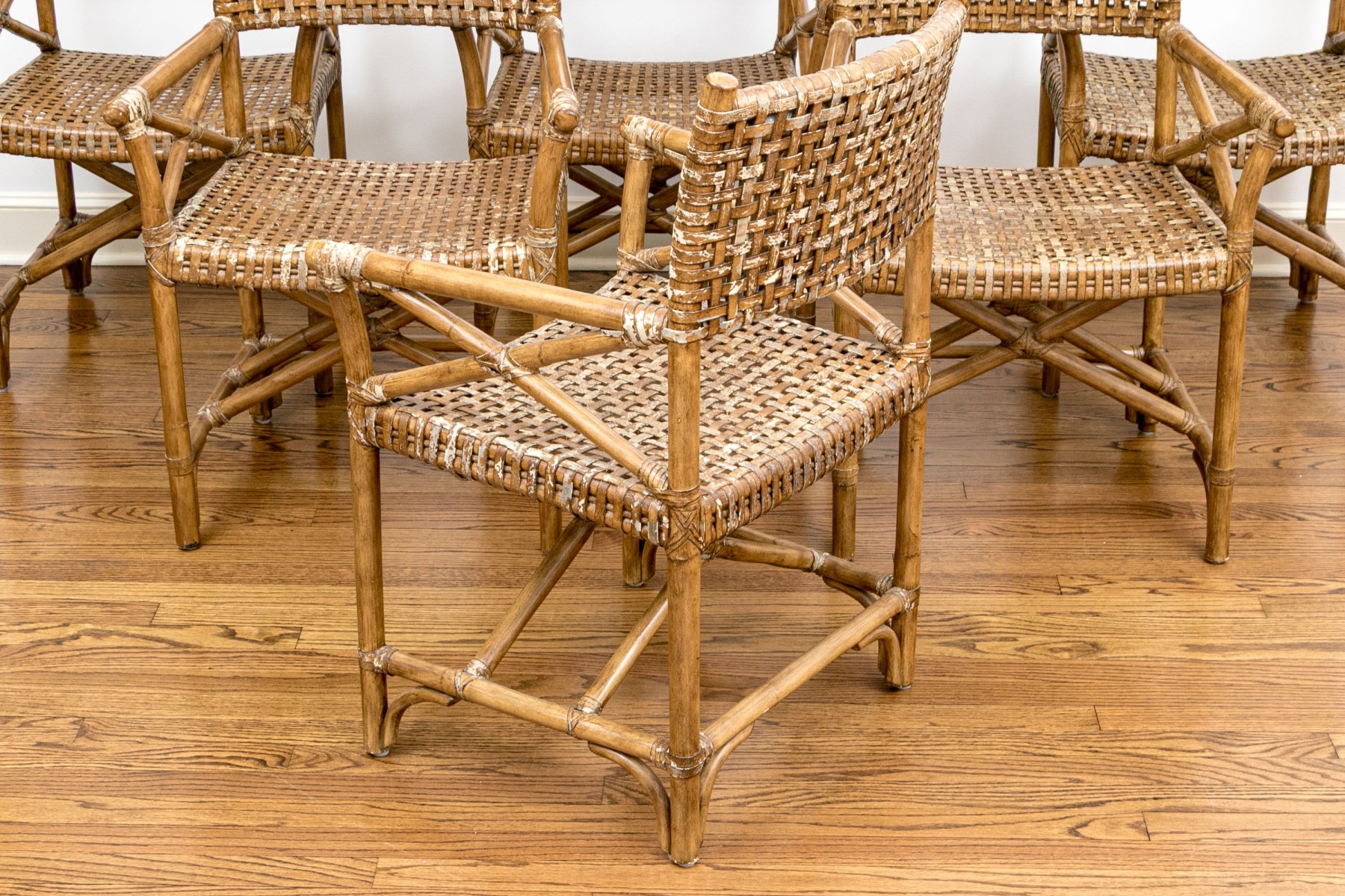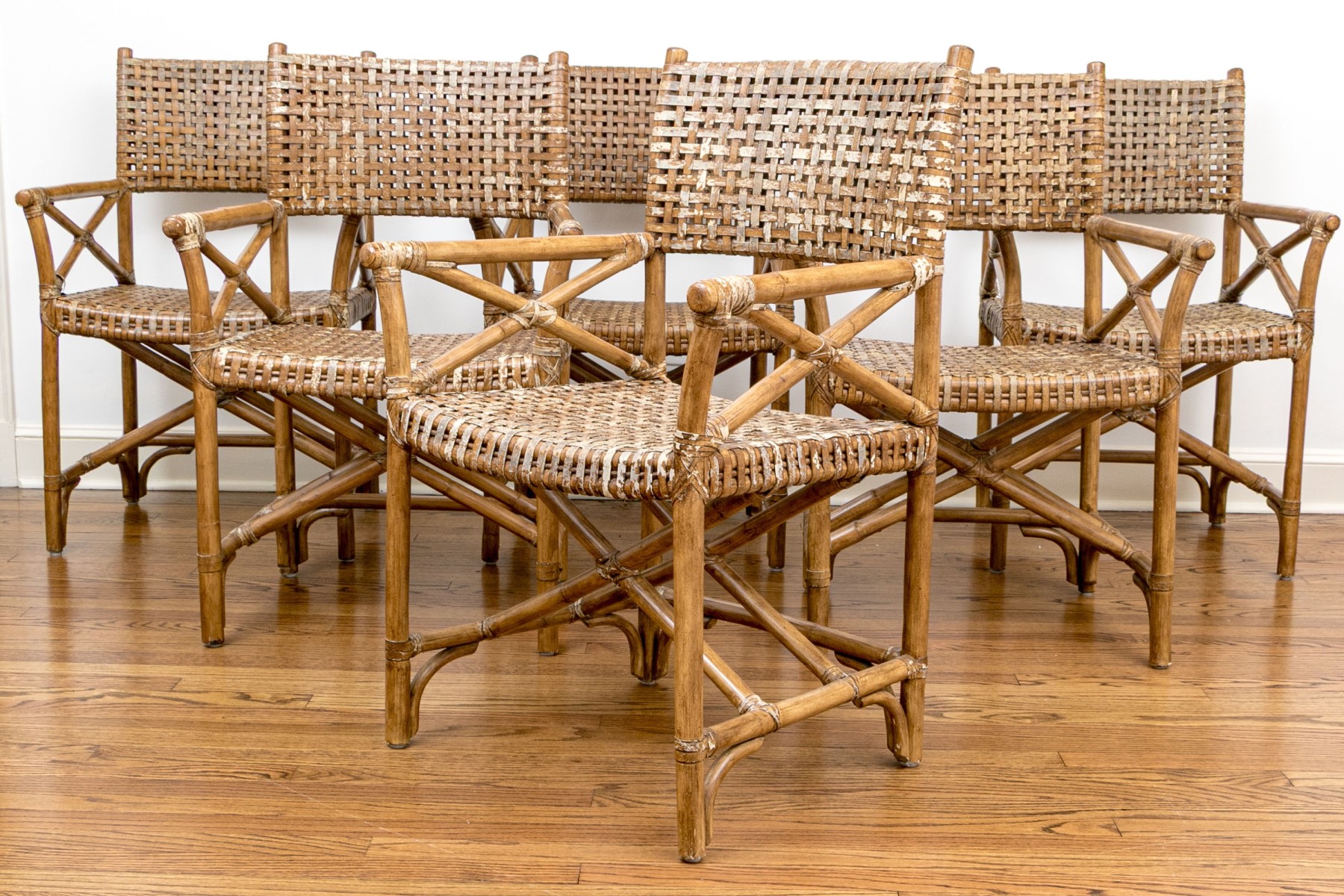 Vintage Set Of Six Bamboo, Rattan And Woven Leather Strapped Armchairs Probably Mcguire #462002. Black Rock Galleries provides high end estate liquidation services through online estate auctions and a 50,000 sq ft designer showroom. estate liquidator, estate sale, online auction, antiques, fine art, liquidation, clean outs, auction, consignment, interior design, fine jewelry, collectibles, appraisals, estate appraisals, estate services, decor, furniture, furniture consignment, antique center, consignment shop. We offer appraisal services and specialize in fine art, jewelry, antiques and decorative arts. Sell with us. Black Rock Galleries is the tri-state's largest estate liquidator serving New England and the greater New York City area. We are the trusted source for expert appraisals, auction services, estate sales, and consignments. Black Rock Galleries is the east coast's largest and most trusted estate liquidator, with locations in Connecticut, greater Boston, MA and Raleigh, NC, Fairfield, Southport, Apex, TX. We are the best source for expert appraisals, auction services, estate sales and consignments. We have served thousands of families and estates with compassion, professionalism and expertise. BRG works with attorneys, executors, realtors and families to bring the greatest return on personal and estate property in the current market. Our unique combination of services make us the easy choice to get the job done in a timely and stress-free manner. We are with you from the initial consultation to the final clean out. Our house-built online auction software platform offers clients a dynamic approach to liquidating their personal property. This venue is most successful in bringing the best return with the least amount of disruption for our clients. See our services page for a complete description of this offering. Vintage Set Of Six Bamboo, Rattan And Woven Leather Strapped Armchairs Probably Mcguire #462002