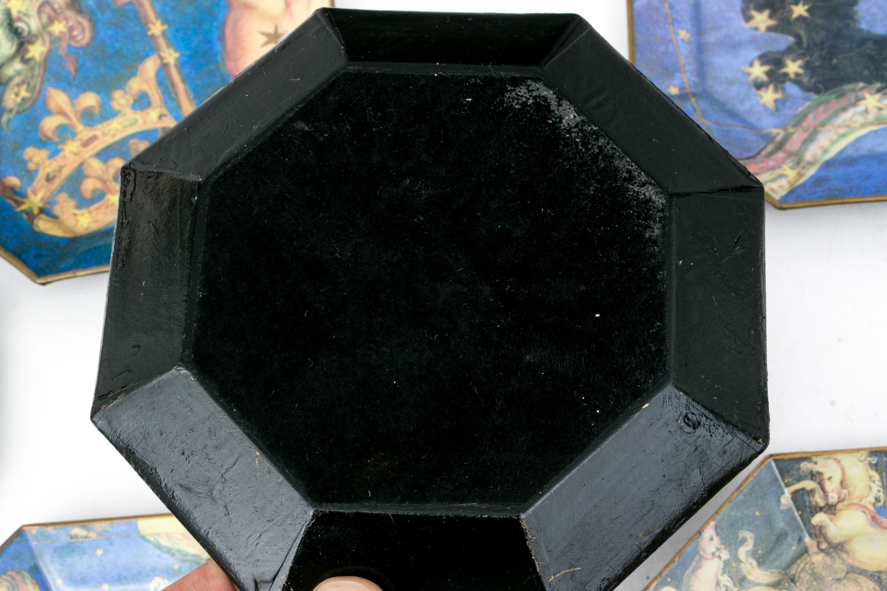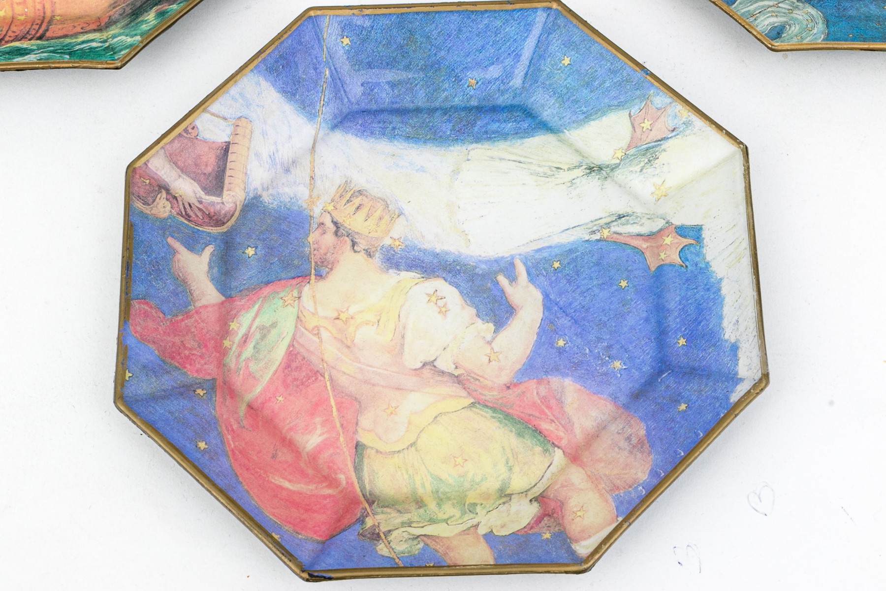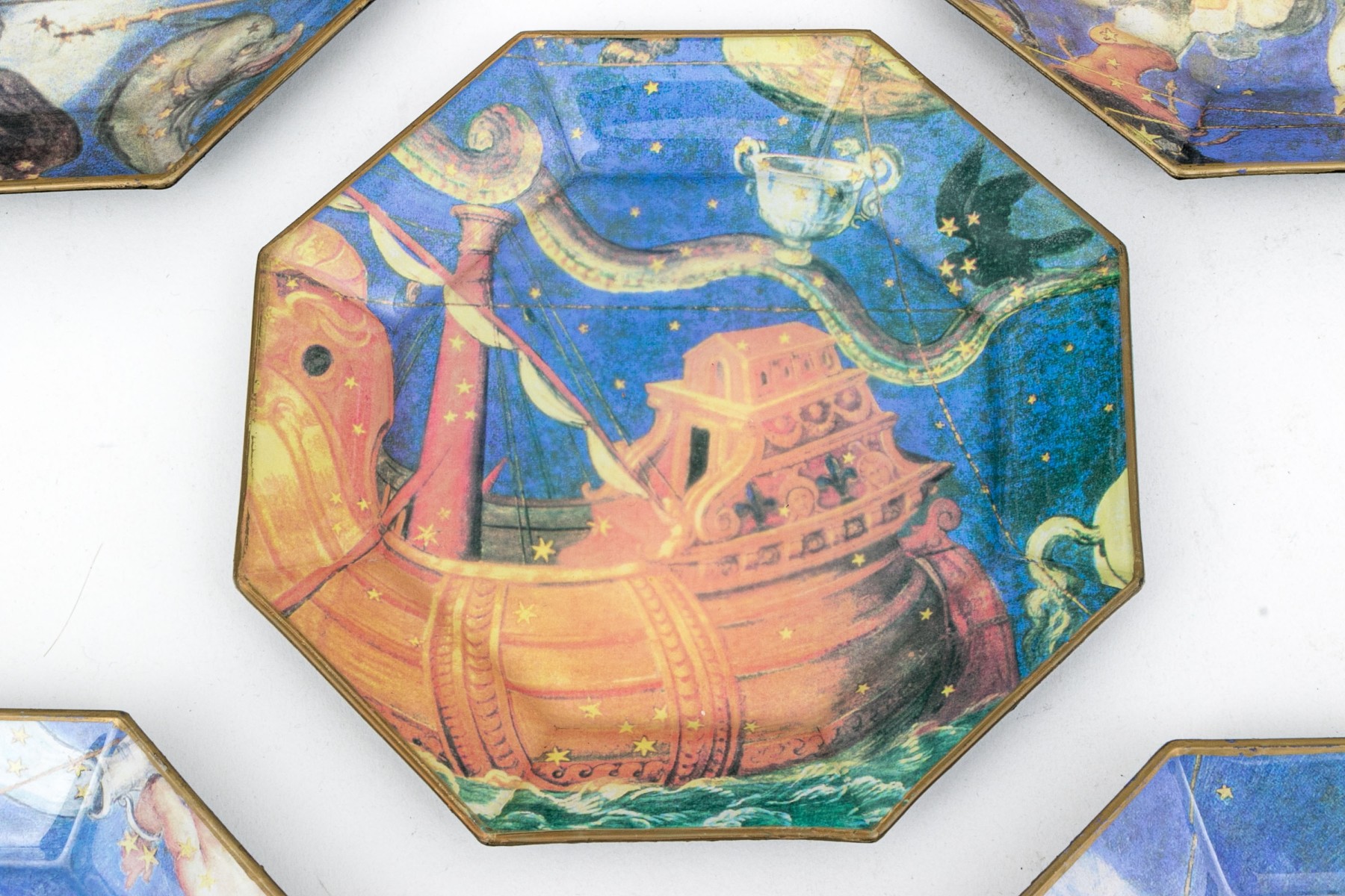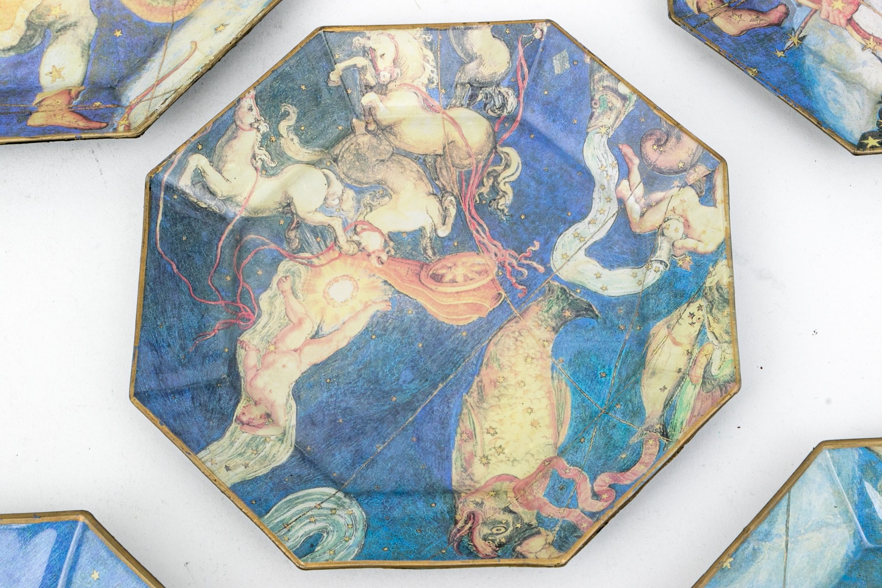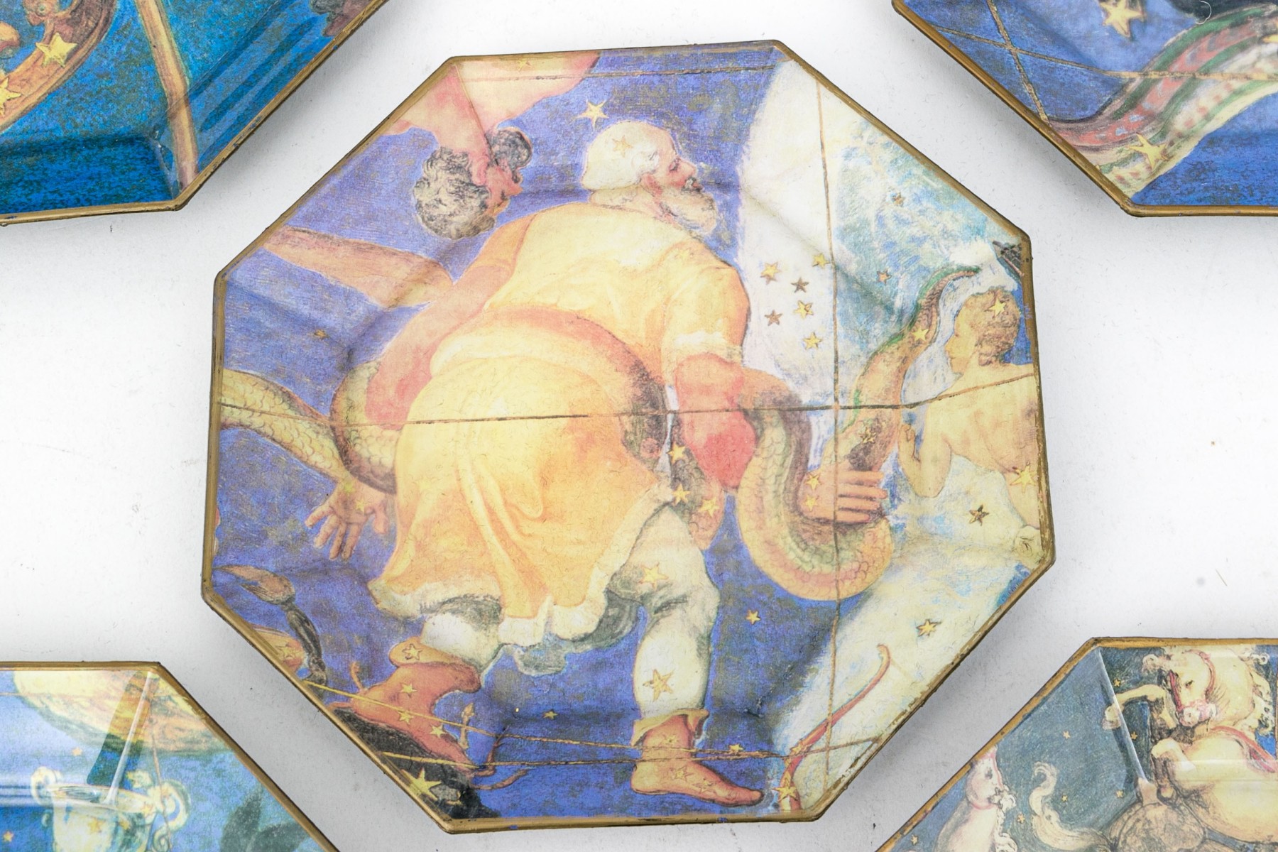 All with antique prints with figural astrology signs in color on purple ground.