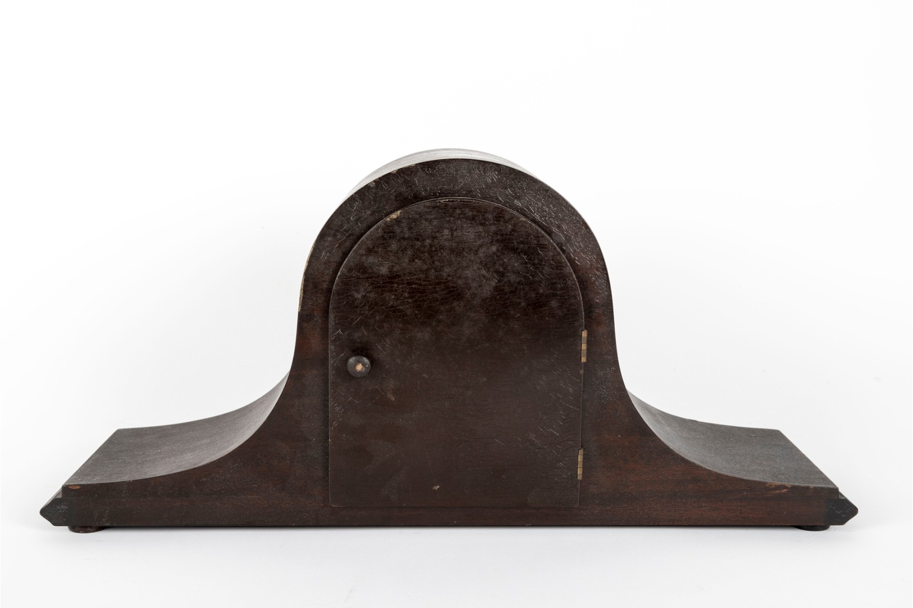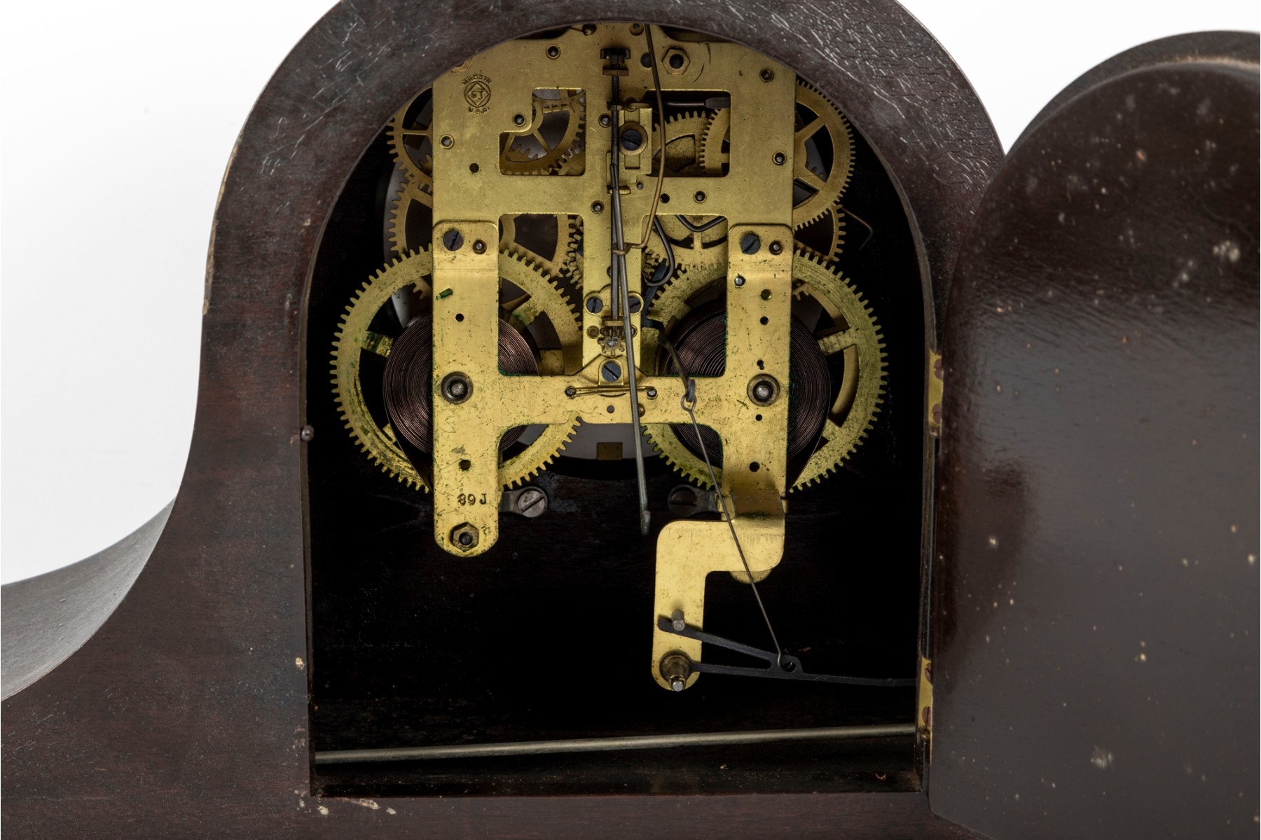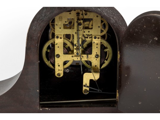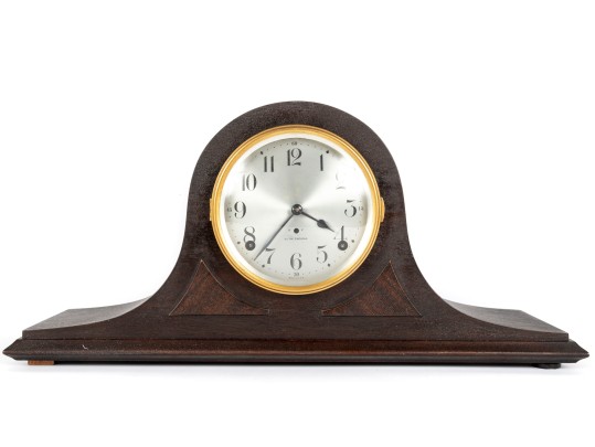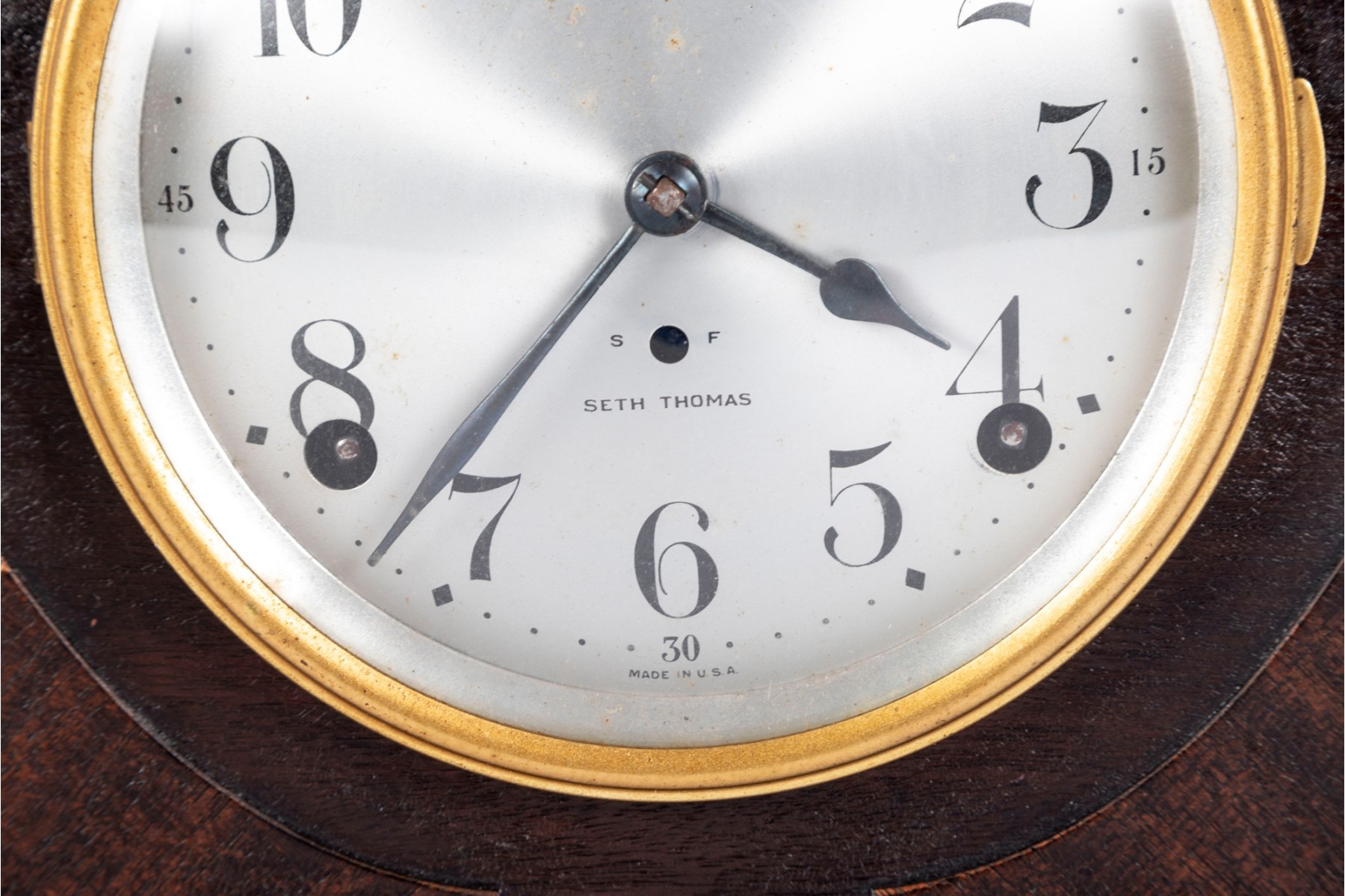 Vintage Seth Thomas Tambour 8-day mantel clock with a classic hump-back wood case design. No key included.