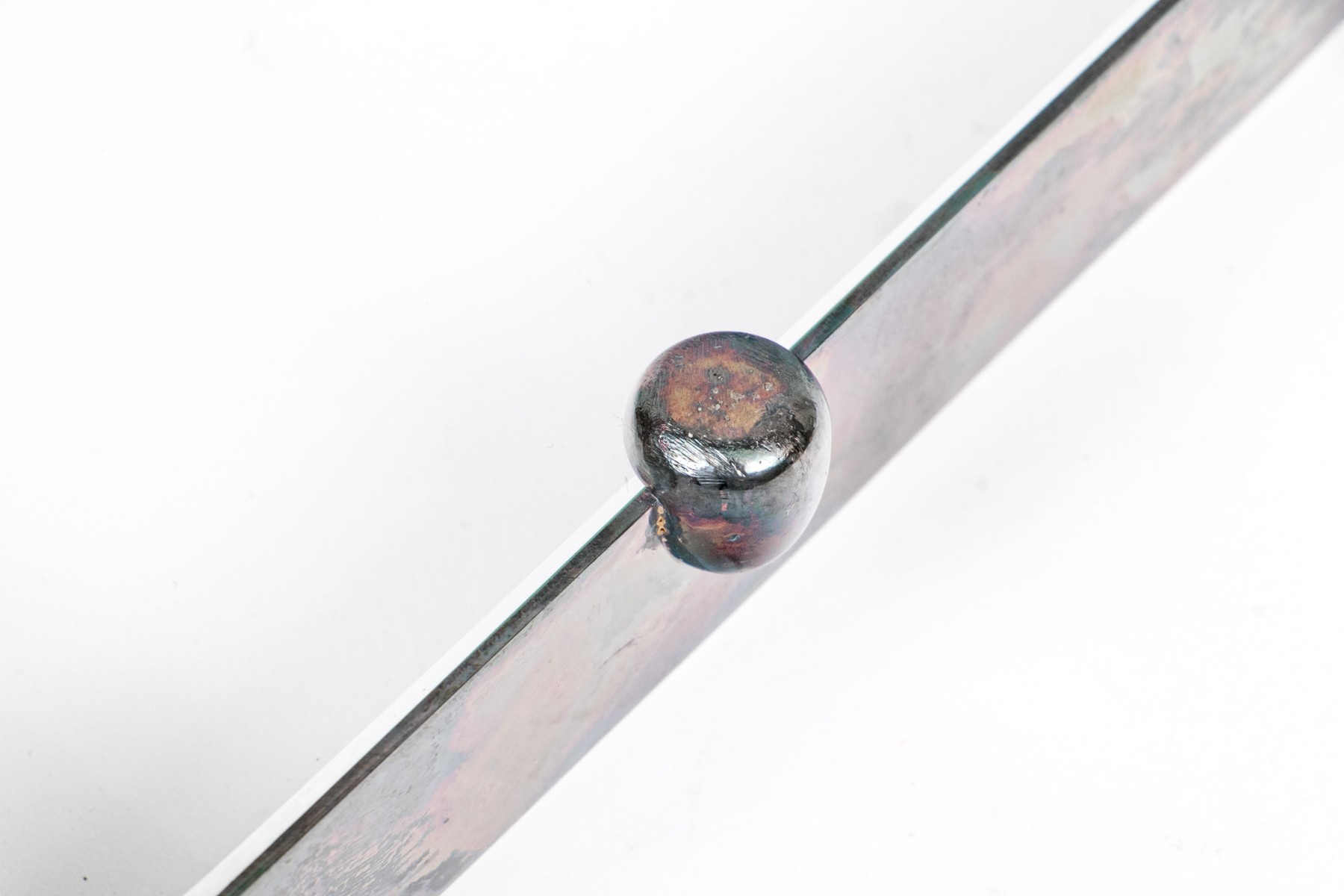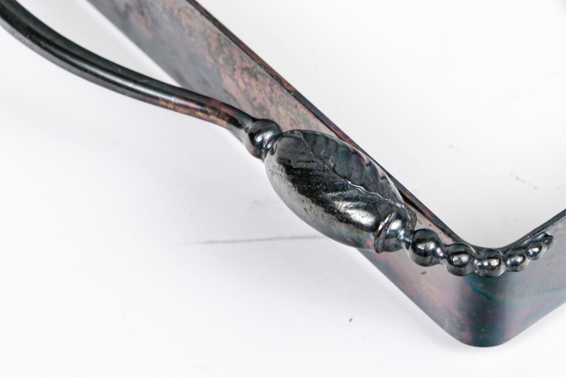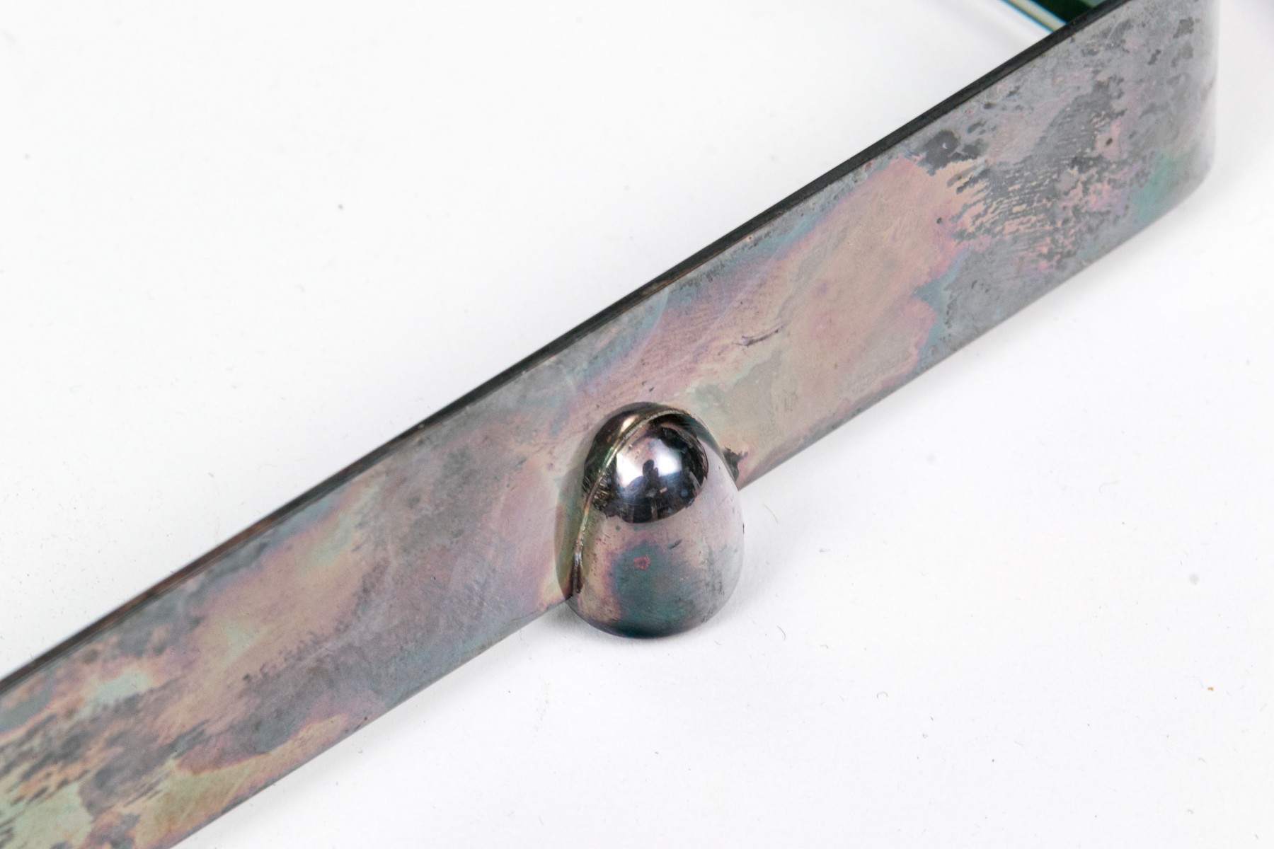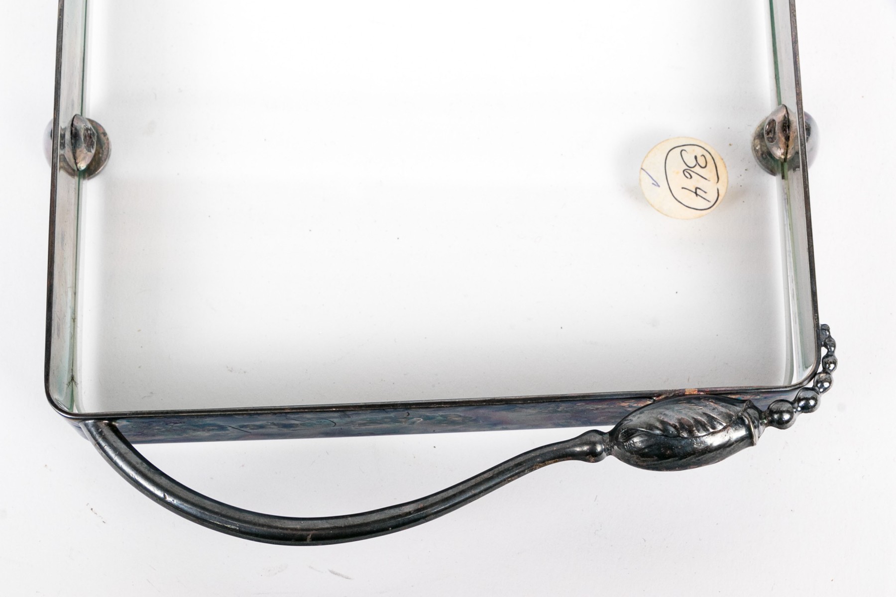 Presents well overall. A chipped flake to the glass near one foot, and tarnishing to the silverplate commensurate with age.