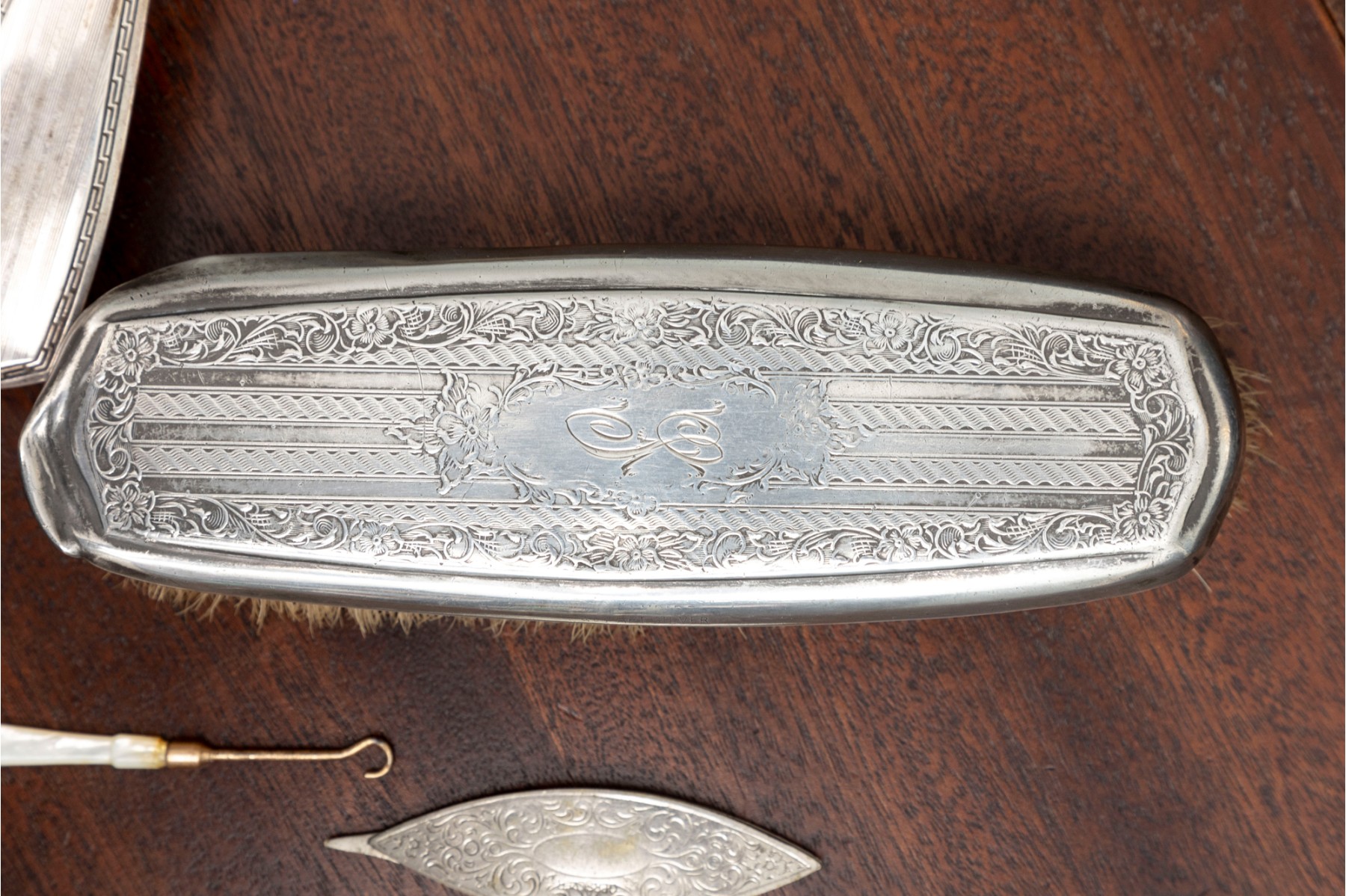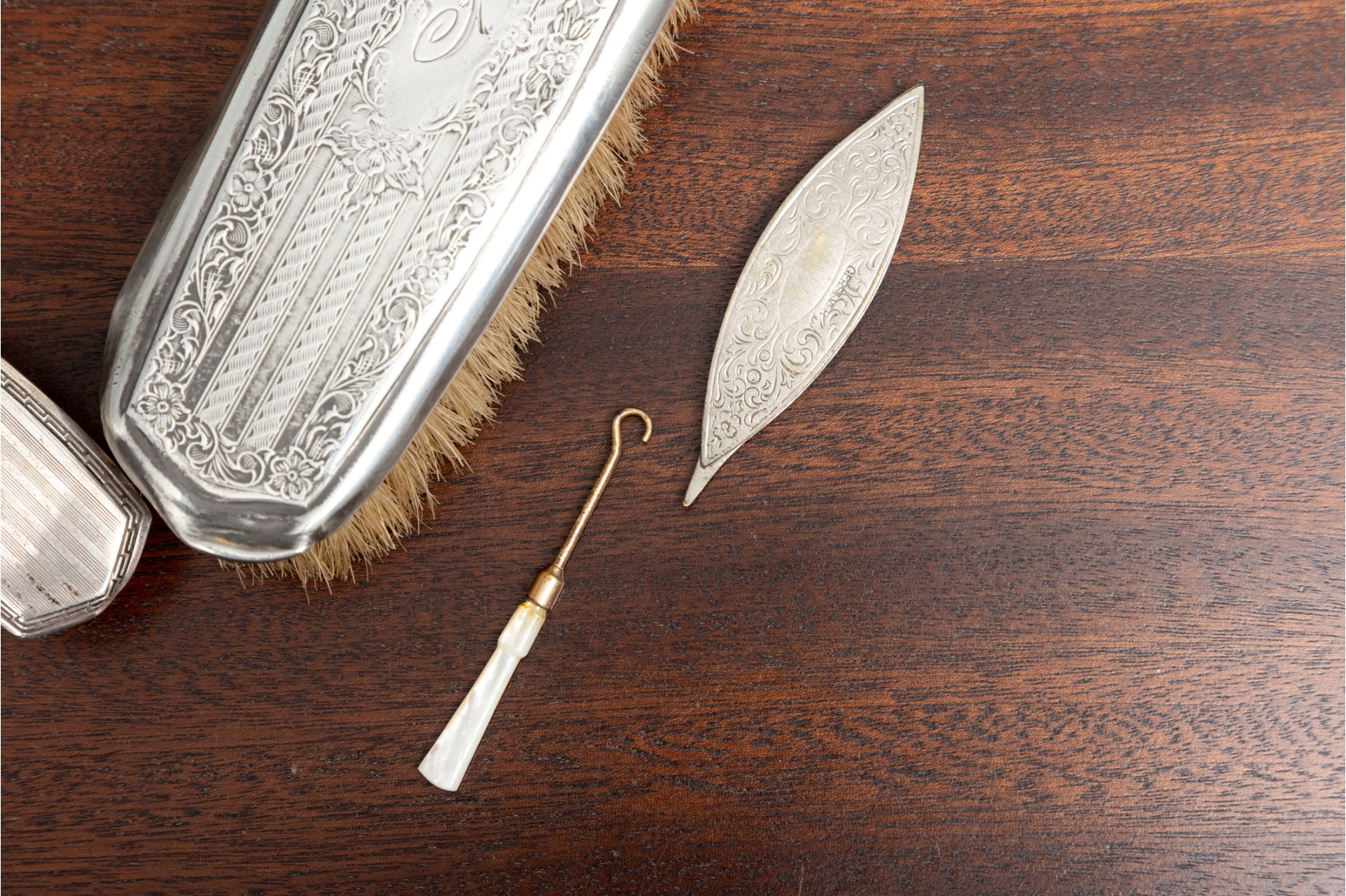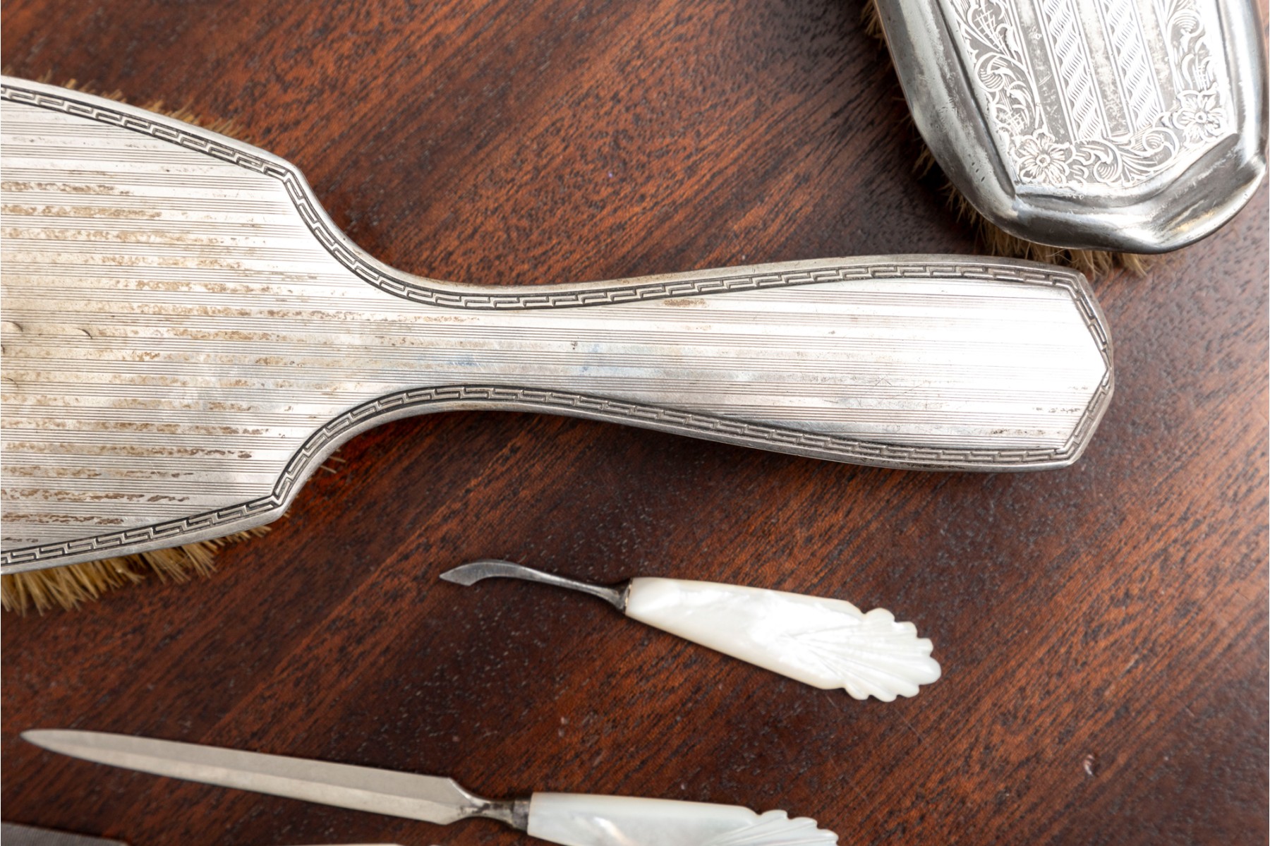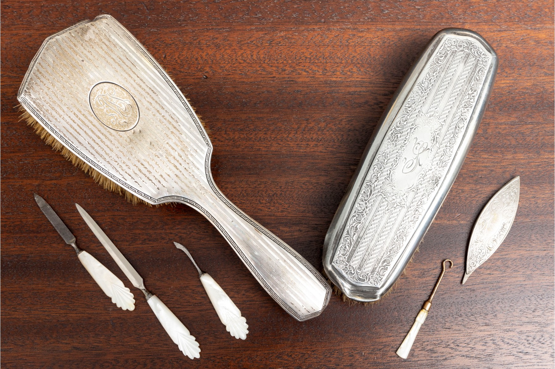 Vintage Sterling Silver & Mother Of Pearl Vanity Brush Set #321232. Black Rock Galleries provides high end estate liquidation services through online estate auctions and a 50,000 sq ft designer showroom. estate liquidator, estate sale, online auction, antiques, fine art, liquidation, clean outs, auction, consignment, interior design, fine jewelry, collectibles, appraisals, estate appraisals, estate services, decor, furniture, furniture consignment, antique center, consignment shop. We offer appraisal services and specialize in fine art, jewelry, antiques and decorative arts. Sell with us. Black Rock Galleries is the tri-state's largest estate liquidator serving New England and the greater New York City area. We are the trusted source for expert appraisals, auction services, estate sales, and consignments. Black Rock Galleries is the east coast's largest and most trusted estate liquidator, with locations in Connecticut, greater Boston, MA and Raleigh, NC, Fairfield, Southport, Apex, TX. We are the best source for expert appraisals, auction services, estate sales and consignments. We have served thousands of families and estates with compassion, professionalism and expertise. BRG works with attorneys, executors, realtors and families to bring the greatest return on personal and estate property in the current market. Our unique combination of services make us the easy choice to get the job done in a timely and stress-free manner. We are with you from the initial consultation to the final clean out. Our house-built online auction software platform offers clients a dynamic approach to liquidating their personal property. This venue is most successful in bringing the best return with the least amount of disruption for our clients. See our services page for a complete description of this offering. Vintage Sterling Silver & Mother Of Pearl Vanity Brush Set #321232
