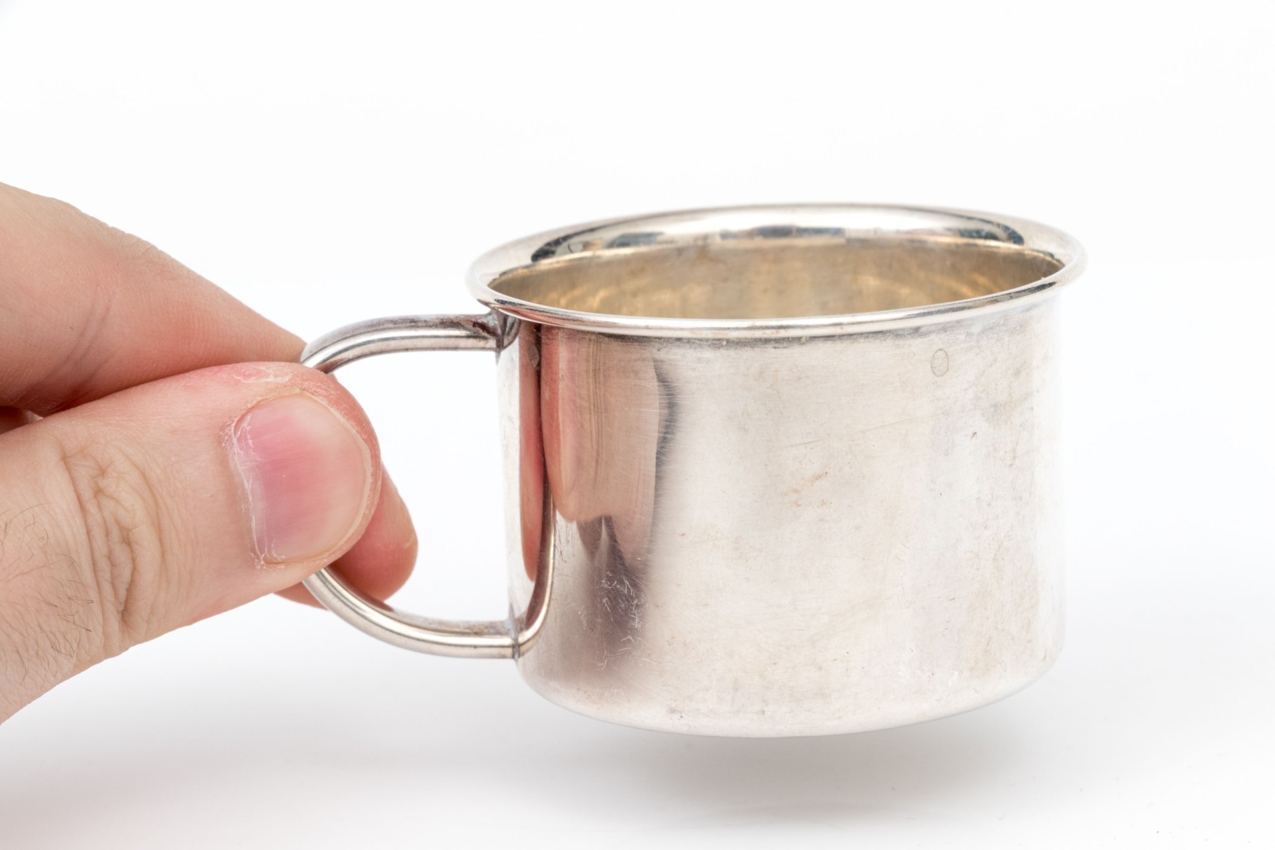 A darling sterling silver child's cup with a chased bunny rabbit on the inside bottom.