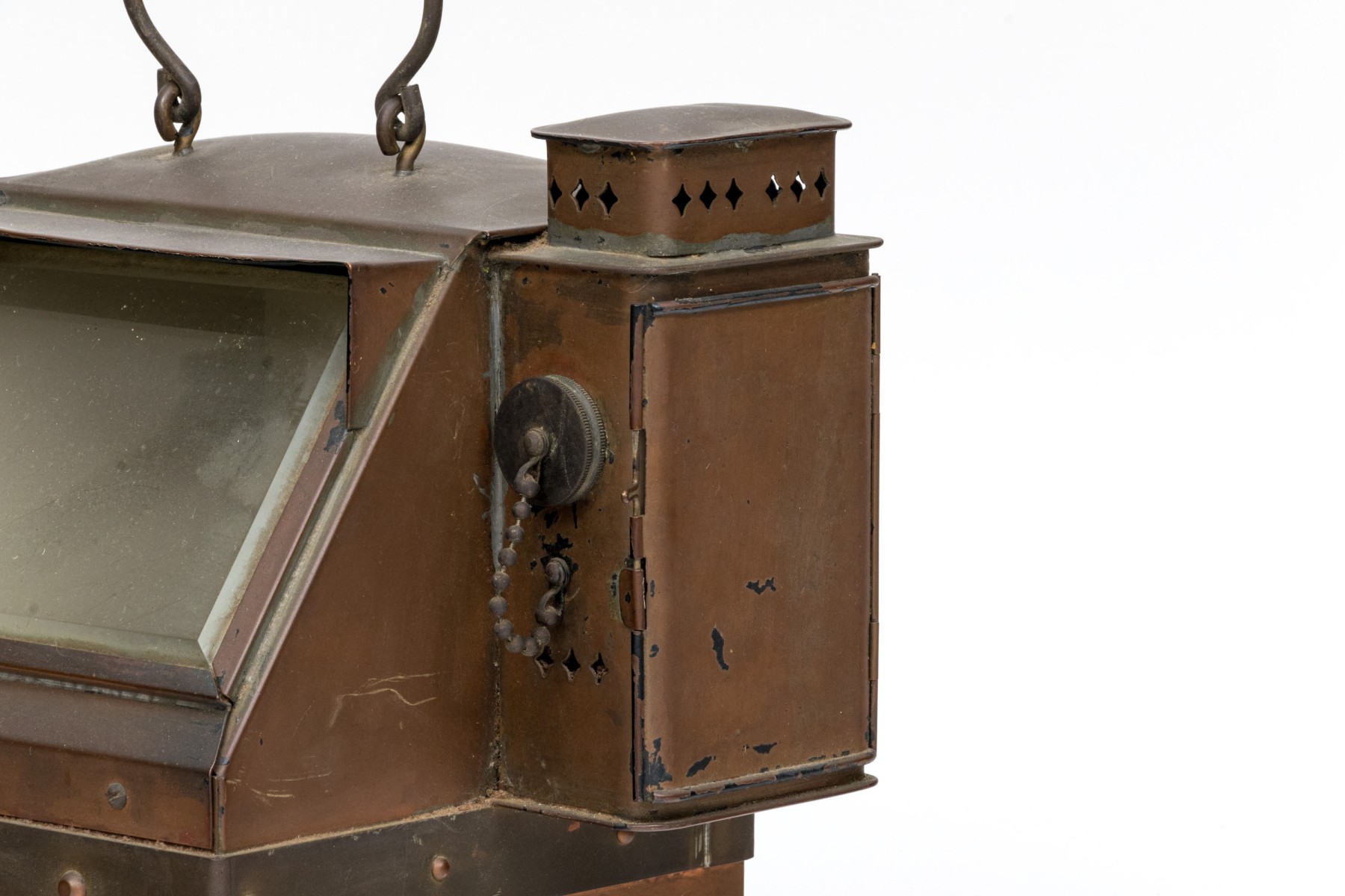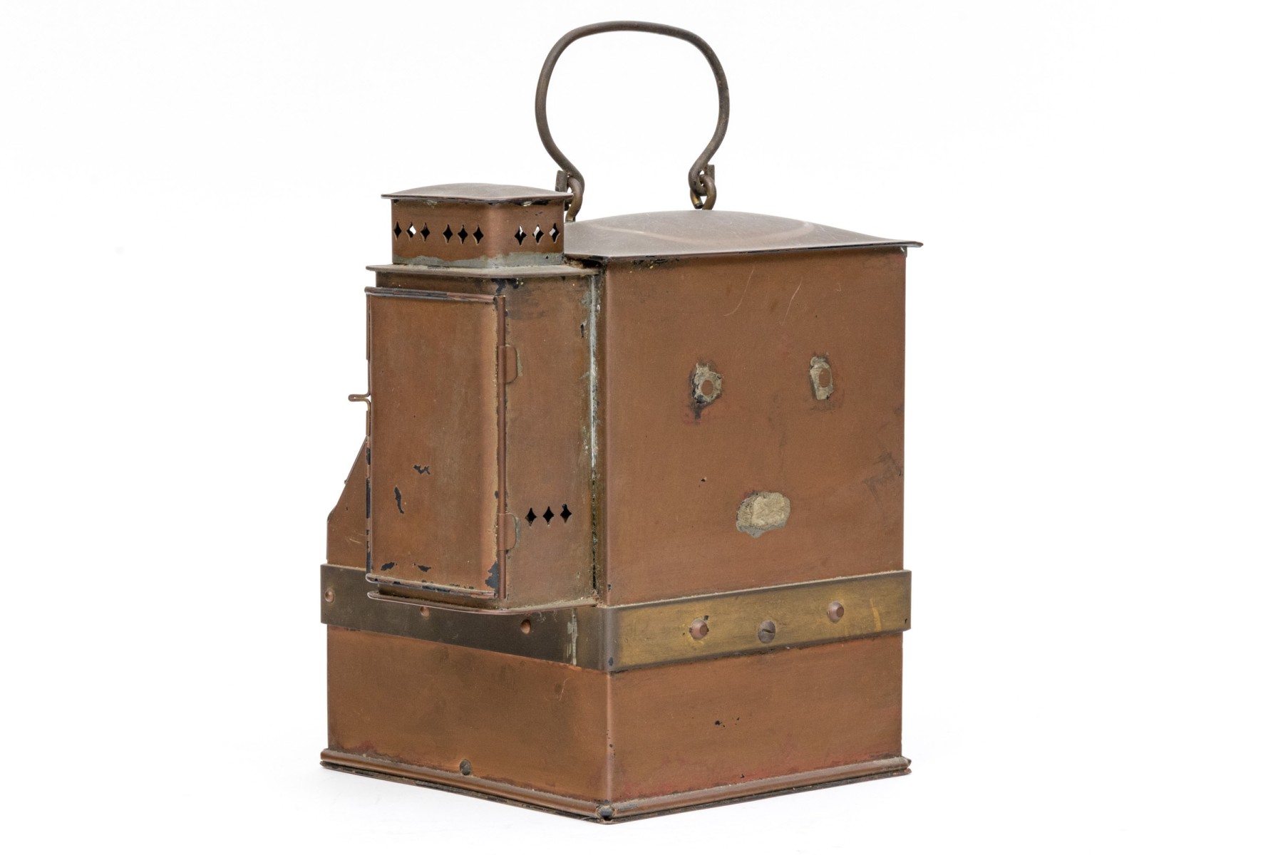 Condition: The copper displays a patina. Wear and some debris on and behind the glass. Directional markings missing from the interior compass, accuracy of the compass is unknown. Please see photos.