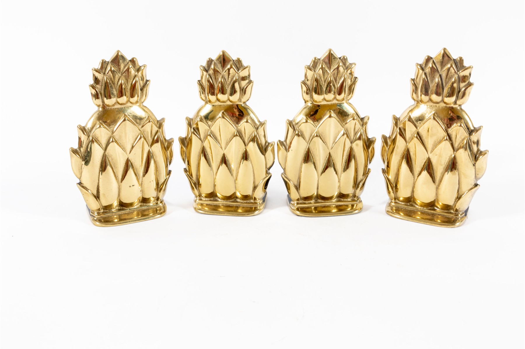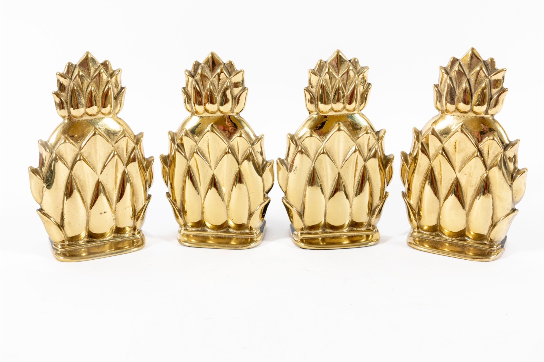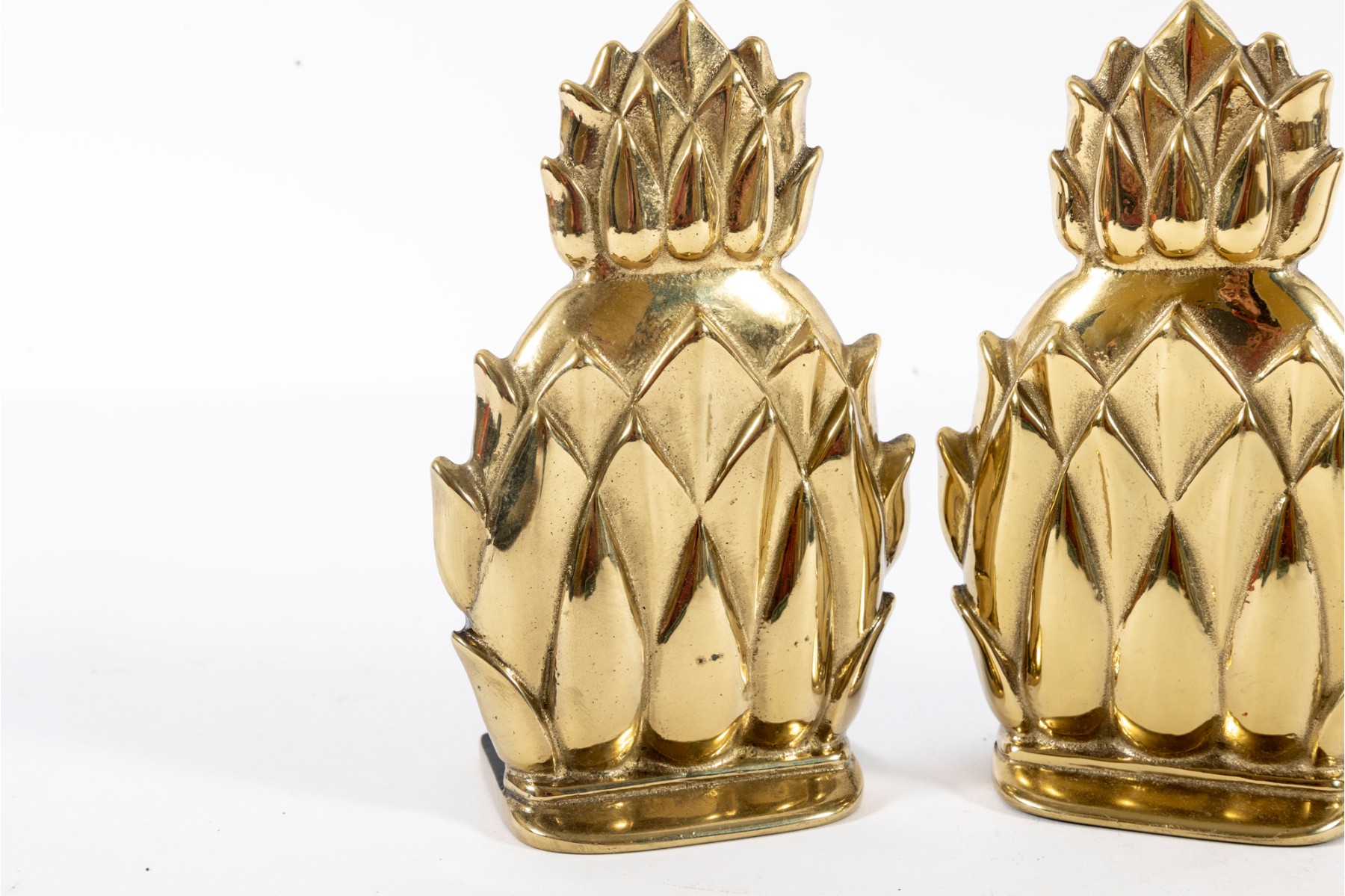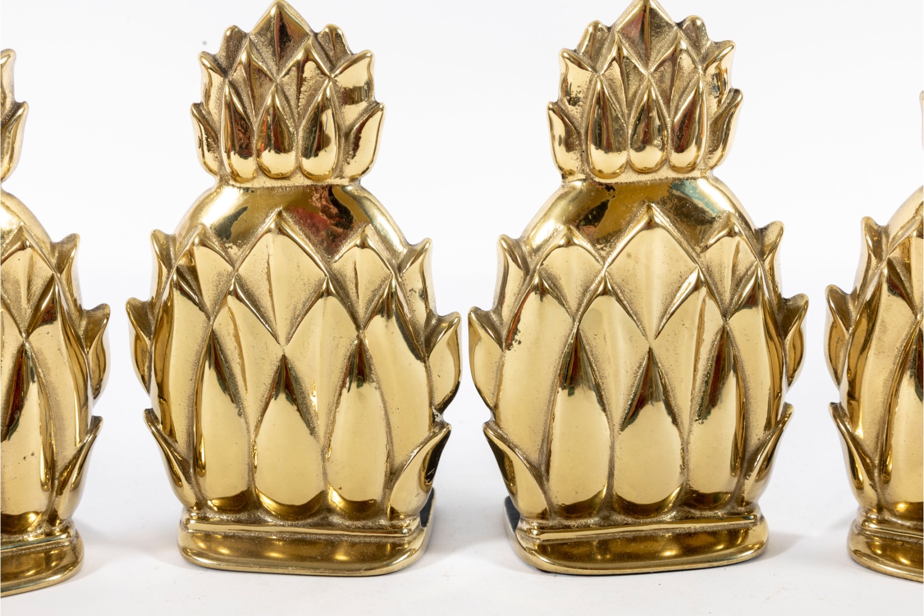 A set of four cast brass pineapple bookends by Virginia Metalcrafters, Newport. Each bookend weighs two pounds.