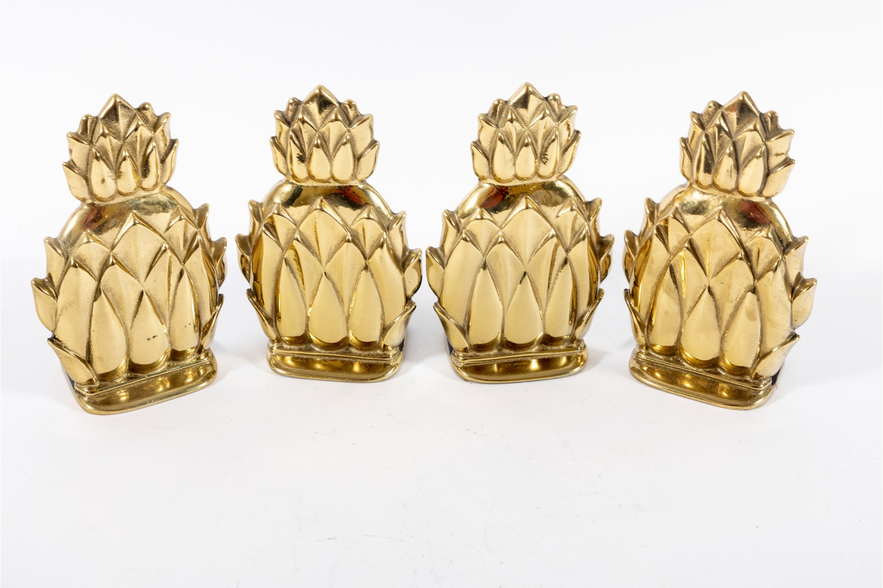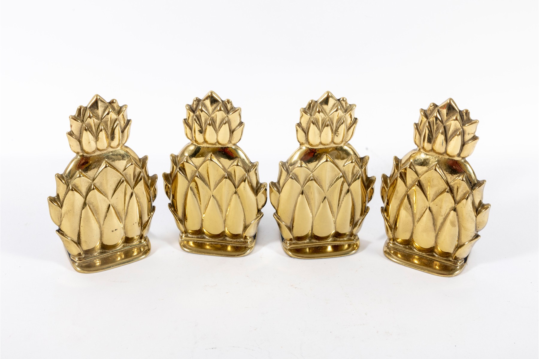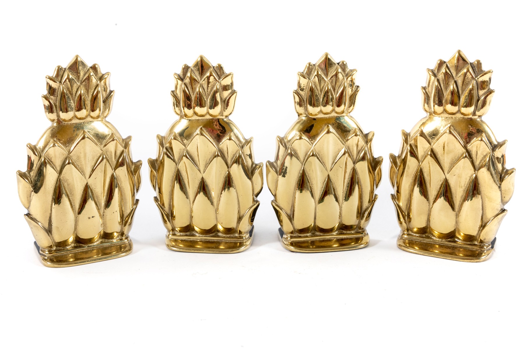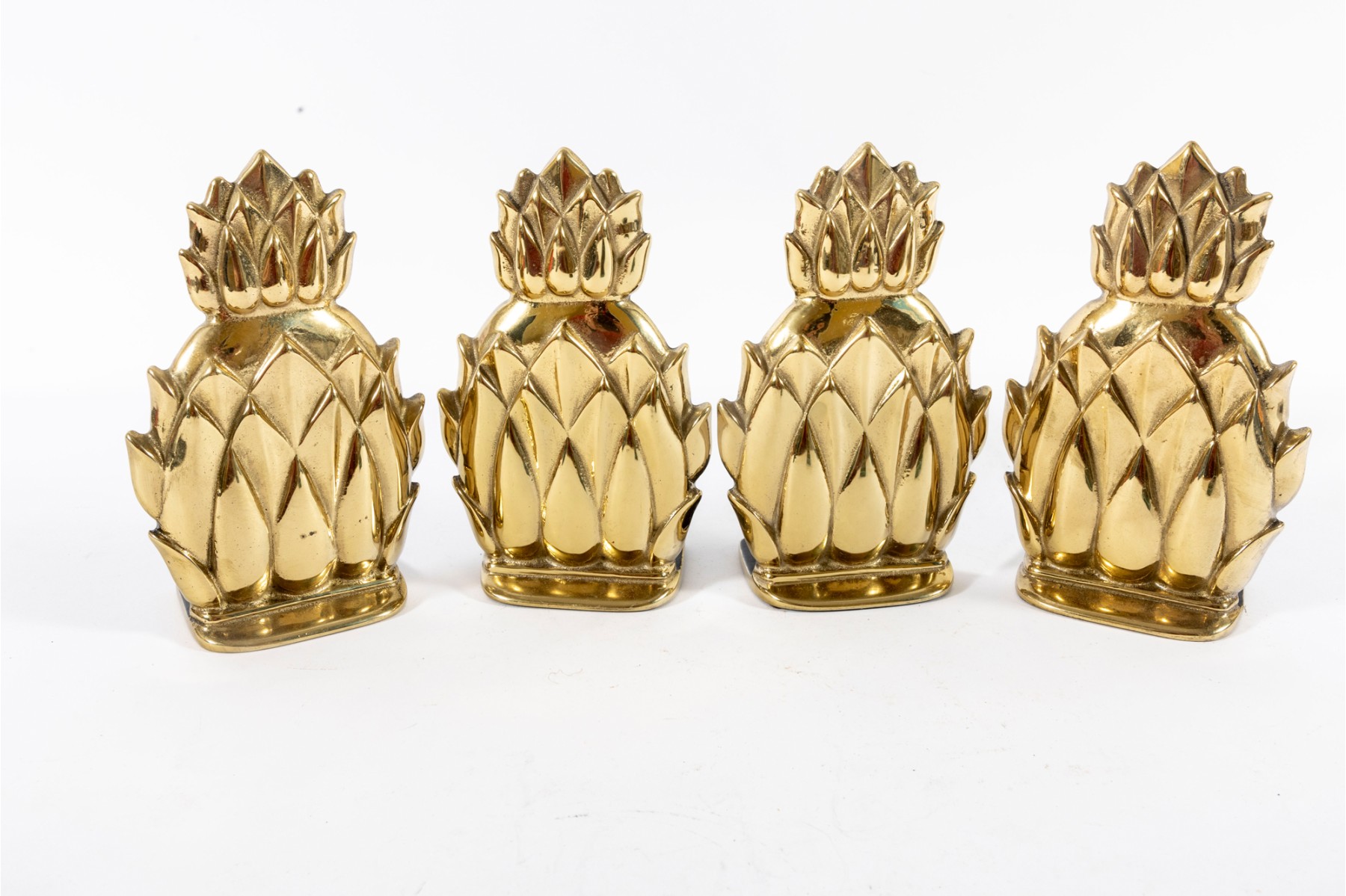 A set of four cast brass pineapple bookends by Virginia Metalcrafters, Newport. Each bookend weighs two pounds.