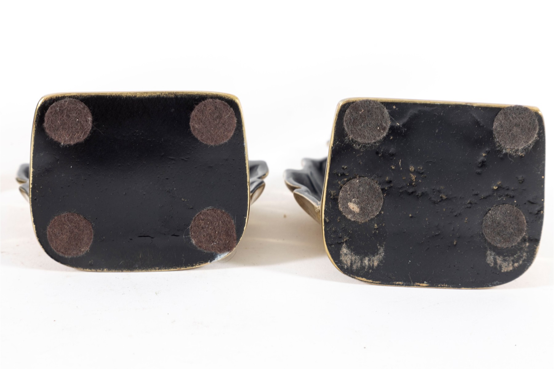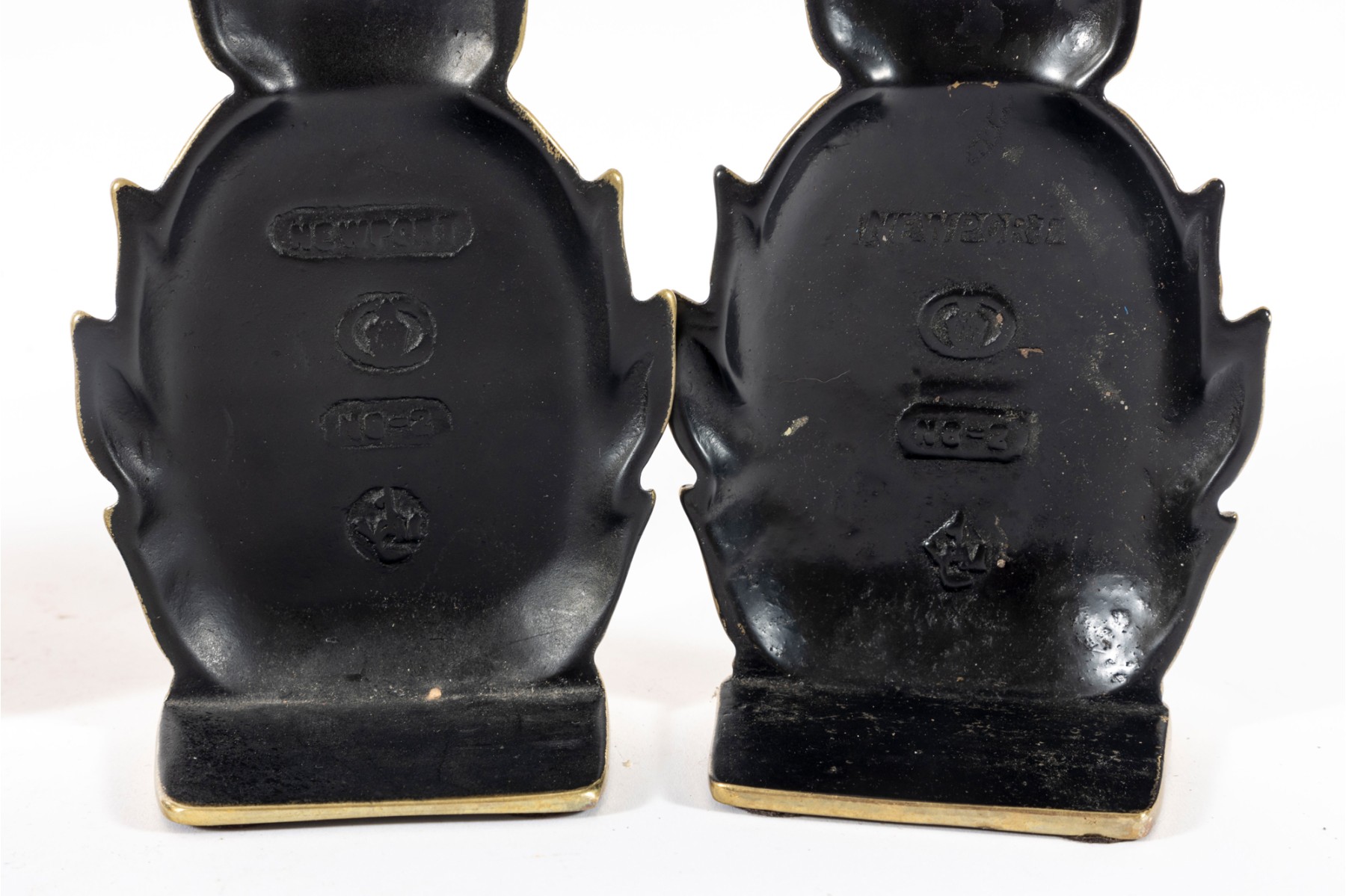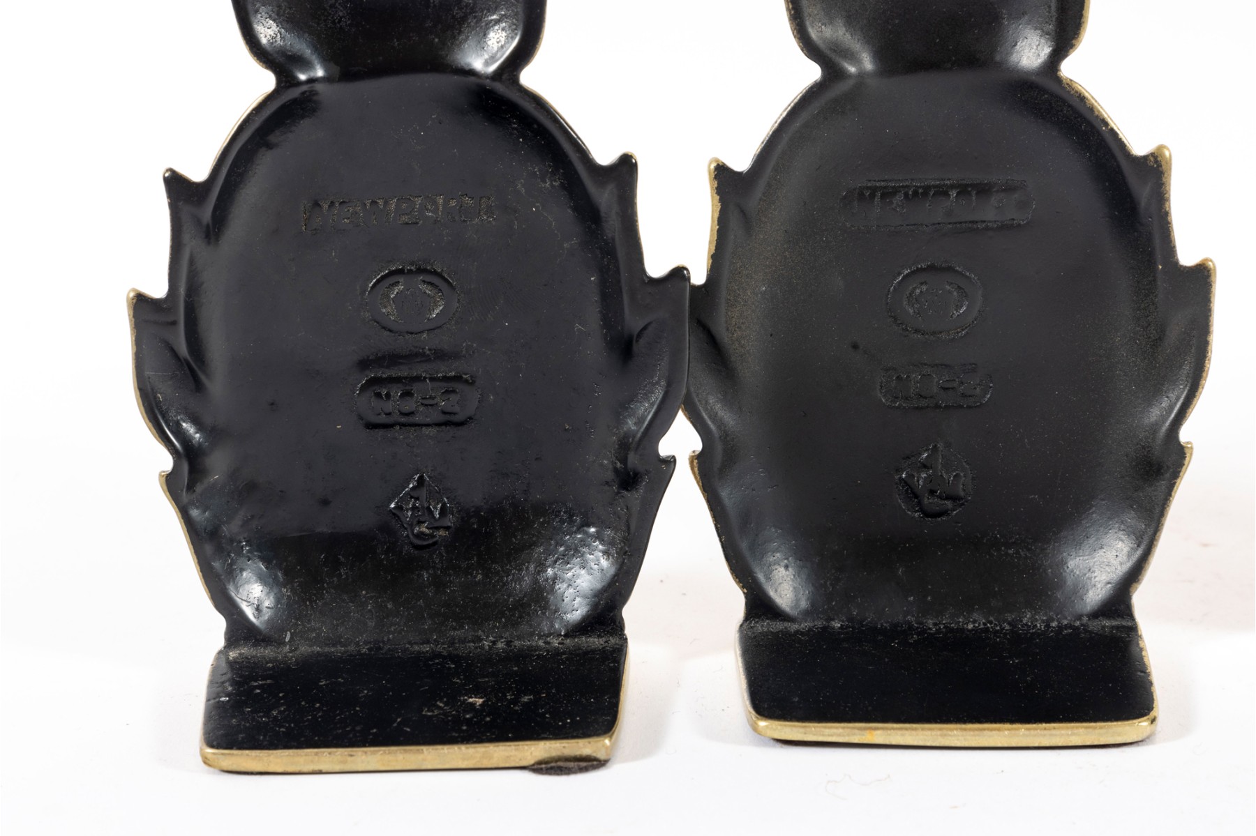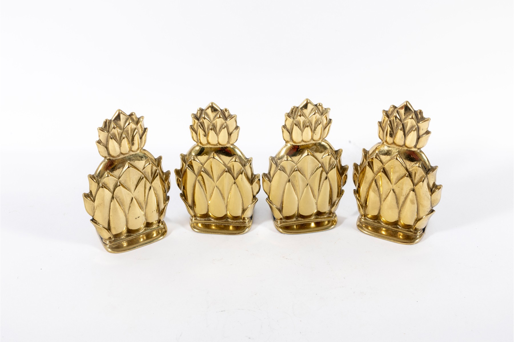A set of four cast brass pineapple bookends by Virginia Metalcrafters, Newport. Each bookend weighs two pounds.
