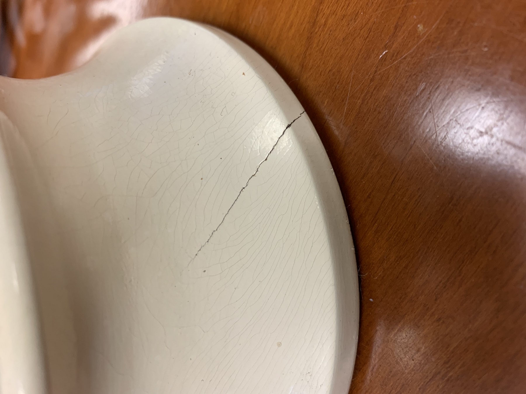 Displays well with wear commensurate with age, most notably crazing to the cream bases. One base has some checking or a crack. One lamp is a bit loose and could benefit from a tightening. The lamps do not include harps or shades. The working conditions have not been tested. Please review the pictures as they are a part of the condition report.