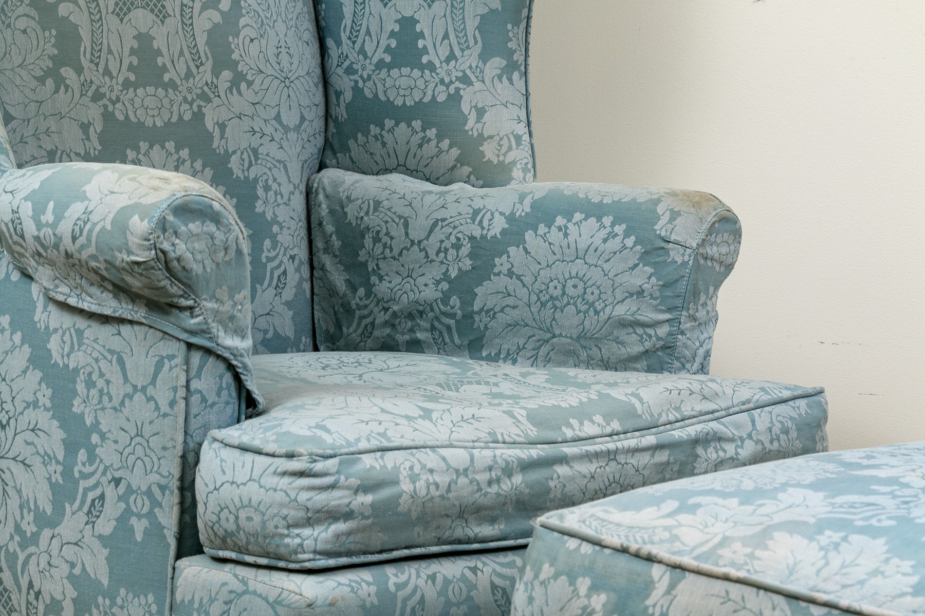 Vintage Wingback Chair With Ottoman Ottoman, Reupholstery Project #298552. Black Rock Galleries provides high end estate liquidation services through online estate auctions and a 50,000 sq ft designer showroom. estate liquidator, estate sale, online auction, antiques, fine art, liquidation, clean outs, auction, consignment, interior design, fine jewelry, collectibles, appraisals, estate appraisals, estate services, decor, furniture, furniture consignment, antique center, consignment shop. We offer appraisal services and specialize in fine art, jewelry, antiques and decorative arts. Sell with us. Black Rock Galleries is the tri-state's largest estate liquidator serving New England and the greater New York City area. We are the trusted source for expert appraisals, auction services, estate sales, and consignments. Black Rock Galleries is the east coast's largest and most trusted estate liquidator, with locations in Connecticut, greater Boston, MA and Raleigh, NC, Fairfield, Southport, Apex, TX. We are the best source for expert appraisals, auction services, estate sales and consignments. We have served thousands of families and estates with compassion, professionalism and expertise. BRG works with attorneys, executors, realtors and families to bring the greatest return on personal and estate property in the current market. Our unique combination of services make us the easy choice to get the job done in a timely and stress-free manner. We are with you from the initial consultation to the final clean out. Our house-built online auction software platform offers clients a dynamic approach to liquidating their personal property. This venue is most successful in bringing the best return with the least amount of disruption for our clients. See our services page for a complete description of this offering. Vintage Wingback Chair With Ottoman Ottoman, Reupholstery Project #298552