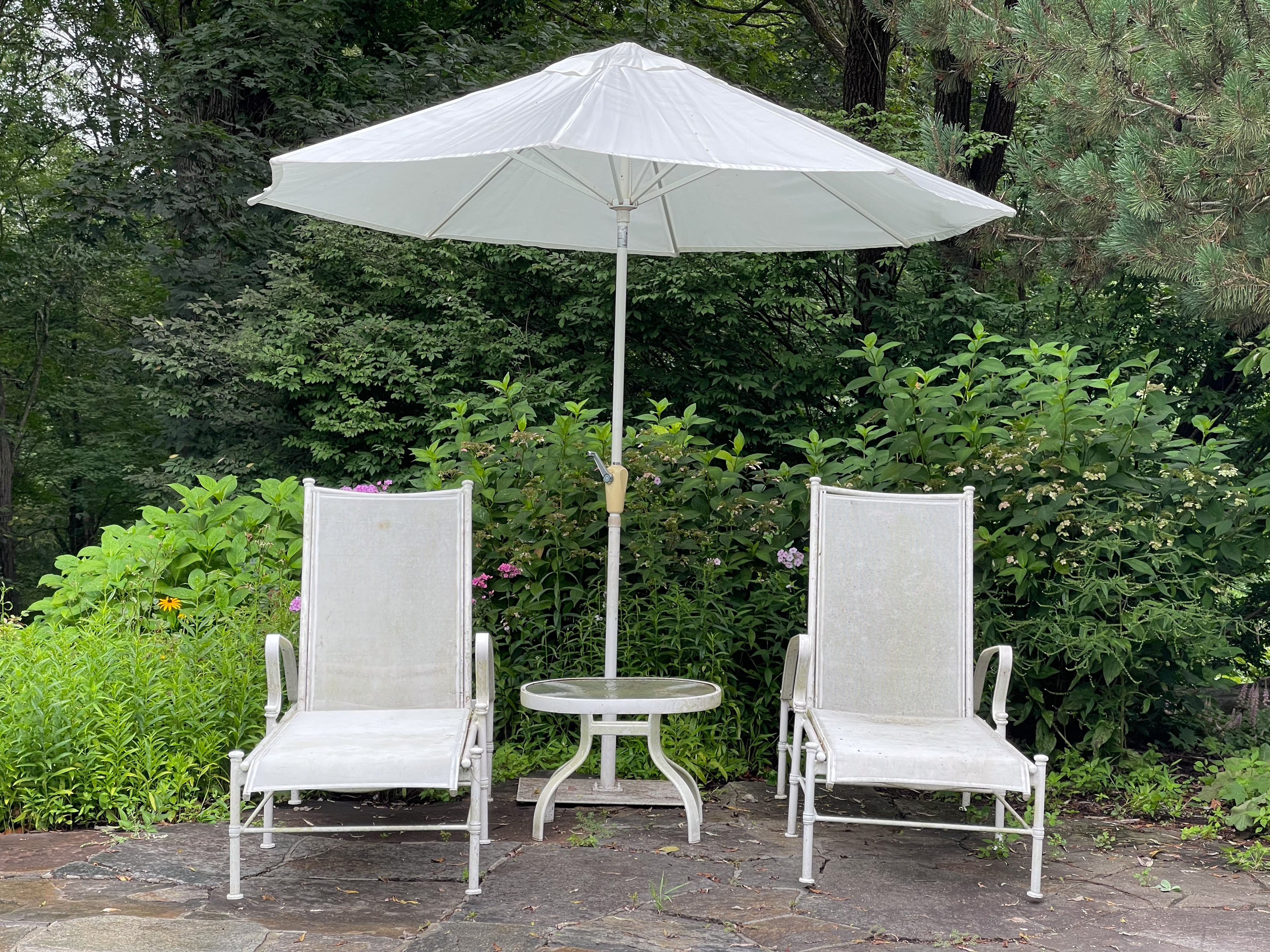 - A simple iron umbrella stand complete the set (12 3/4" H x 24" x 24")