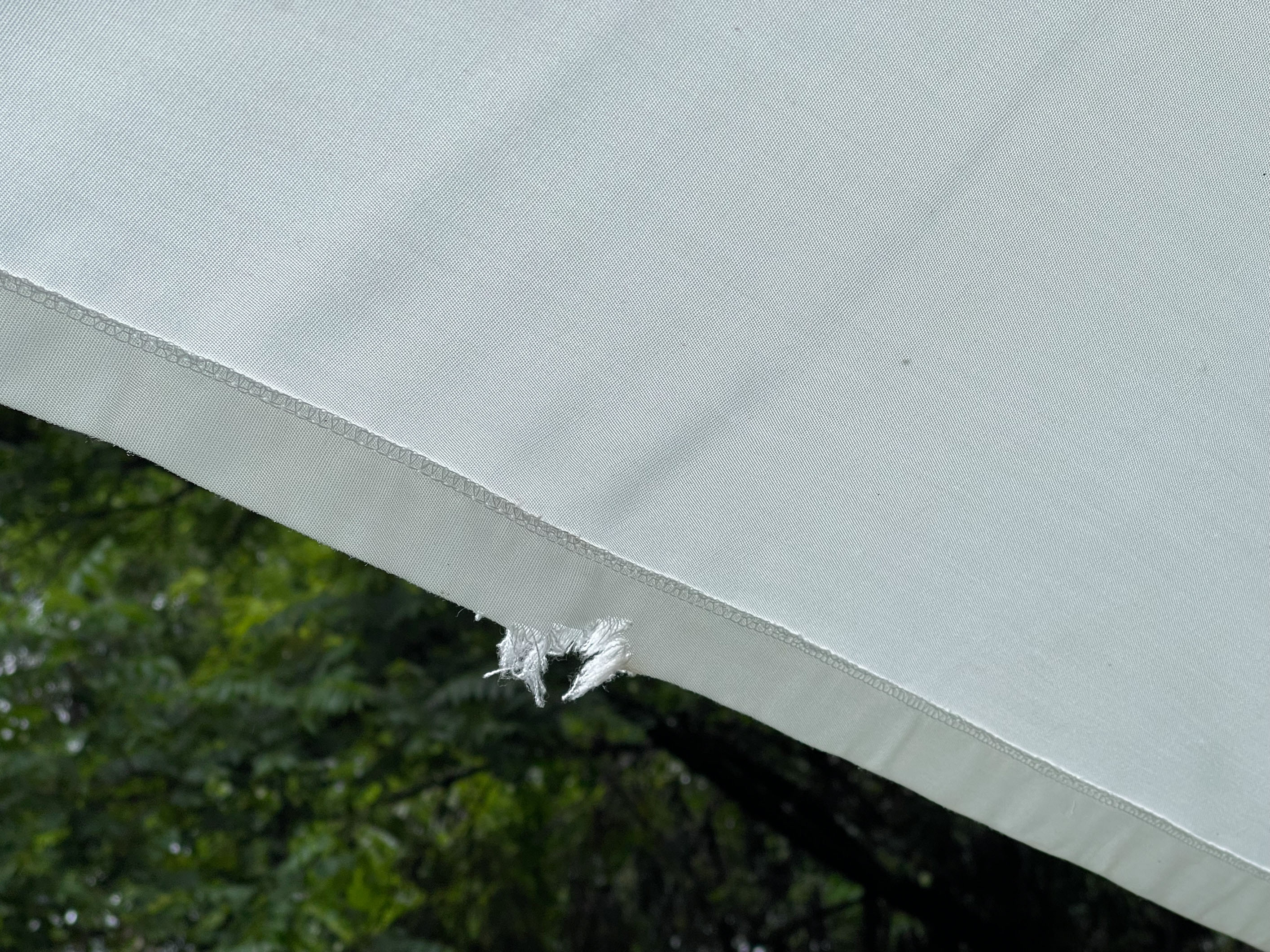 Weathered, exposed; umbrella fabric frayed at edges. Please review the photos as they are part of the condition report.