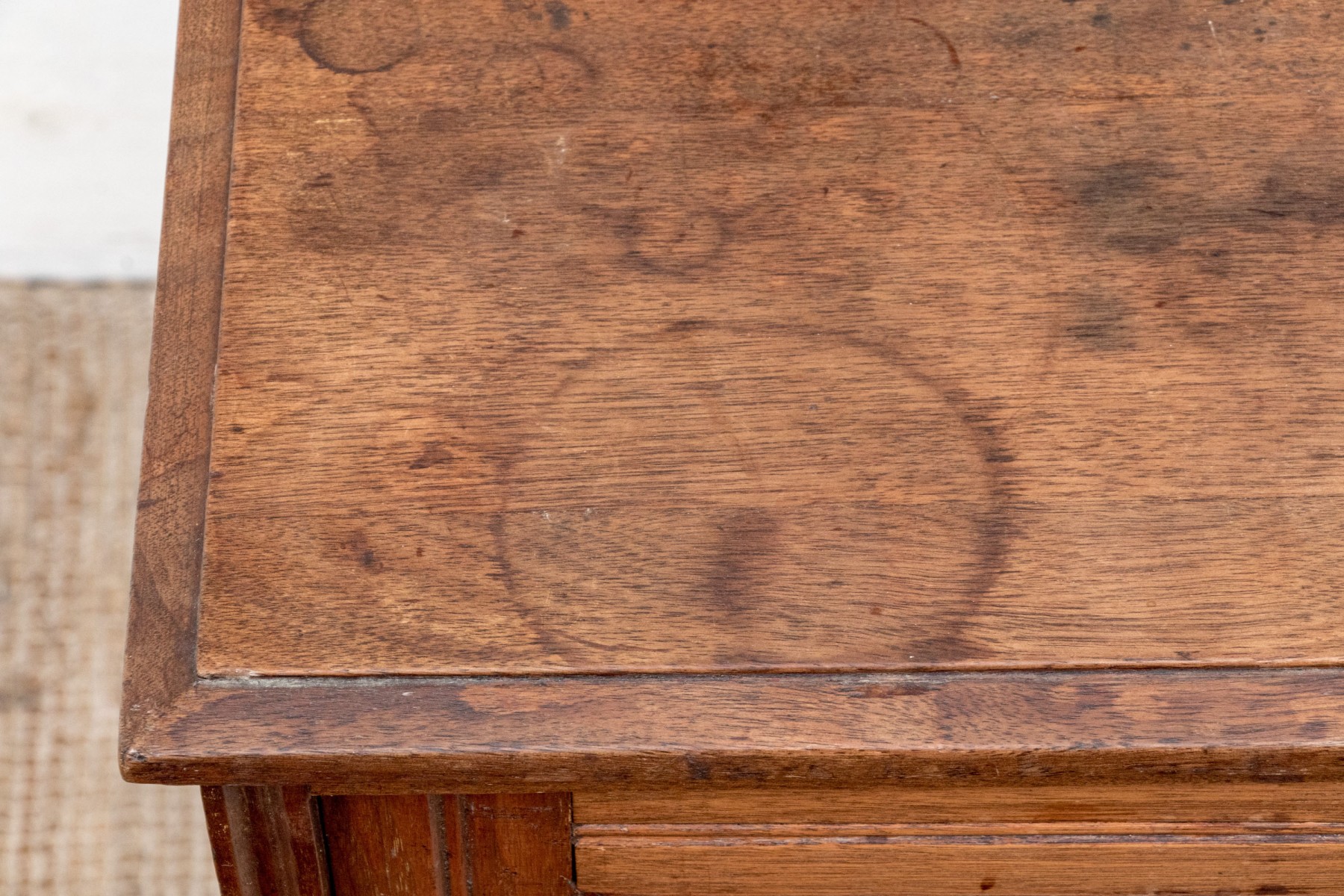 Stains and water marks with wear to the finish and nics to the wooden frame. A fresh coat of paint or finish would help make sparkle. Please review the photos as they are part of the condition report.