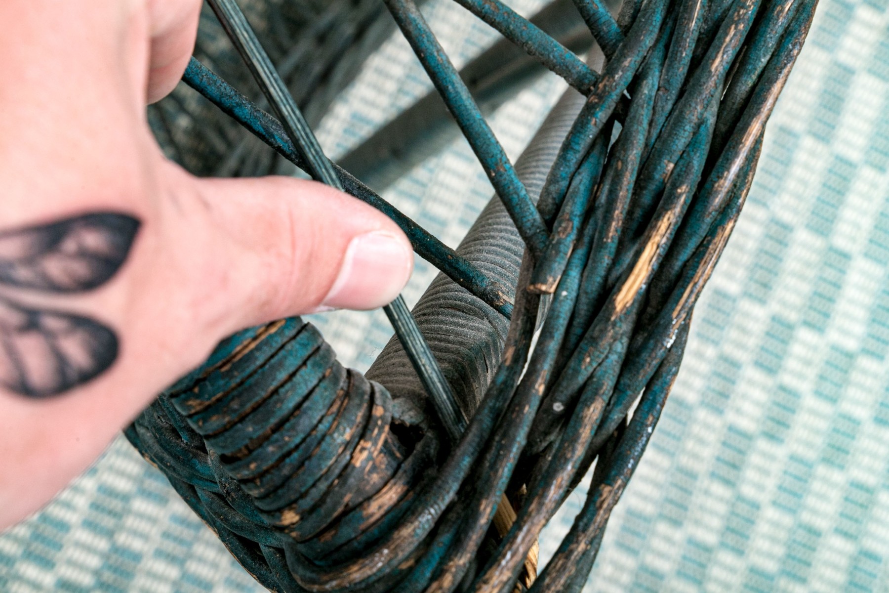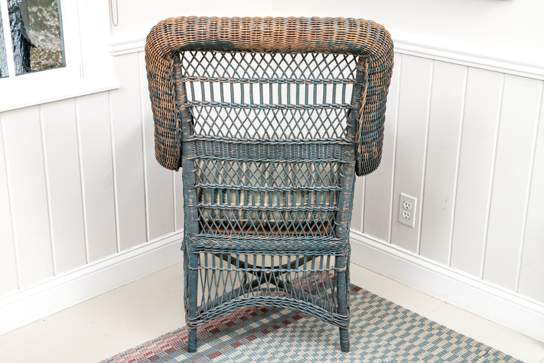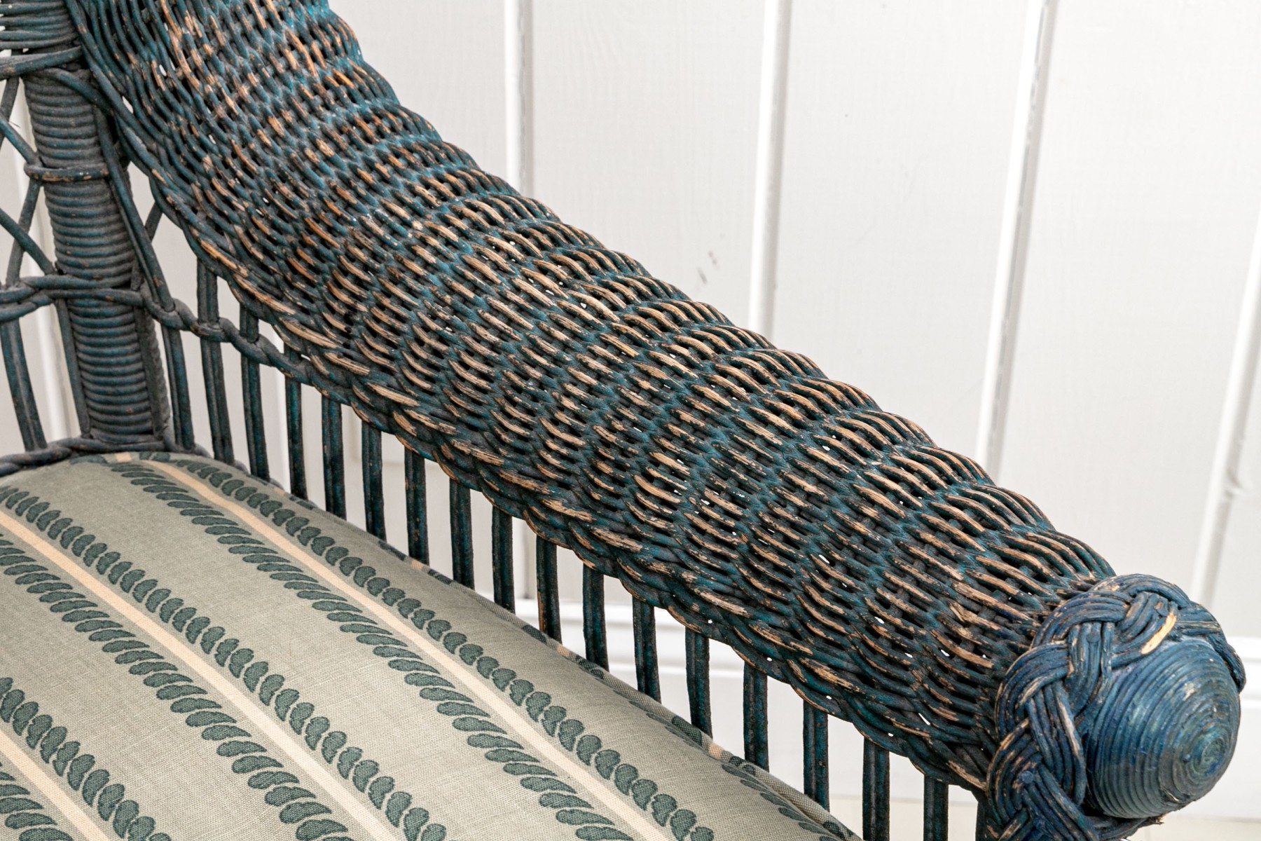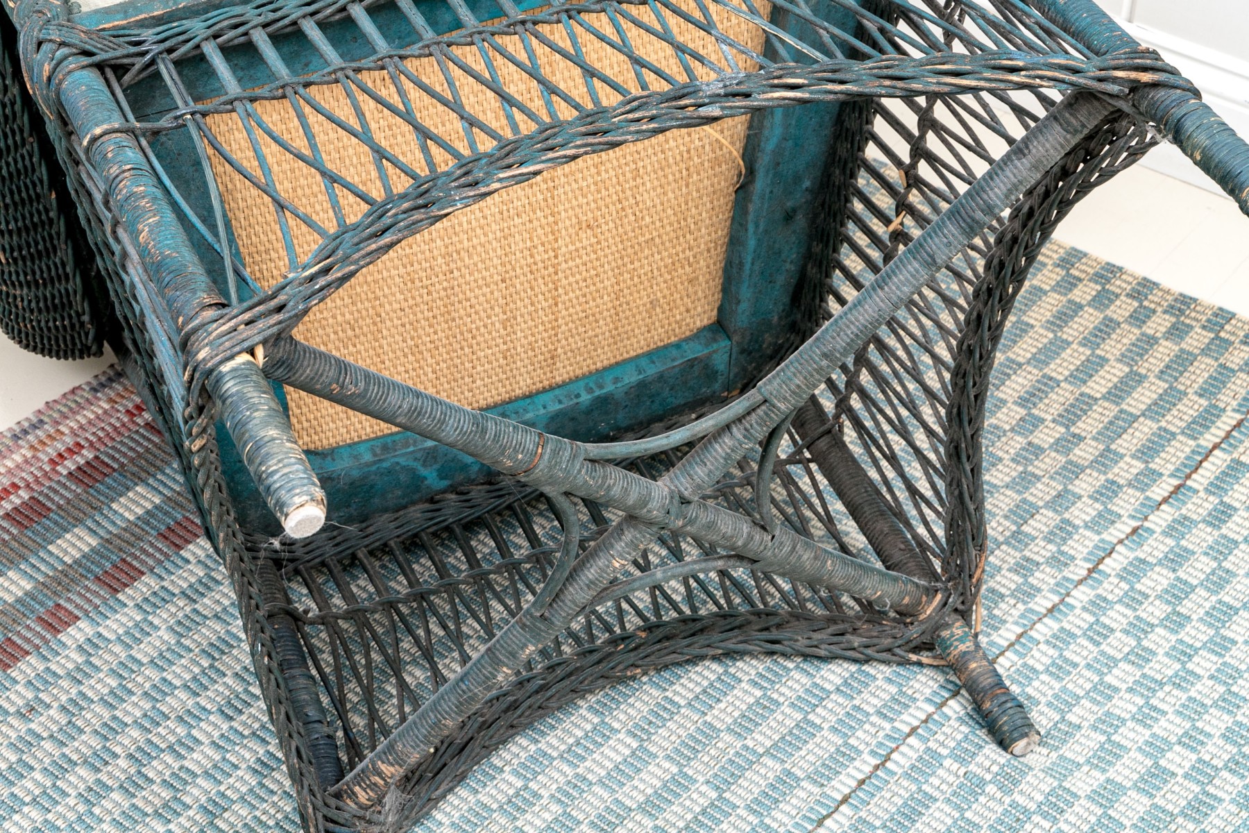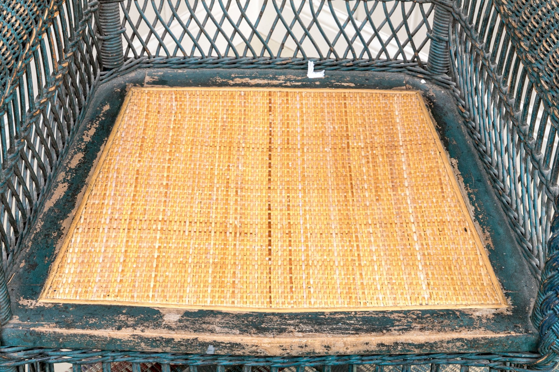 There are nails to the left handle that have pulled out with some losses to the wicker and its finish. Despite the chair presents well.