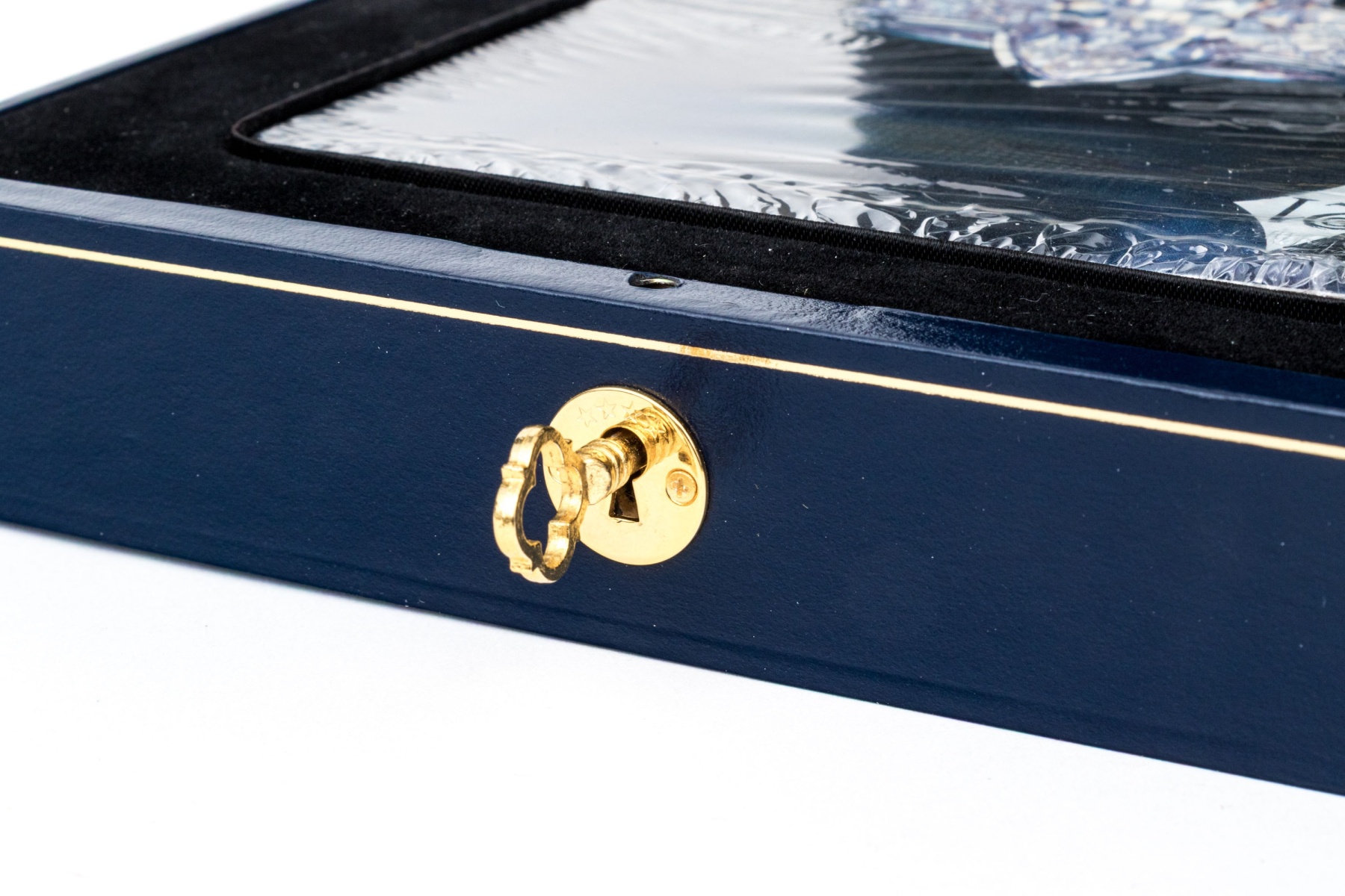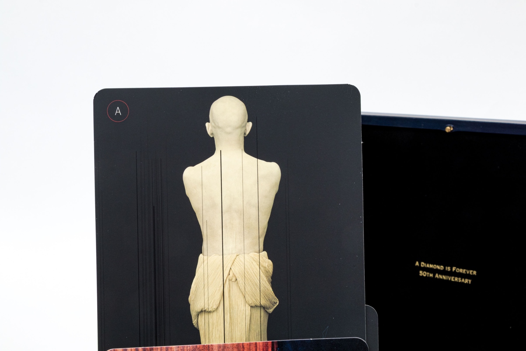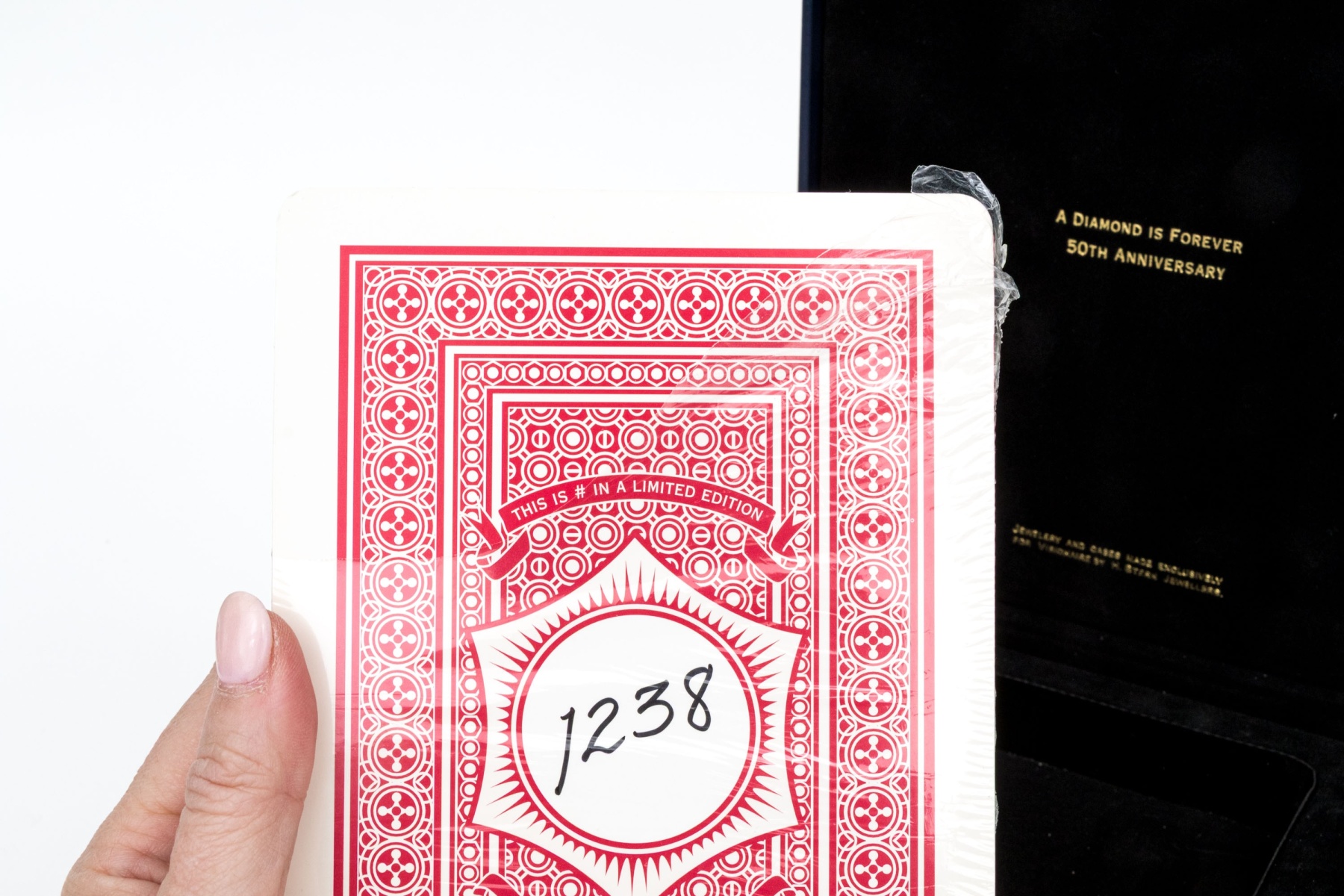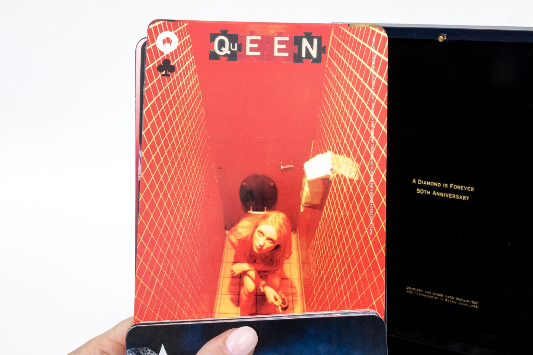 The set features an oversized deck of cards housed in a lockable jewelry box/presentation case, which includes a key. and highlights include contributions from various renowned artists and designers, including Karl Lagerfeld, Mario Testino, and David LaChapelle. This was produced as a limited edition of 3,000 copies worldwide, this is number 1238