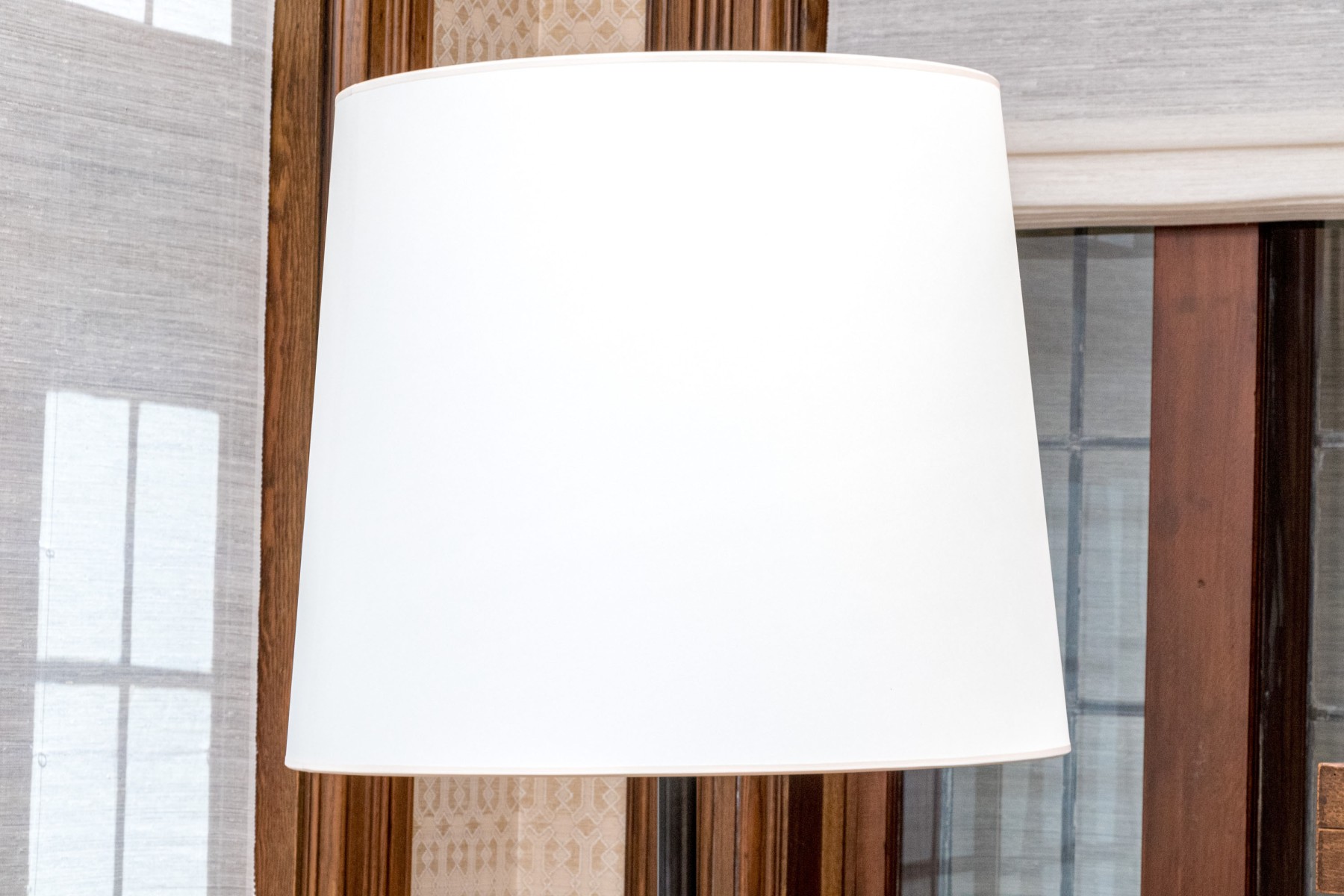 Large natural paper shade. Great style, two bulbs for quality lighting. Very good condition.