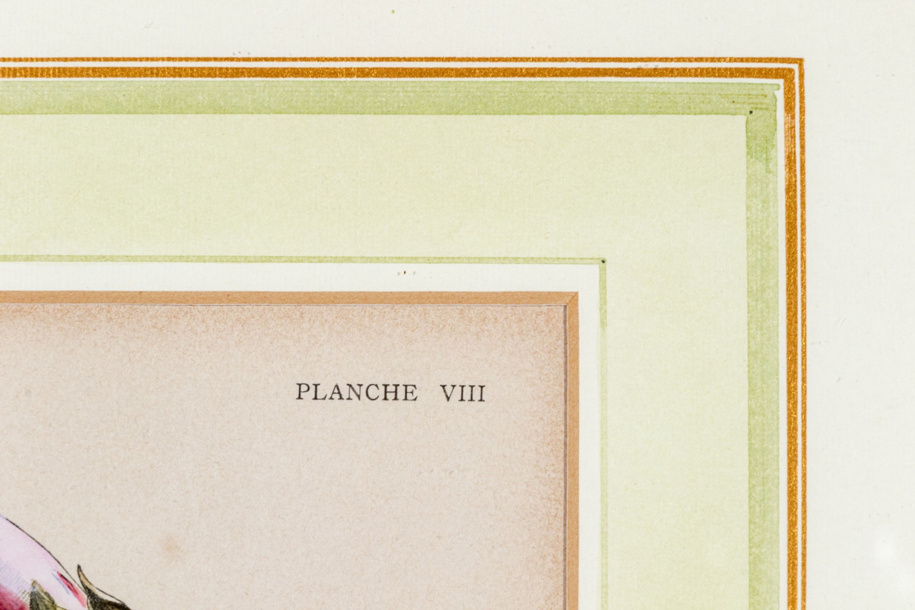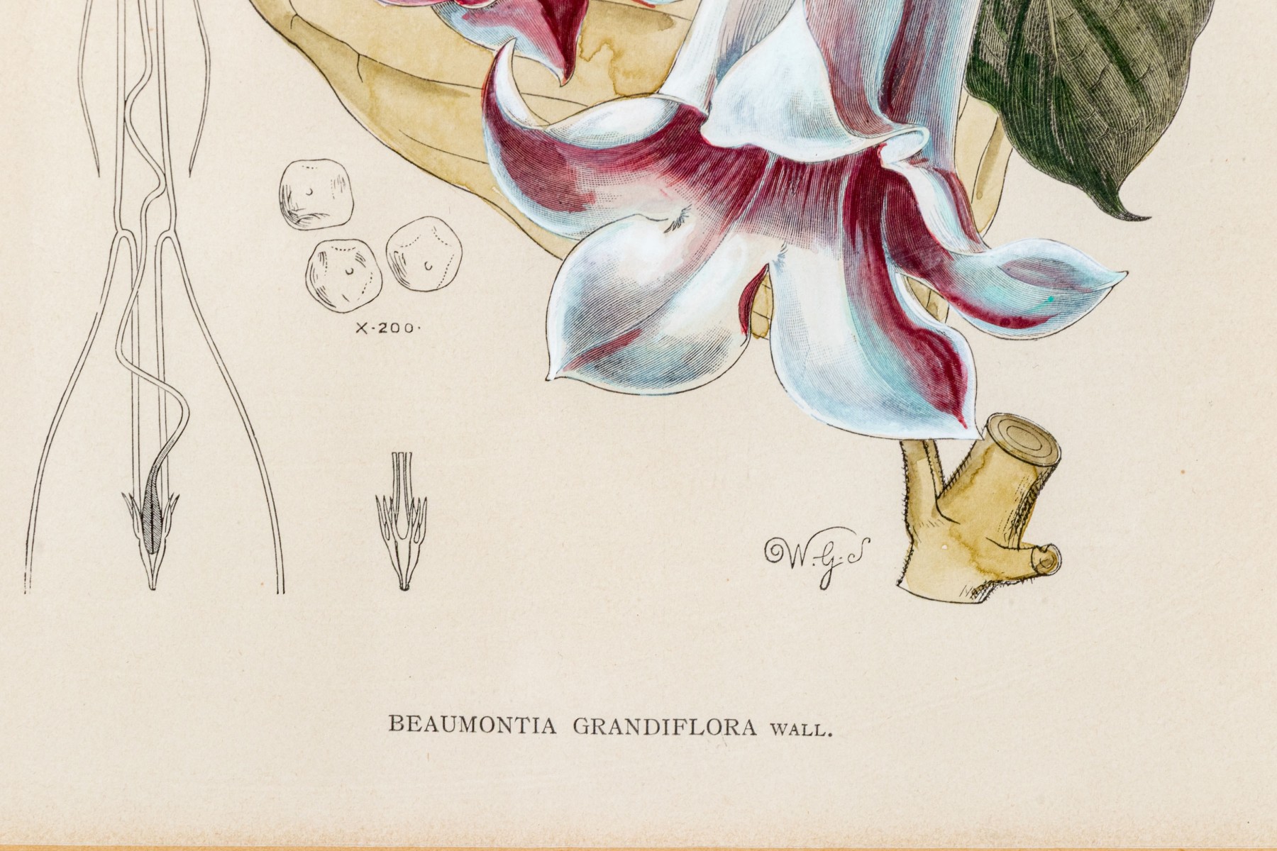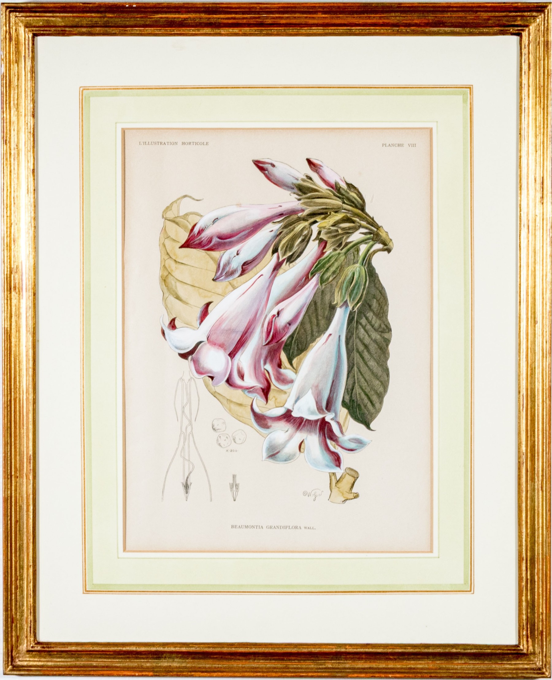 Label on verso. Illustrated book plate for a French horticultural book. White and purple Beaumontia Grandiflora wall. Presented finely matted in a gilt frame with glass.