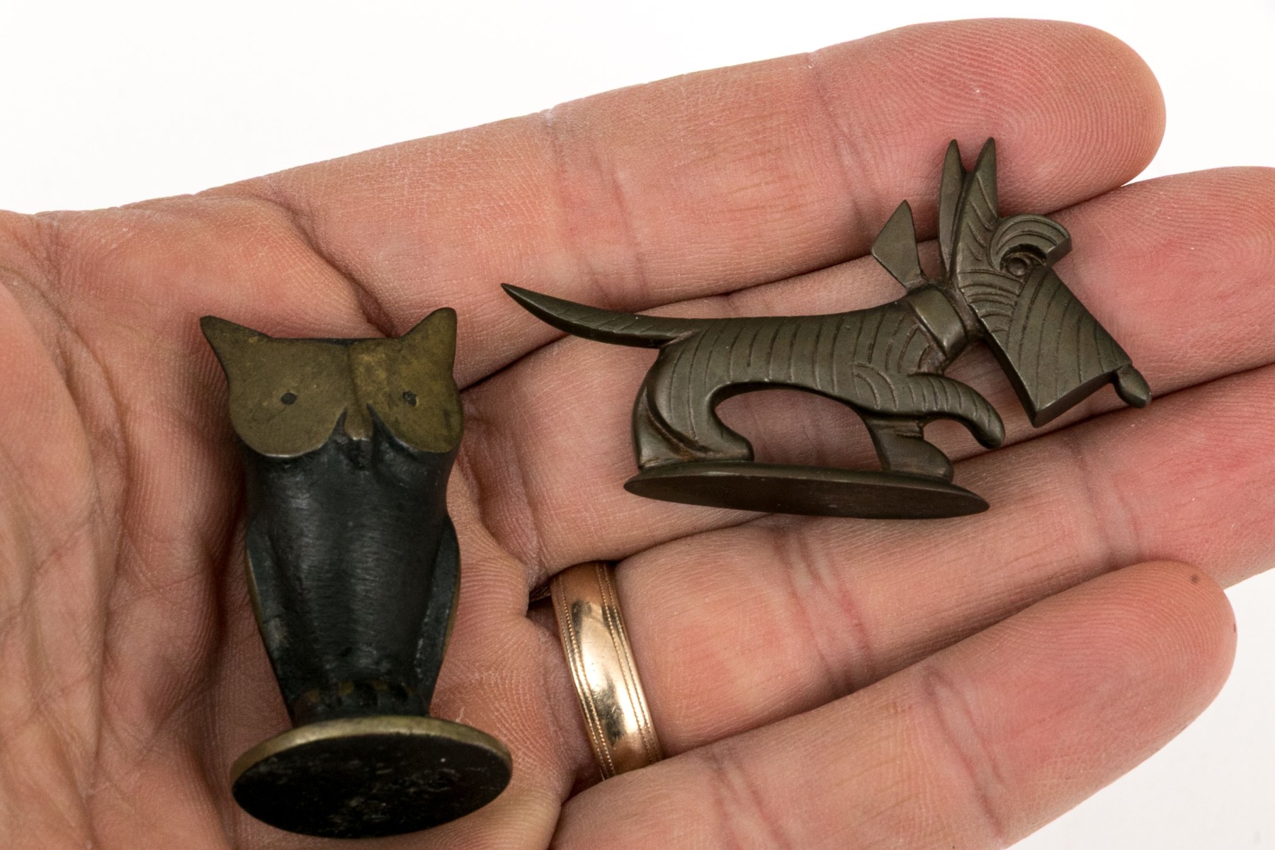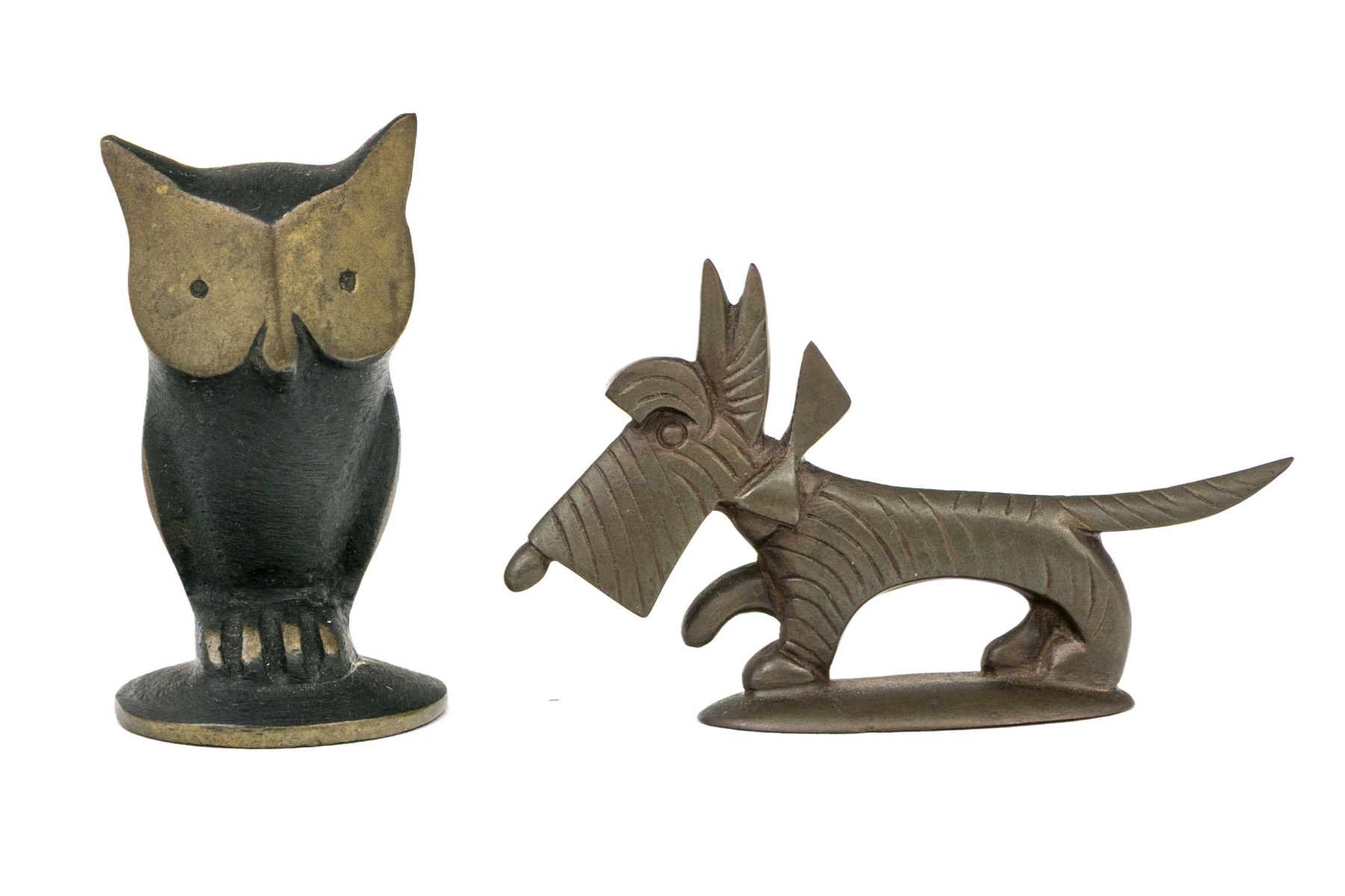 A lovely duo of diminutive Austrian bronzes including an owl and a schnauzer dog. Both marked underfoot.