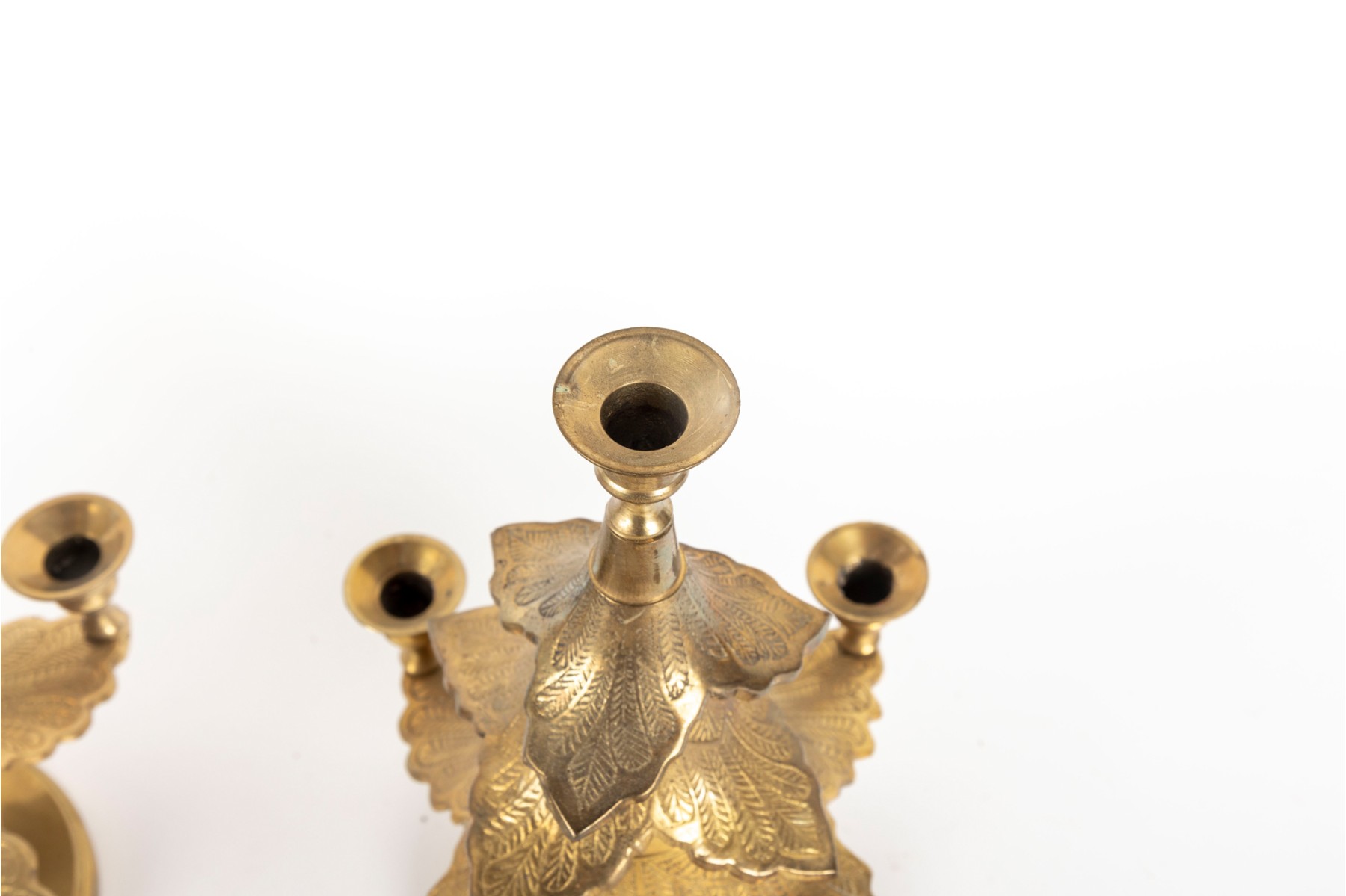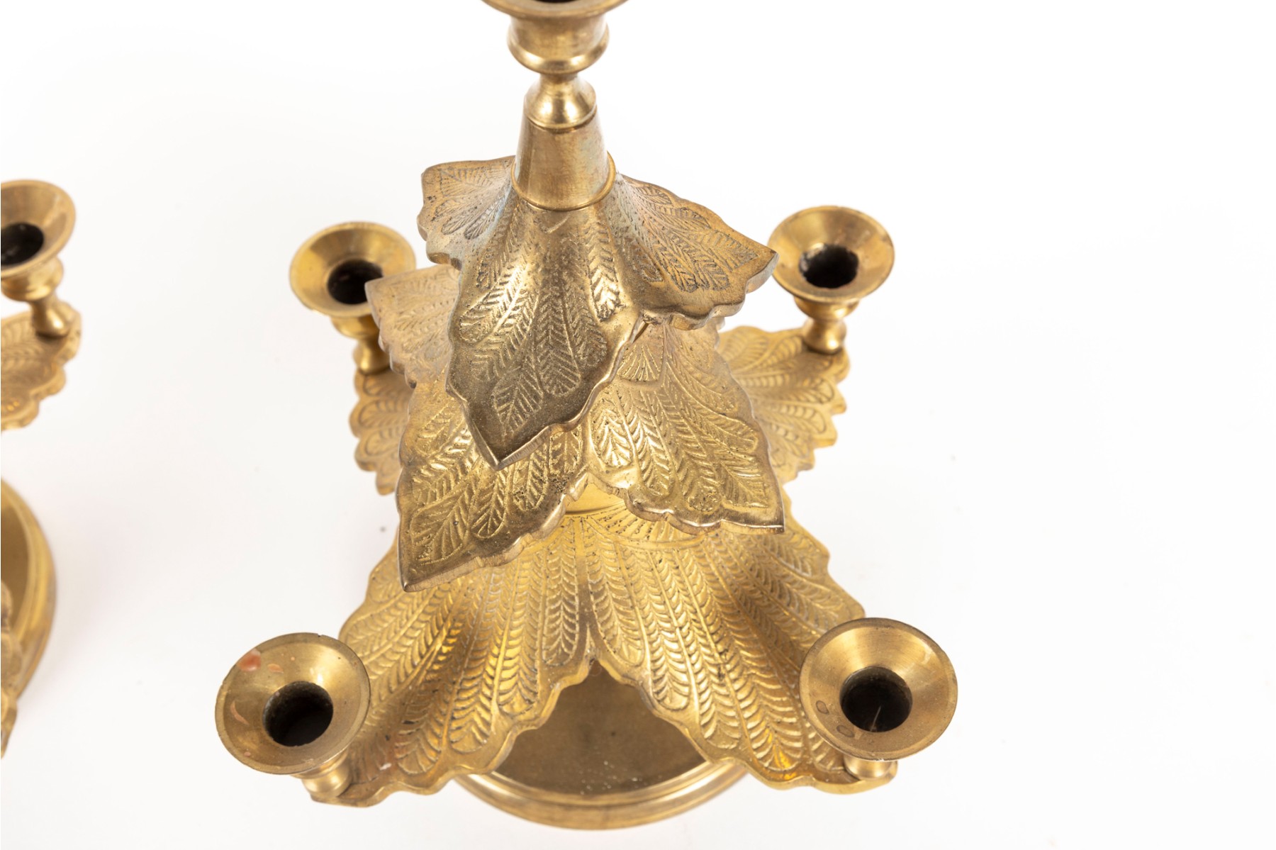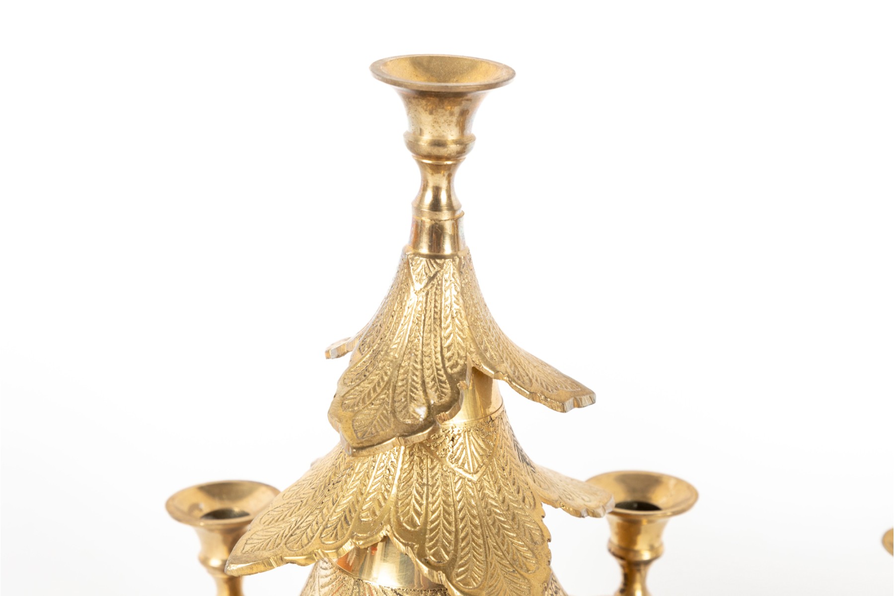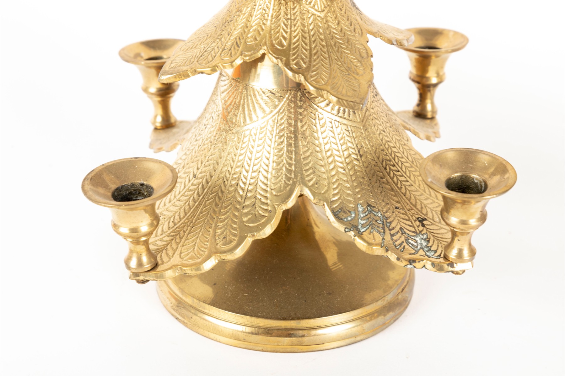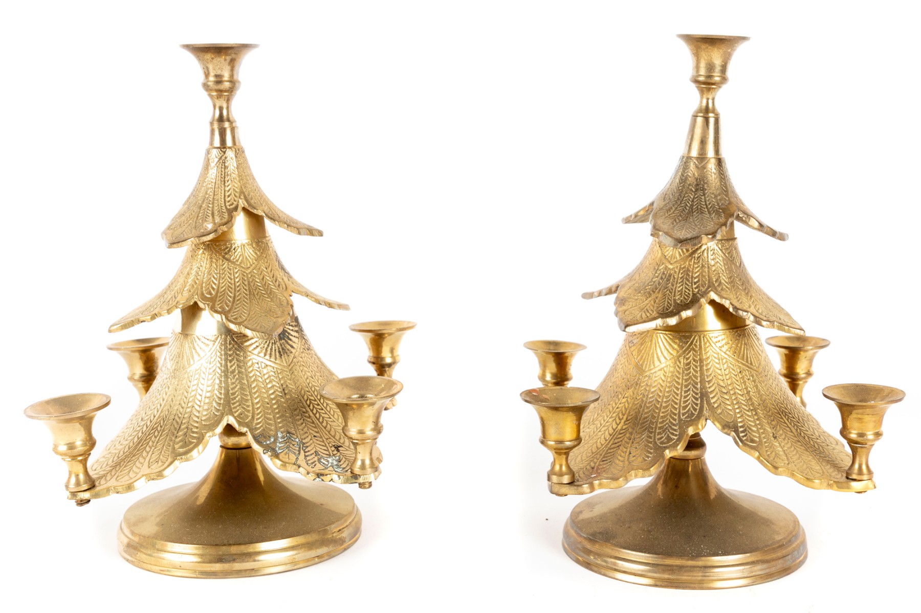 Two cast-brass Christmas tree candle holders produced by Waccamaw Brass Works, India.