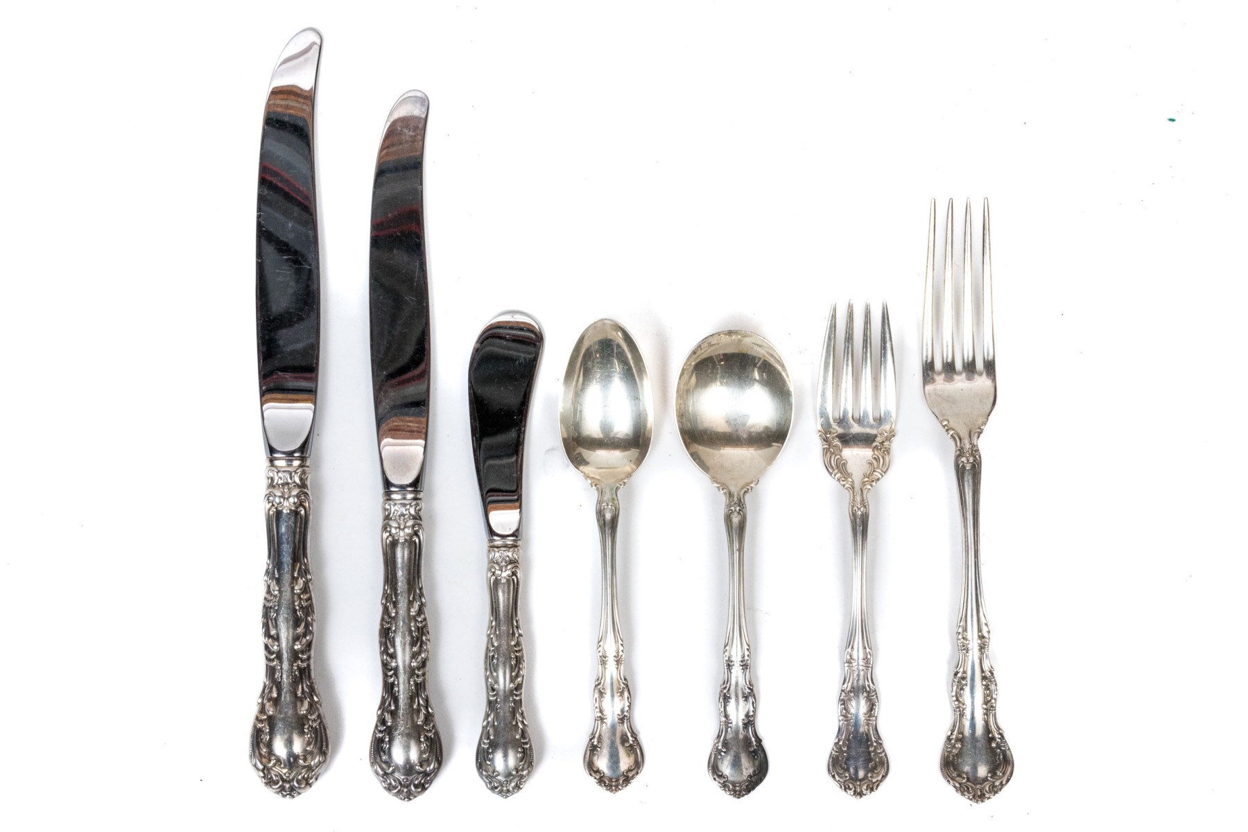 Wallace Sterling Silver Partial Flatware Service, "Irving" Pattern, Cased #314959. Black Rock Galleries provides high end estate liquidation services through online estate auctions and a 50,000 sq ft designer showroom. estate liquidator, estate sale, online auction, antiques, fine art, liquidation, clean outs, auction, consignment, interior design, fine jewelry, collectibles, appraisals, estate appraisals, estate services, decor, furniture, furniture consignment, antique center, consignment shop. We offer appraisal services and specialize in fine art, jewelry, antiques and decorative arts. Sell with us. Black Rock Galleries is the tri-state's largest estate liquidator serving New England and the greater New York City area. We are the trusted source for expert appraisals, auction services, estate sales, and consignments. Black Rock Galleries is the east coast's largest and most trusted estate liquidator, with locations in Connecticut, greater Boston, MA and Raleigh, NC, Fairfield, Southport, Apex, TX. We are the best source for expert appraisals, auction services, estate sales and consignments. We have served thousands of families and estates with compassion, professionalism and expertise. BRG works with attorneys, executors, realtors and families to bring the greatest return on personal and estate property in the current market. Our unique combination of services make us the easy choice to get the job done in a timely and stress-free manner. We are with you from the initial consultation to the final clean out. Our house-built online auction software platform offers clients a dynamic approach to liquidating their personal property. This venue is most successful in bringing the best return with the least amount of disruption for our clients. See our services page for a complete description of this offering. Wallace Sterling Silver Partial Flatware Service, "Irving" Pattern, Cased #314959