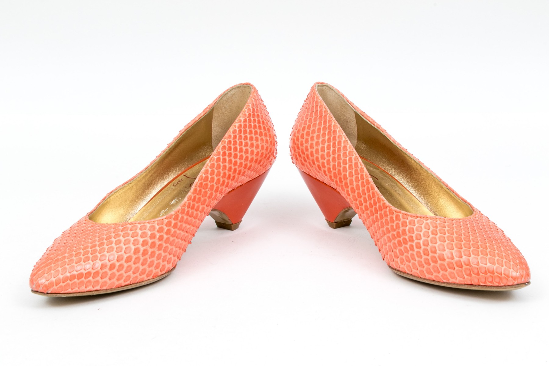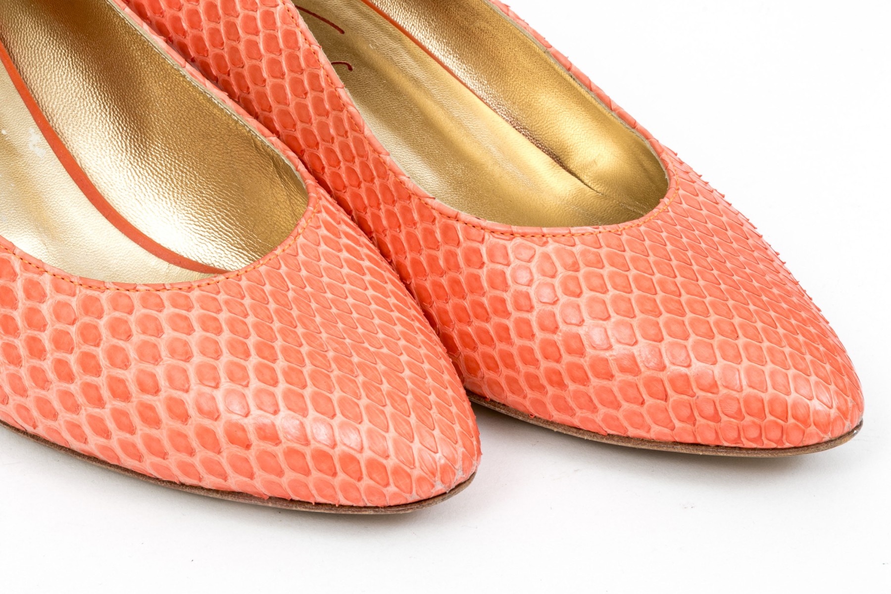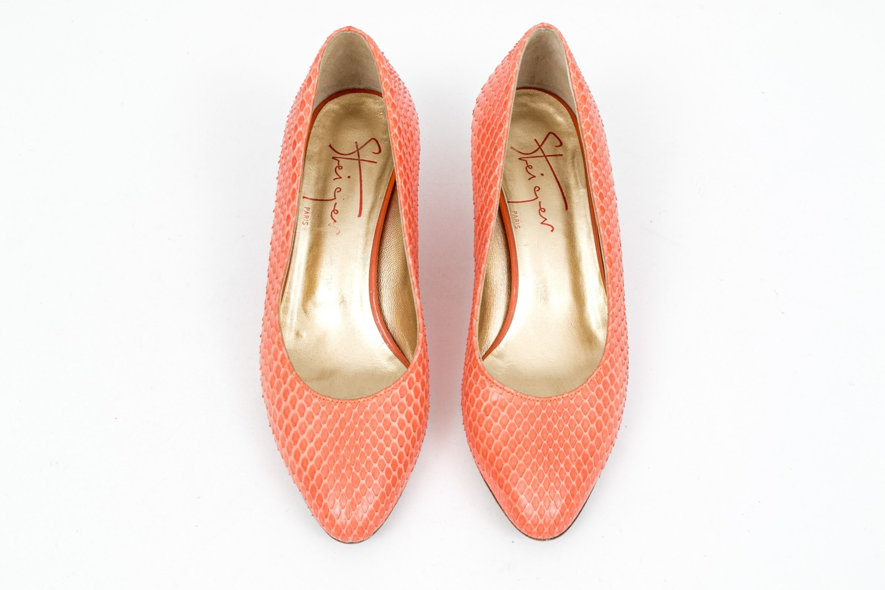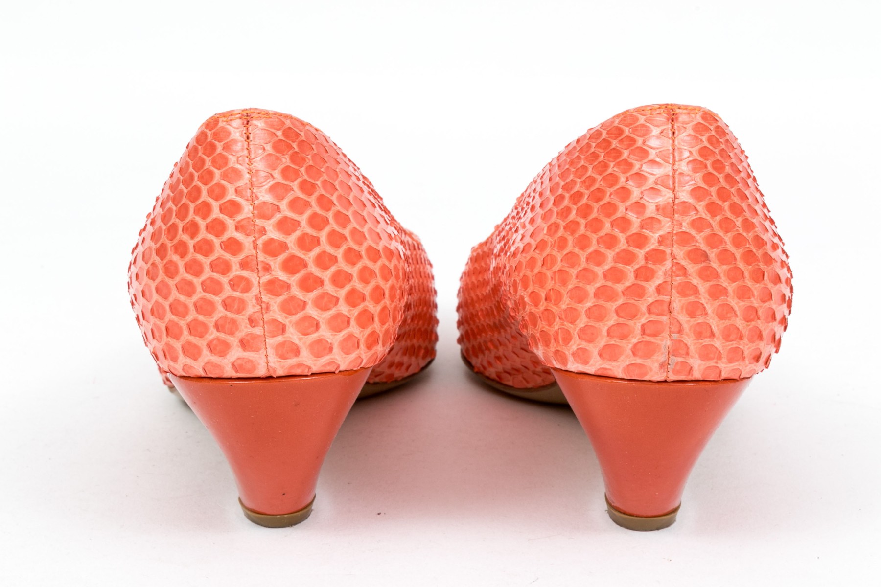 Walter Steiger fun coral snakeskin and orange heeled pumps, size 36 1/2