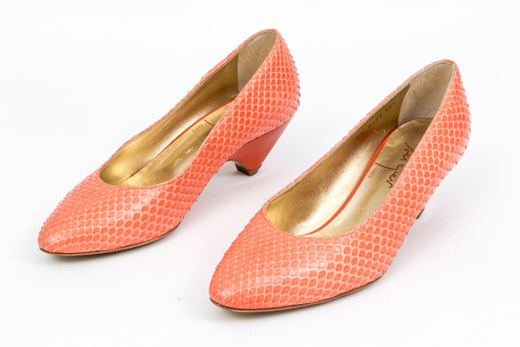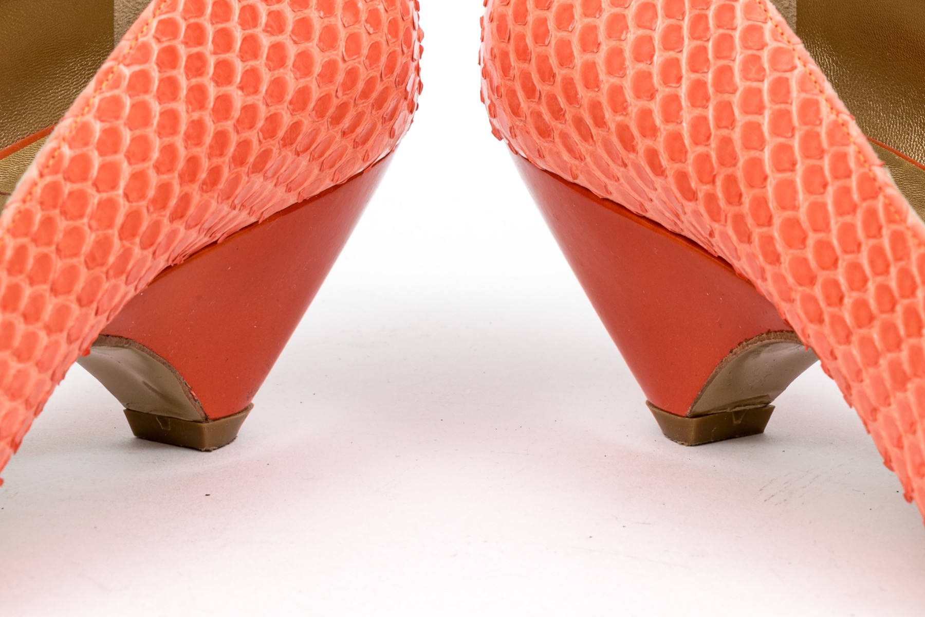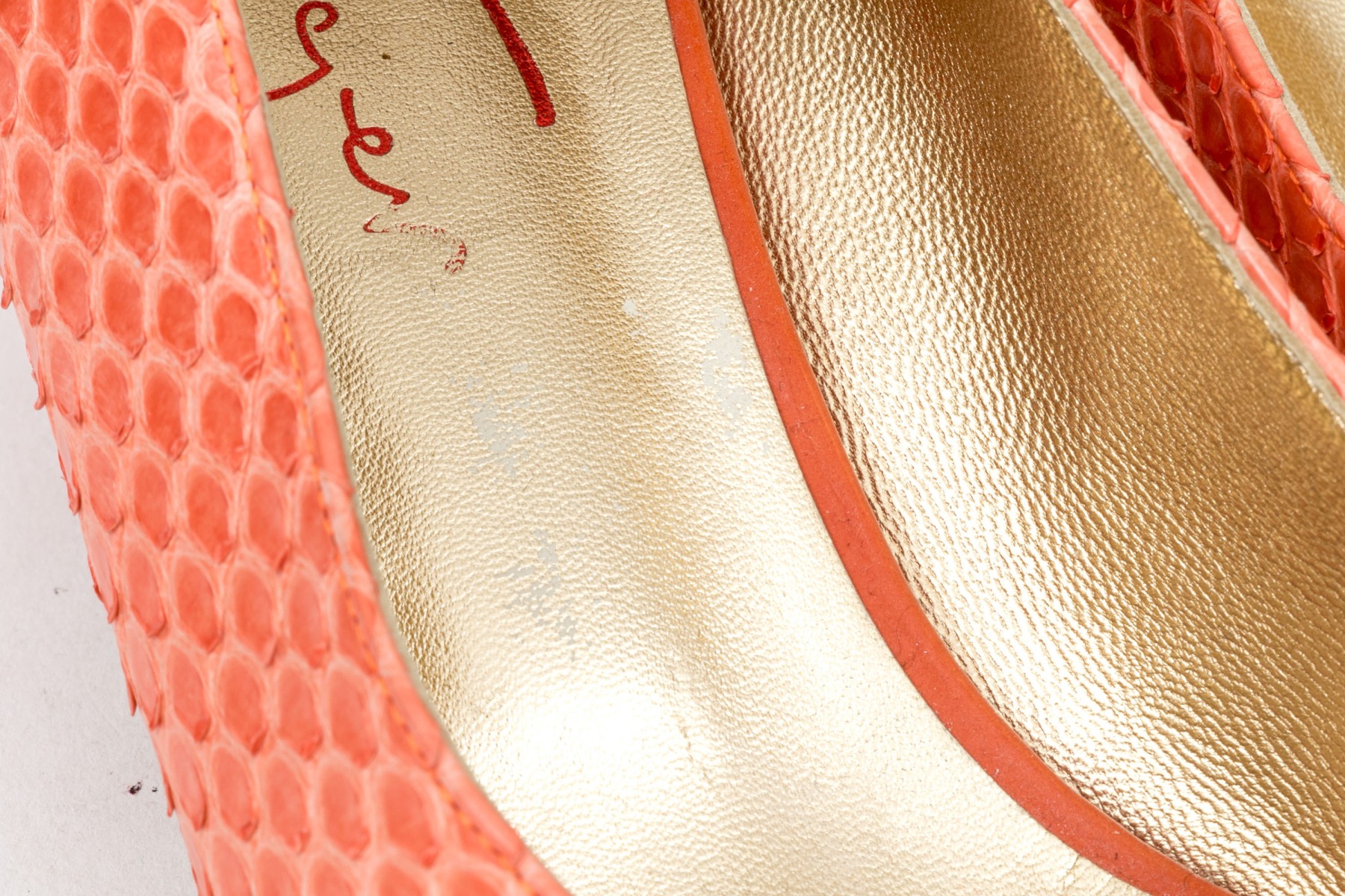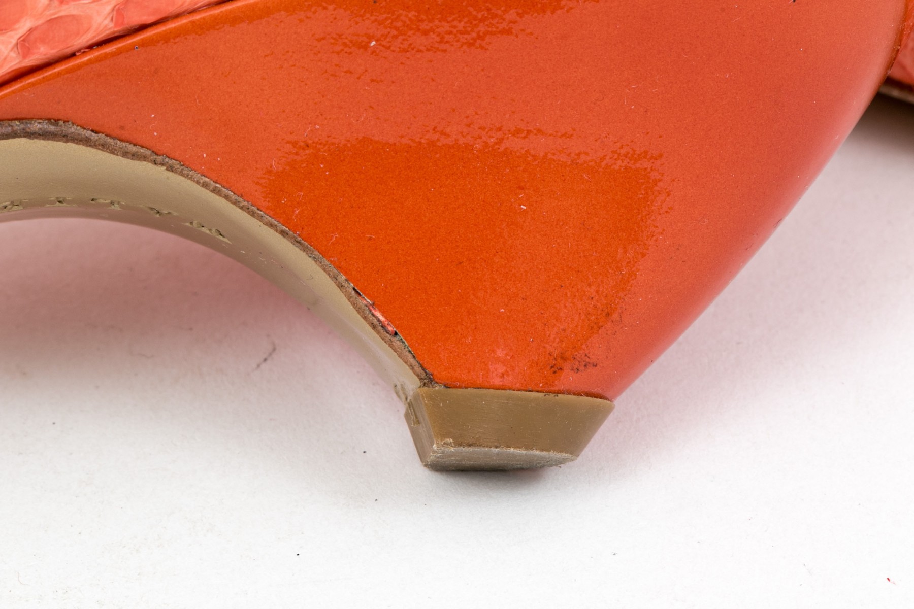 Walter Steiger fun coral snakeskin and orange heeled pumps, size 36 1/2