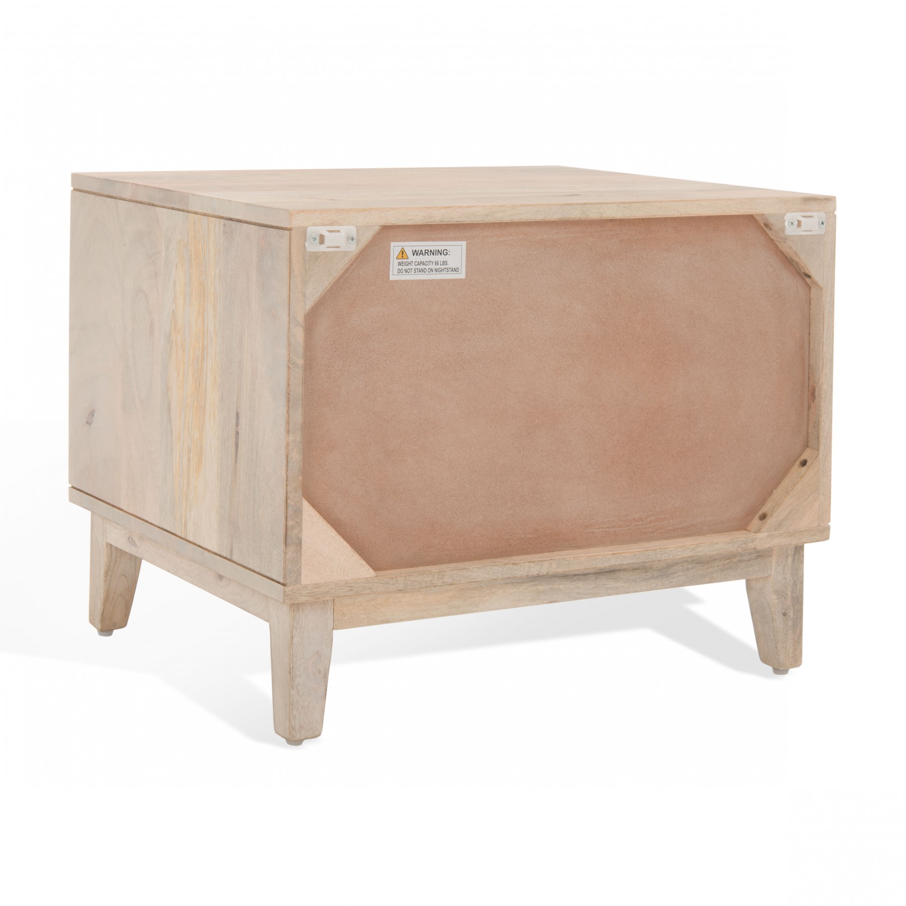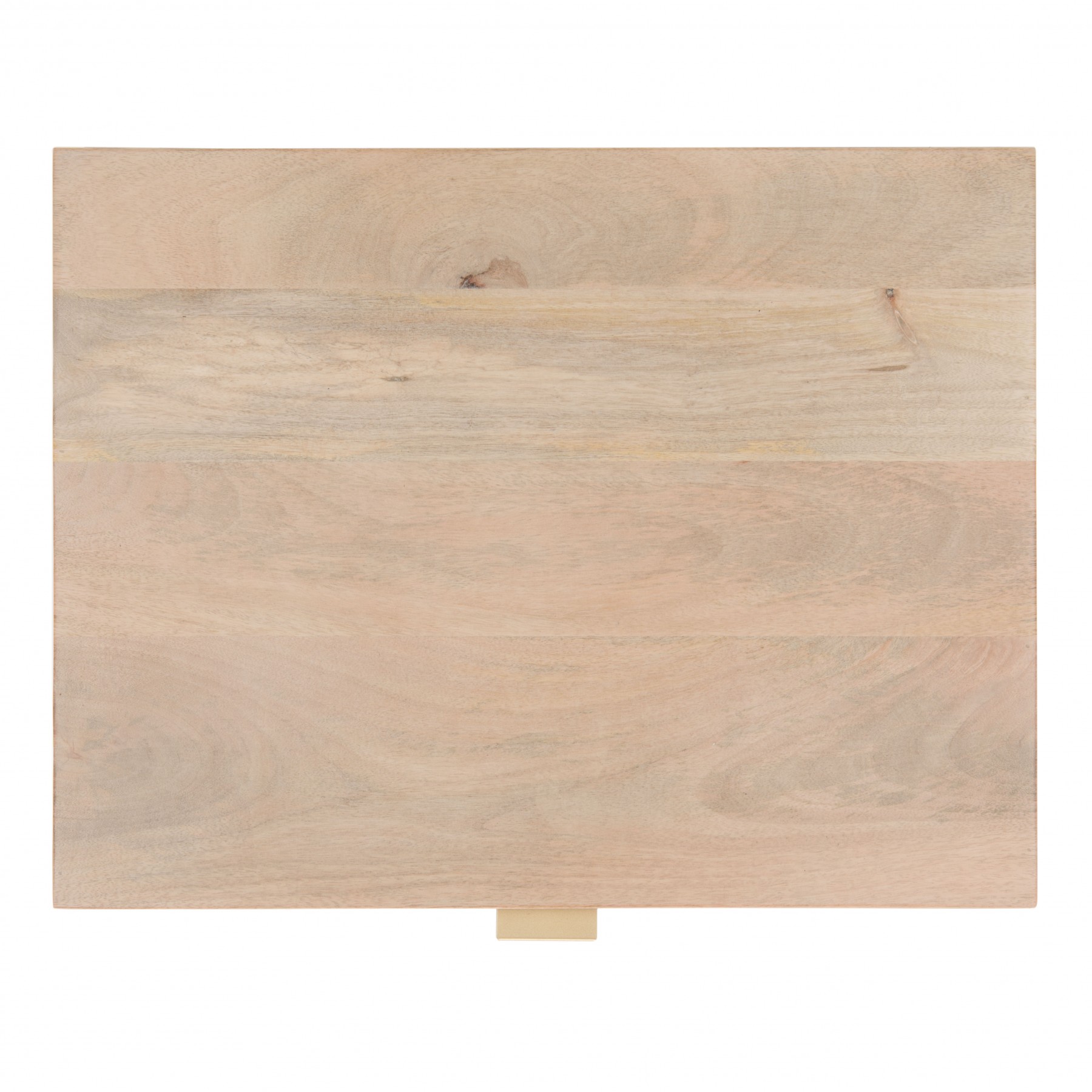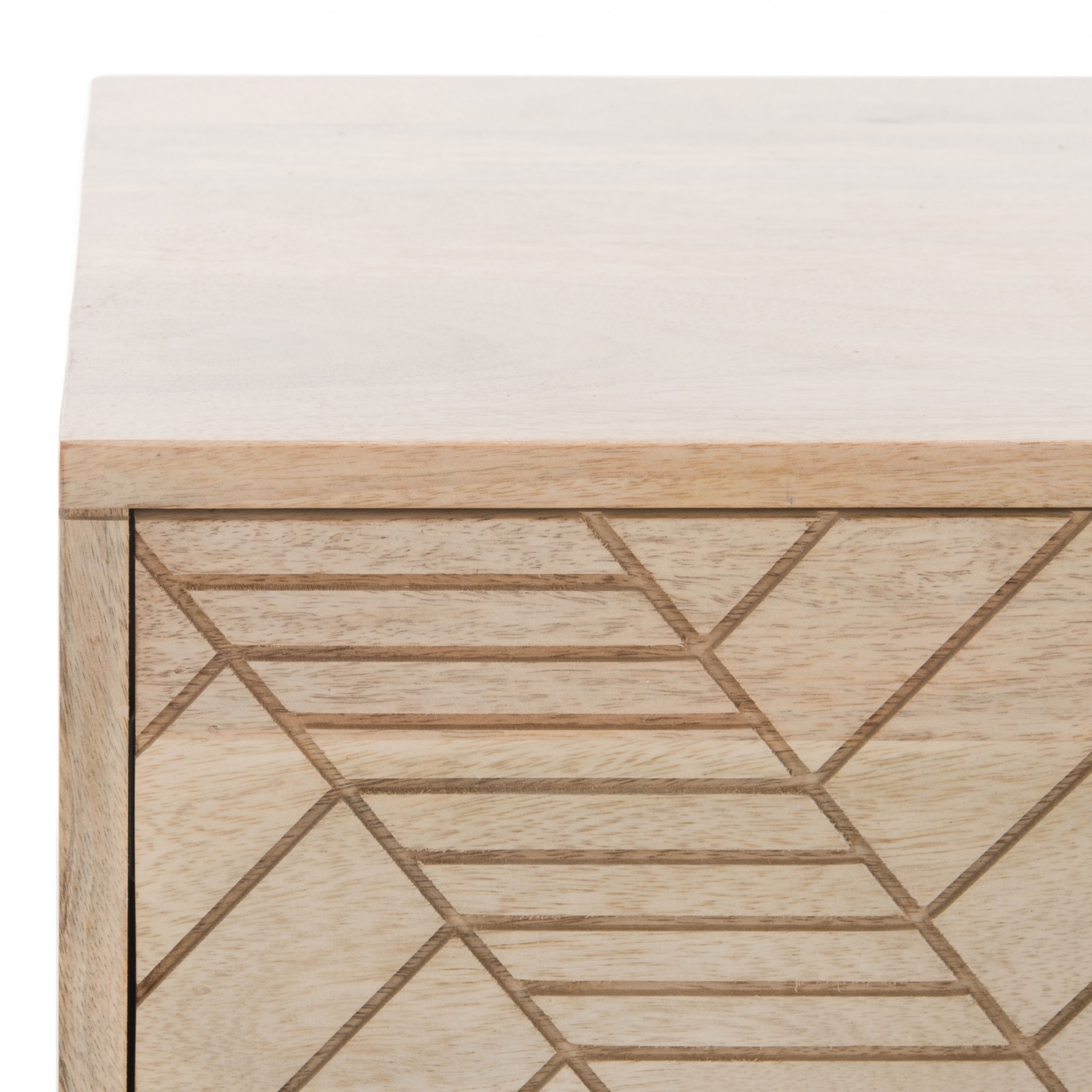 Classic design gets an artistic modern makeover in this stunning Wanda Nightstand. A striking statement piece for any contemporary bedroom, the light brown tone of its stonewashed mango wood creates a perfect canvas for the contrasting chevron overlays on Wanda’s two drawers, while gold half-diamond pulls complete the look with a final glamorous touch.