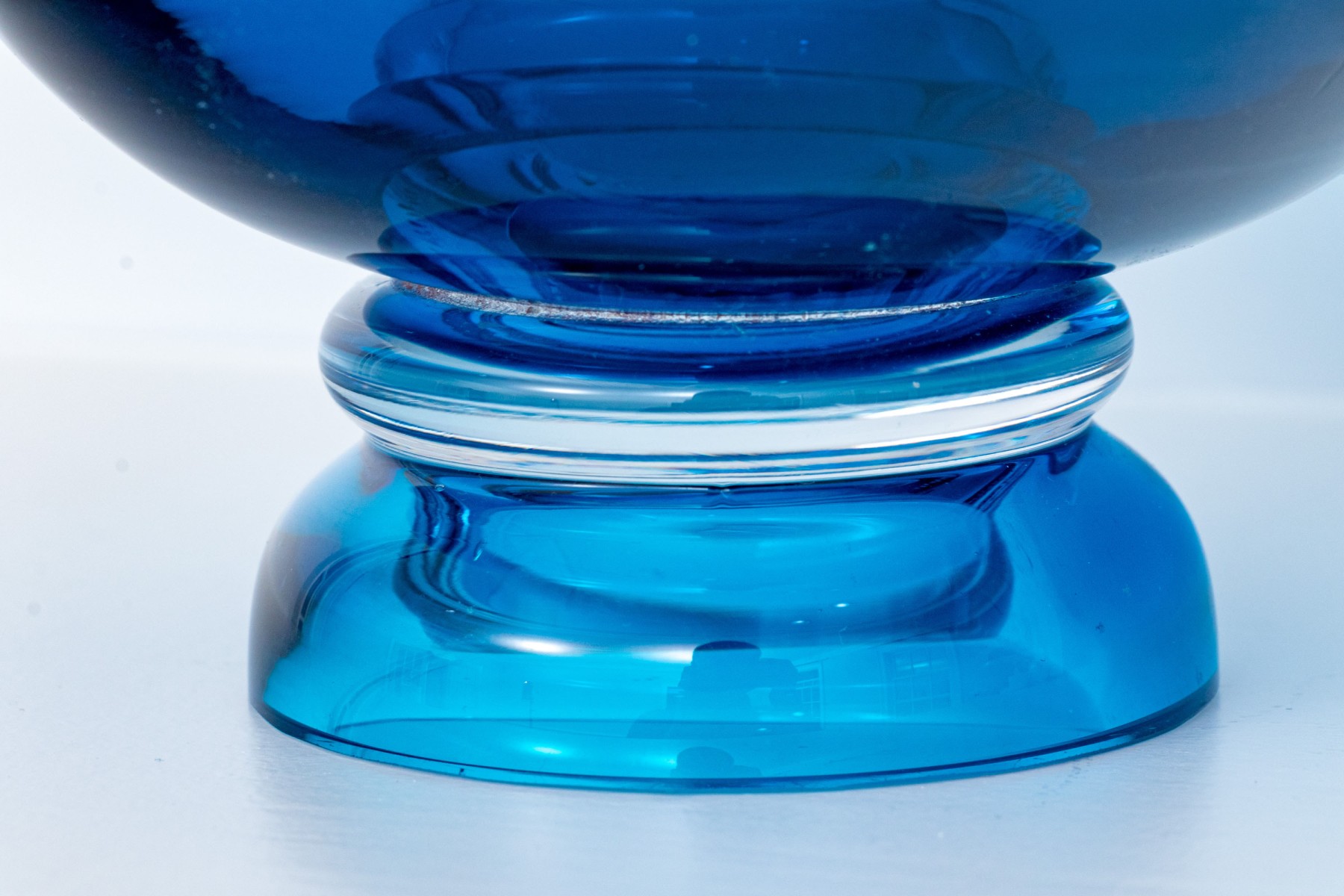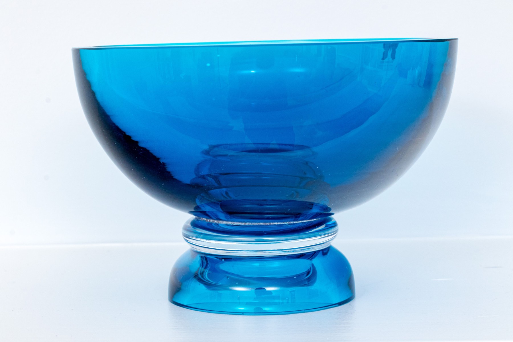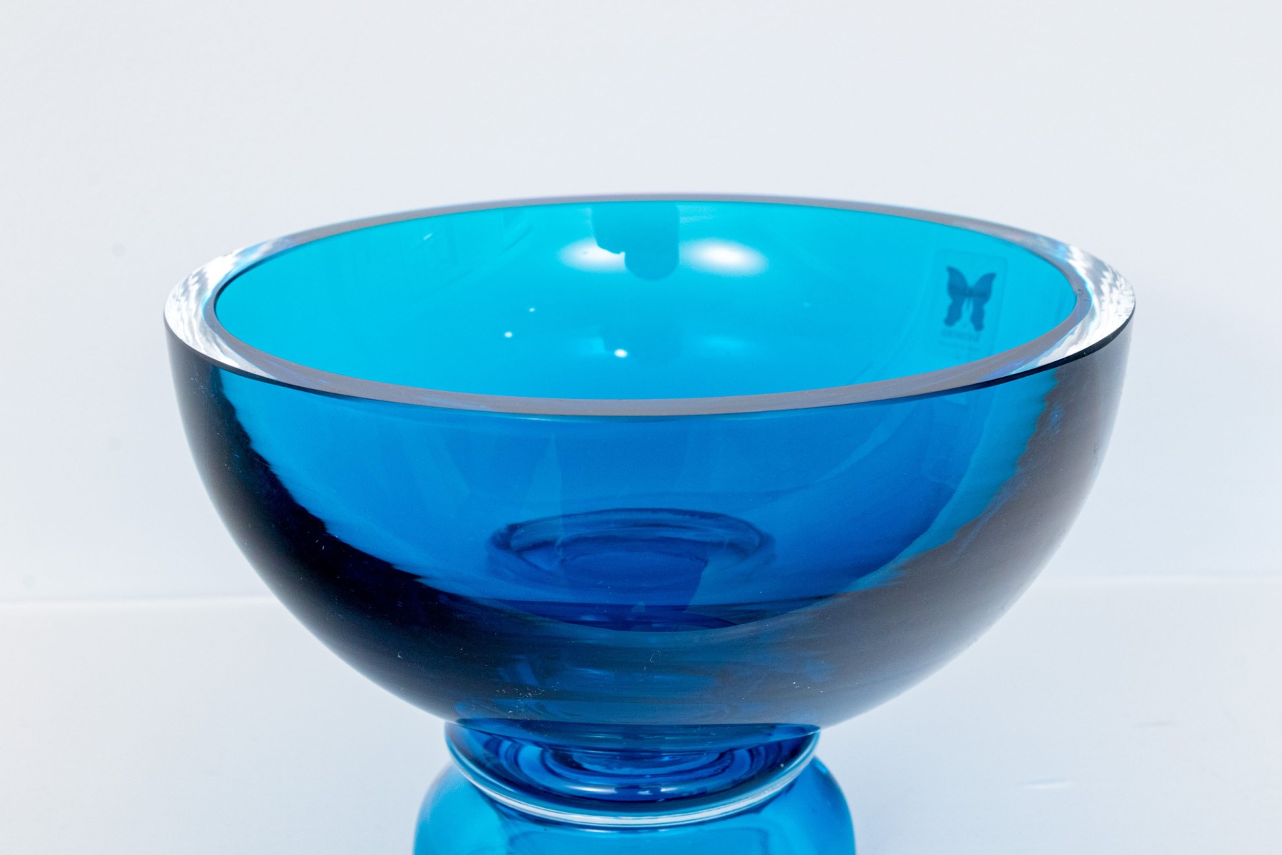 Modern footed art glass bowl with clear band detail. Original makers sticker intact.