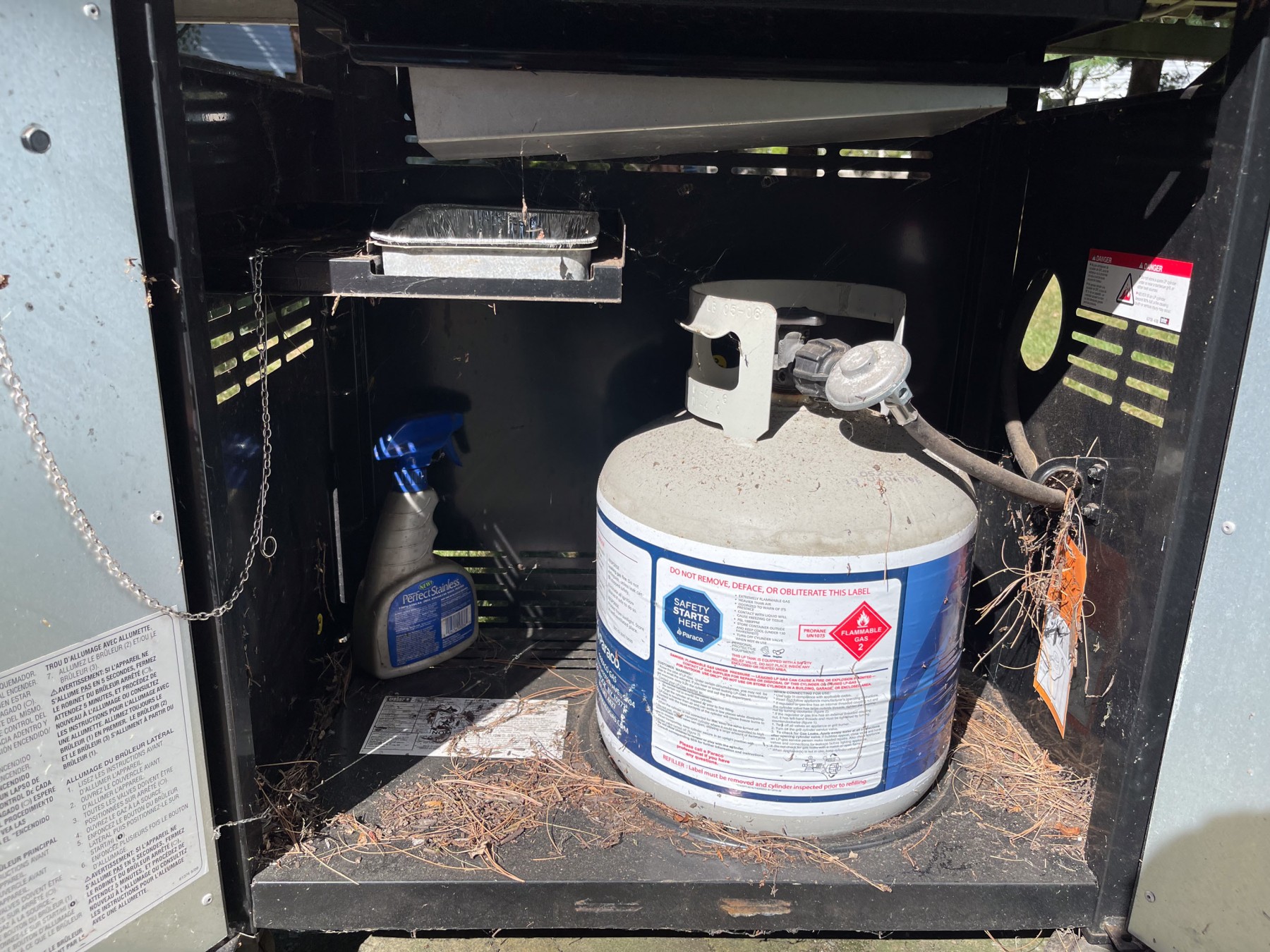 A wonderful Weber E-210 Spirit gas grill in classic black and gray, propane tank included.