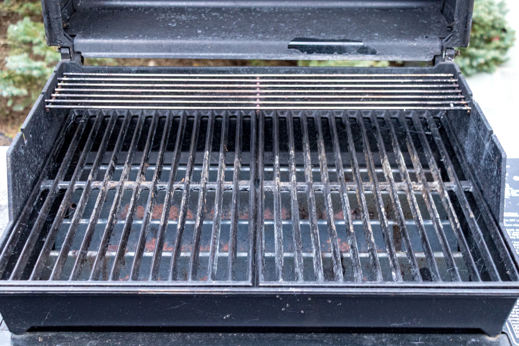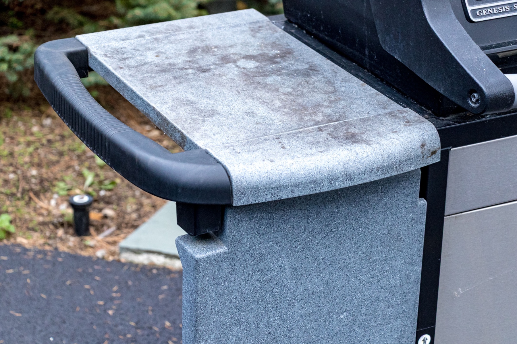 A wonderful Weber Genesis Silver grill in sleek black and gray, perfect for grilling in style. Raised on casters for easy mobility.
