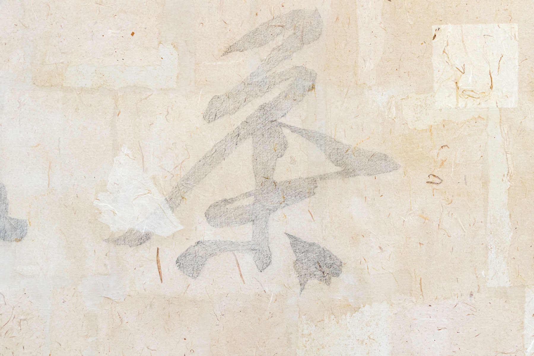 Graphite pencil, gouache and xuan paper collage on canvas, titled, "No 43 Xu Wei II". Signed lower right and additionally signed and titled on verso. There are additional Chinese characters on verso, top right. The canvas is presented mounted on its stretcher support, unframed.