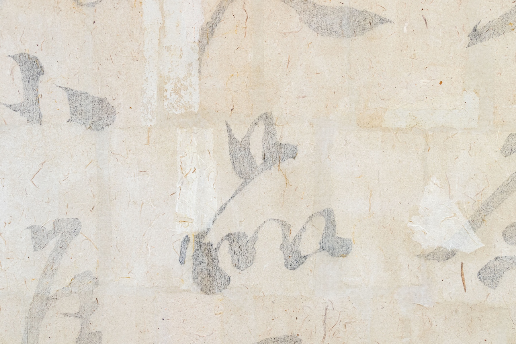 Graphite pencil, gouache and xuan paper collage on canvas, titled, "No 43 Xu Wei II". Signed lower right and additionally signed and titled on verso. There are additional Chinese characters on verso, top right. The canvas is presented mounted on its stretcher support, unframed.