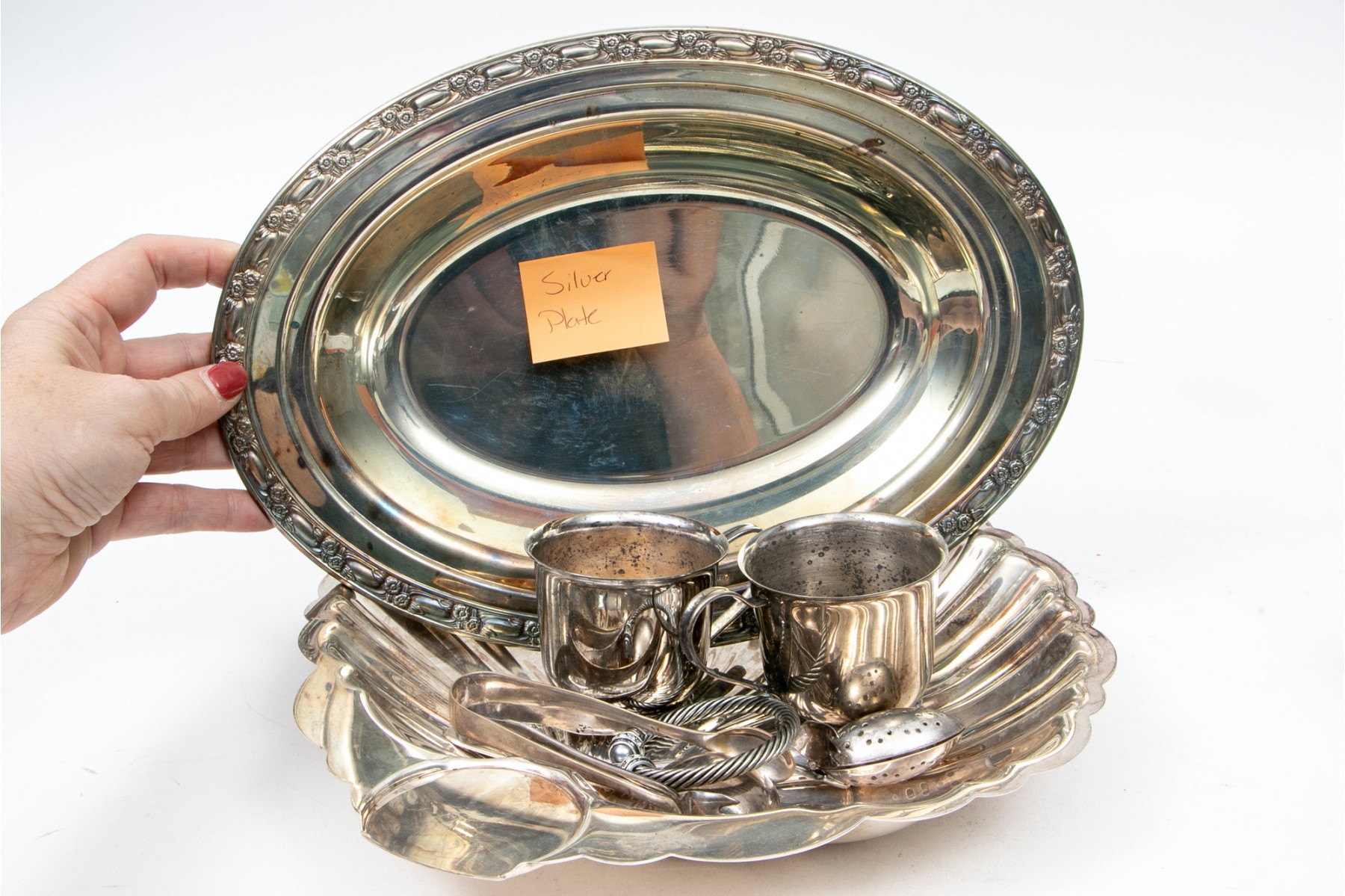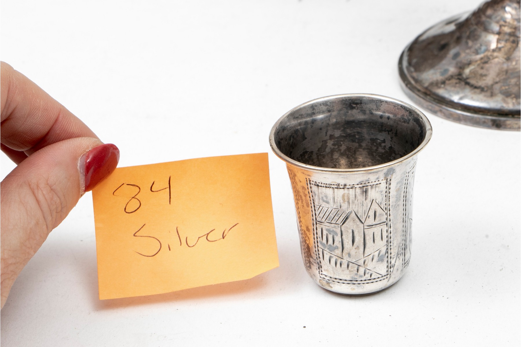 Dimensions: 1 7/8" H x 1 3/4" W-84 Silver Cup, 11" x 11"-Scalloped Silver Plate Dish