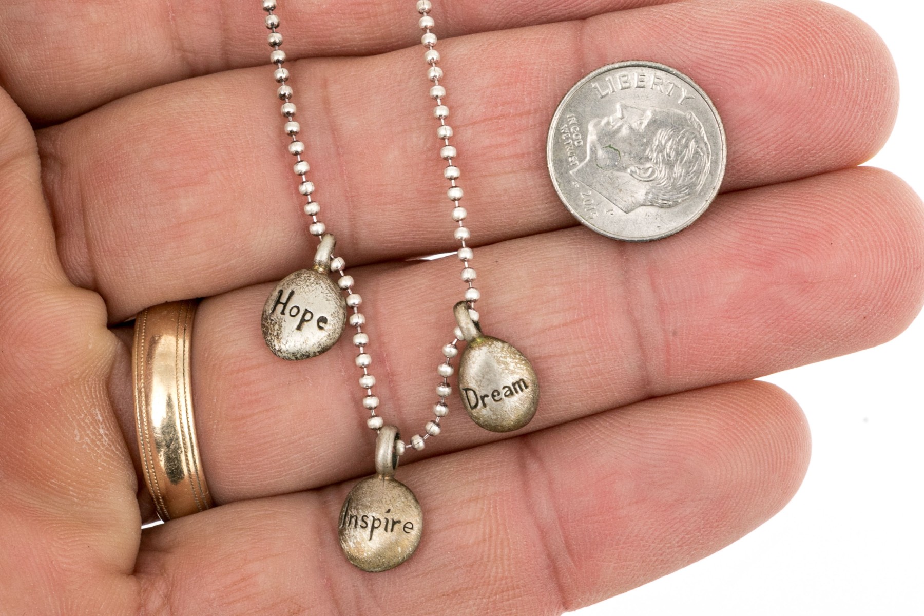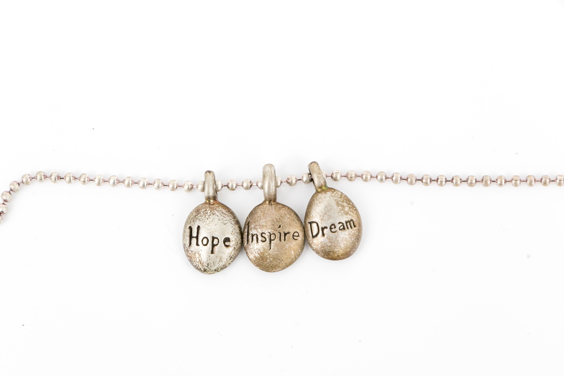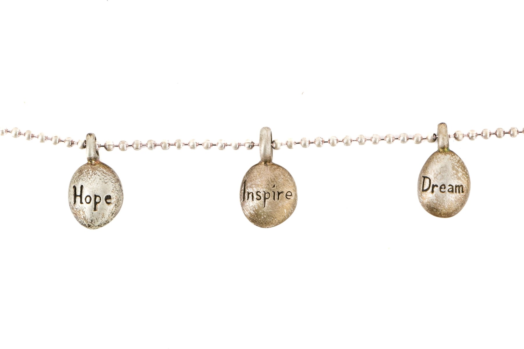 Wendy Gee! sterling silver inspirational HOPE INSPIRE DREAM necklace, finished with a spring ring style clasp