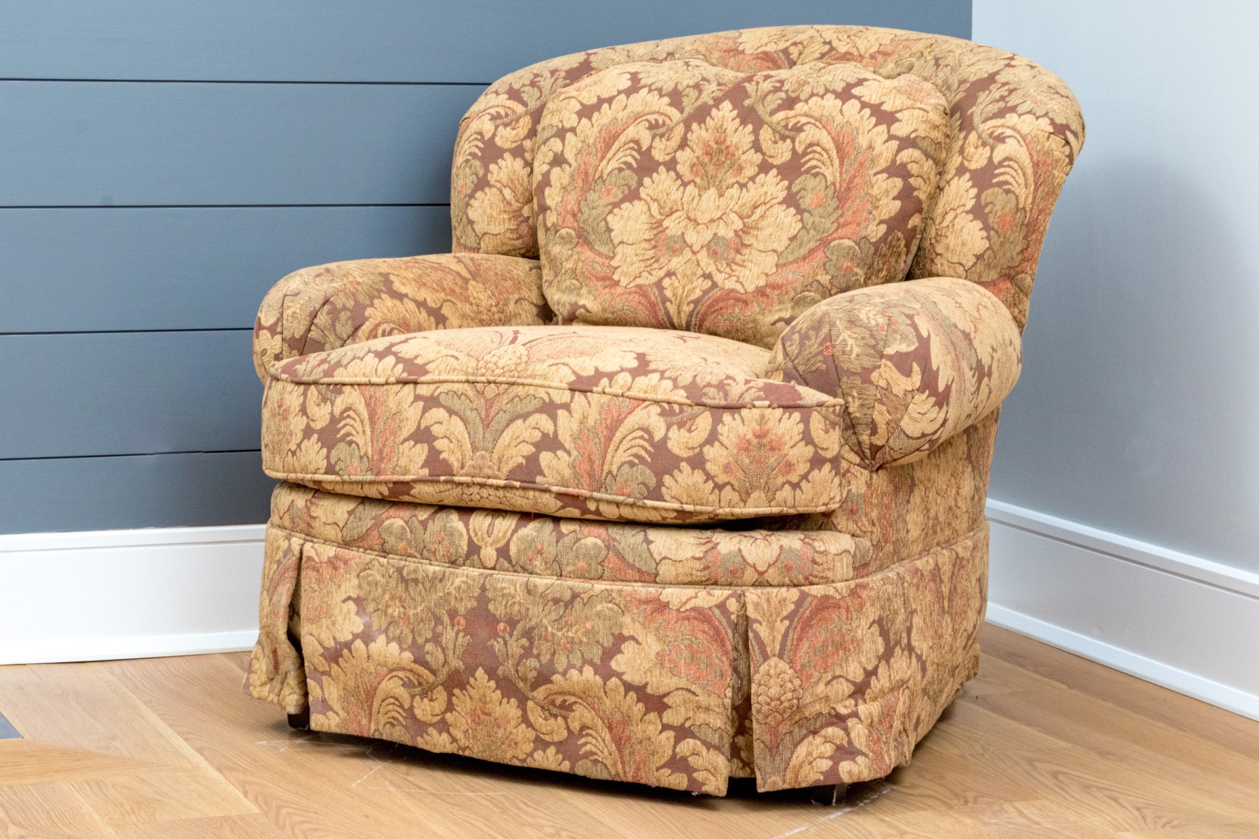 Supported on four feet, concealed with the chairs pleated skirt, the Wesley Hall Inc. club chair has a wonderful and luxurious presentation and feel.
