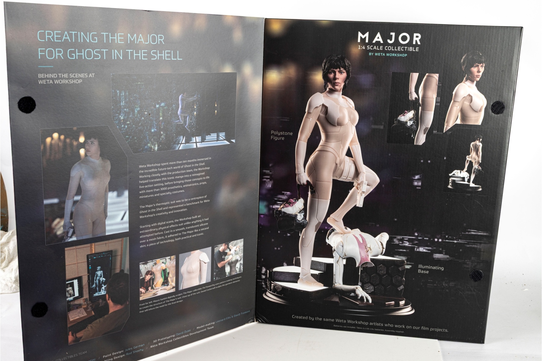 An impressive 1:4 scale collectible statue of Major, from the 2017 live-action adaptation of Ghost in the Shell. Created by Weta Workshop, the award-winning New Zealand studio behind the film’s practical effects and prop design, this high-end collectible meticulously recreates the cybernetic protagonist in her thermoptic bodysuit.