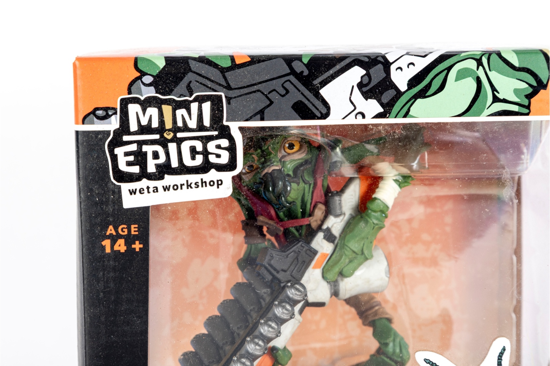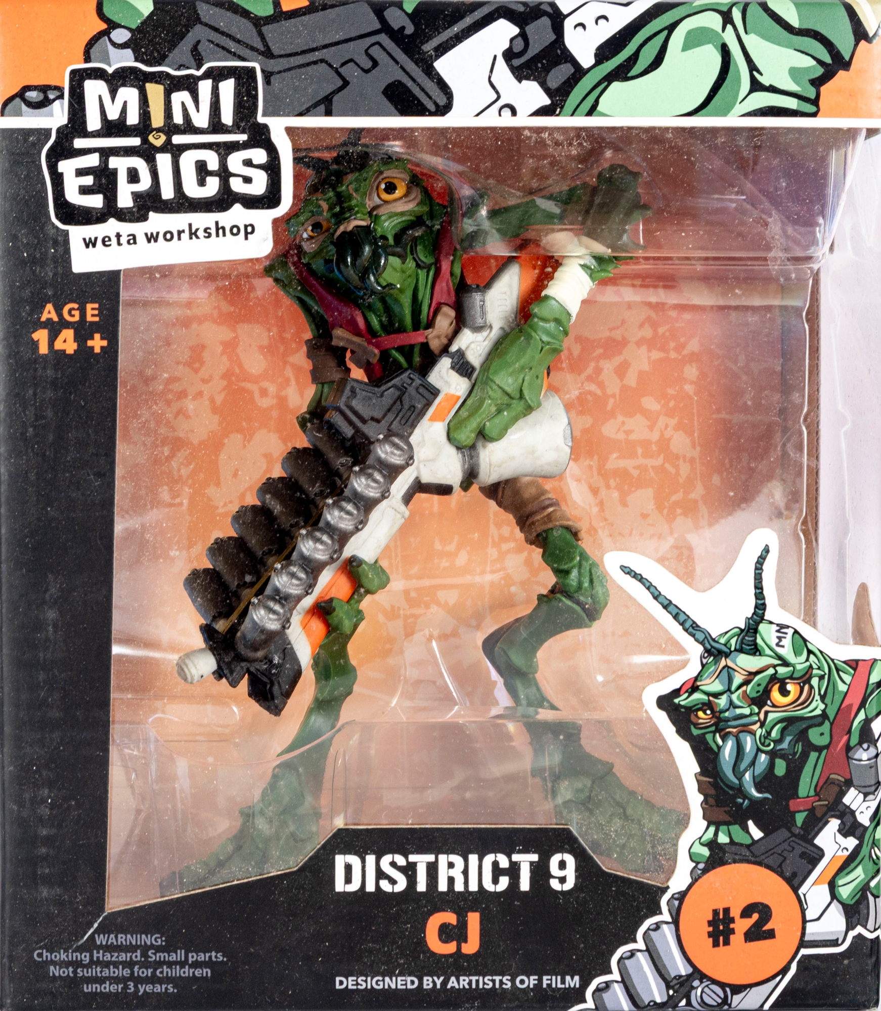 From the acclaimed Weta Workshop “Mini Epics” line comes this stylized vinyl figure of CJ from District 9, designed by the original artists who worked on the film. The piece captures the distinctive look of the alien “prawn” character with exaggerated detail and expressive design.